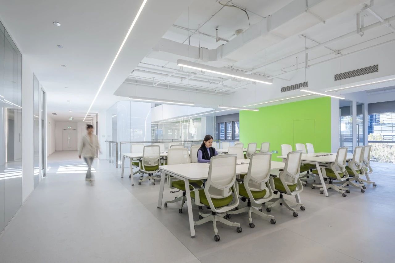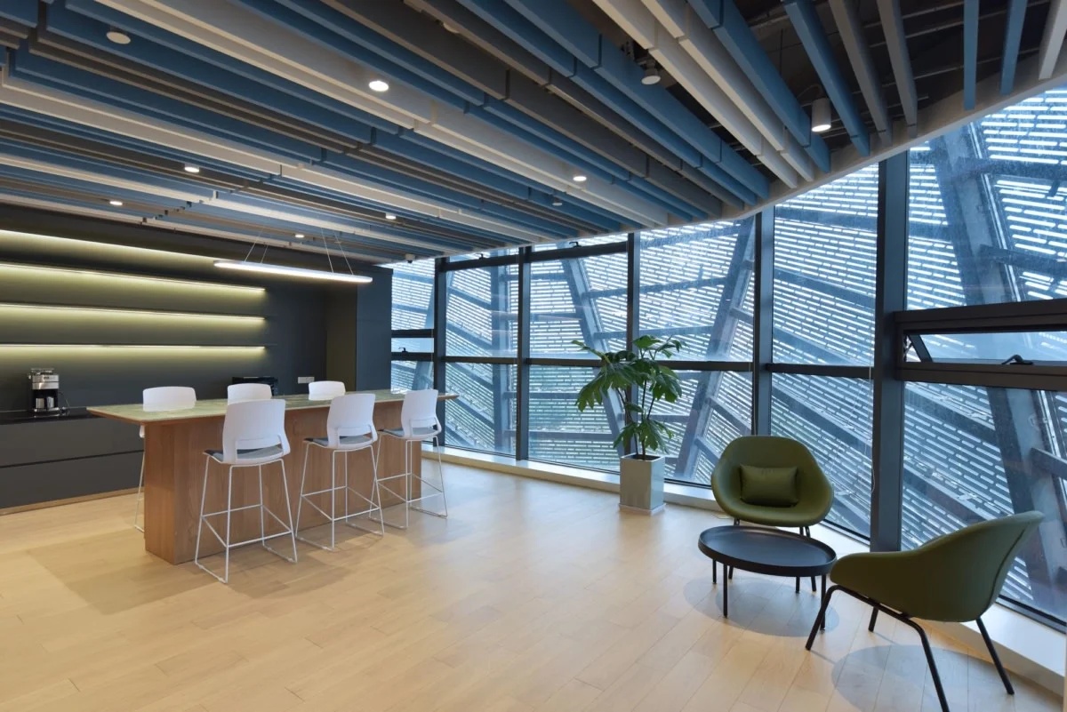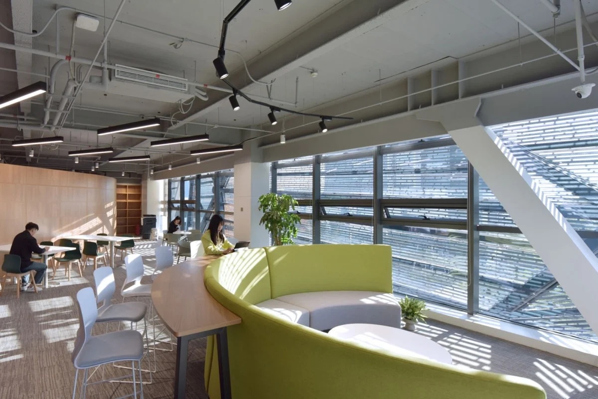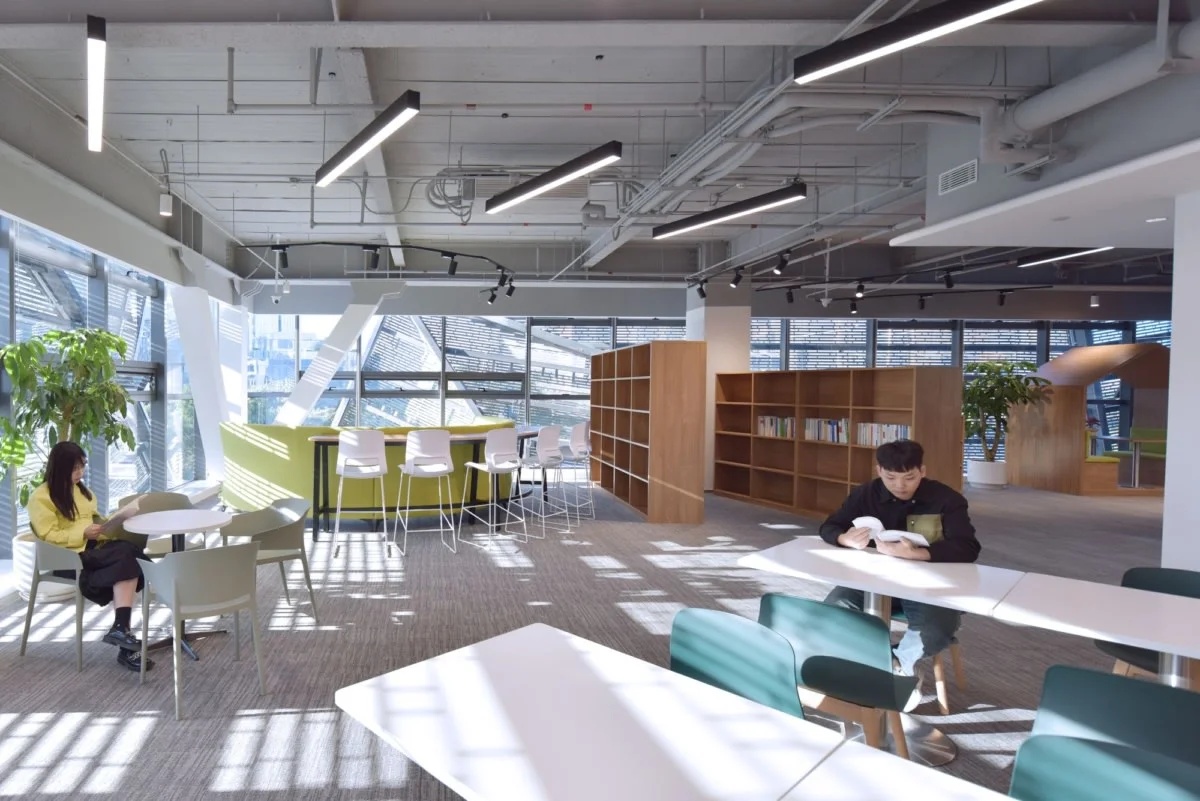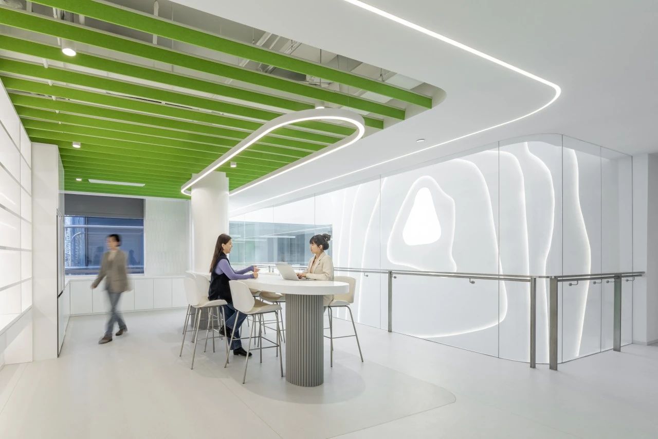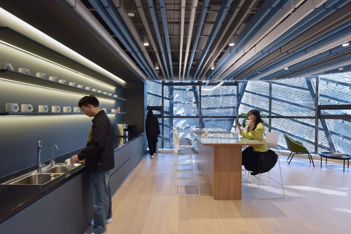 在不同楼层的同一位置都设置了员工社交区延续一致的设计语言鼓励共享与连接