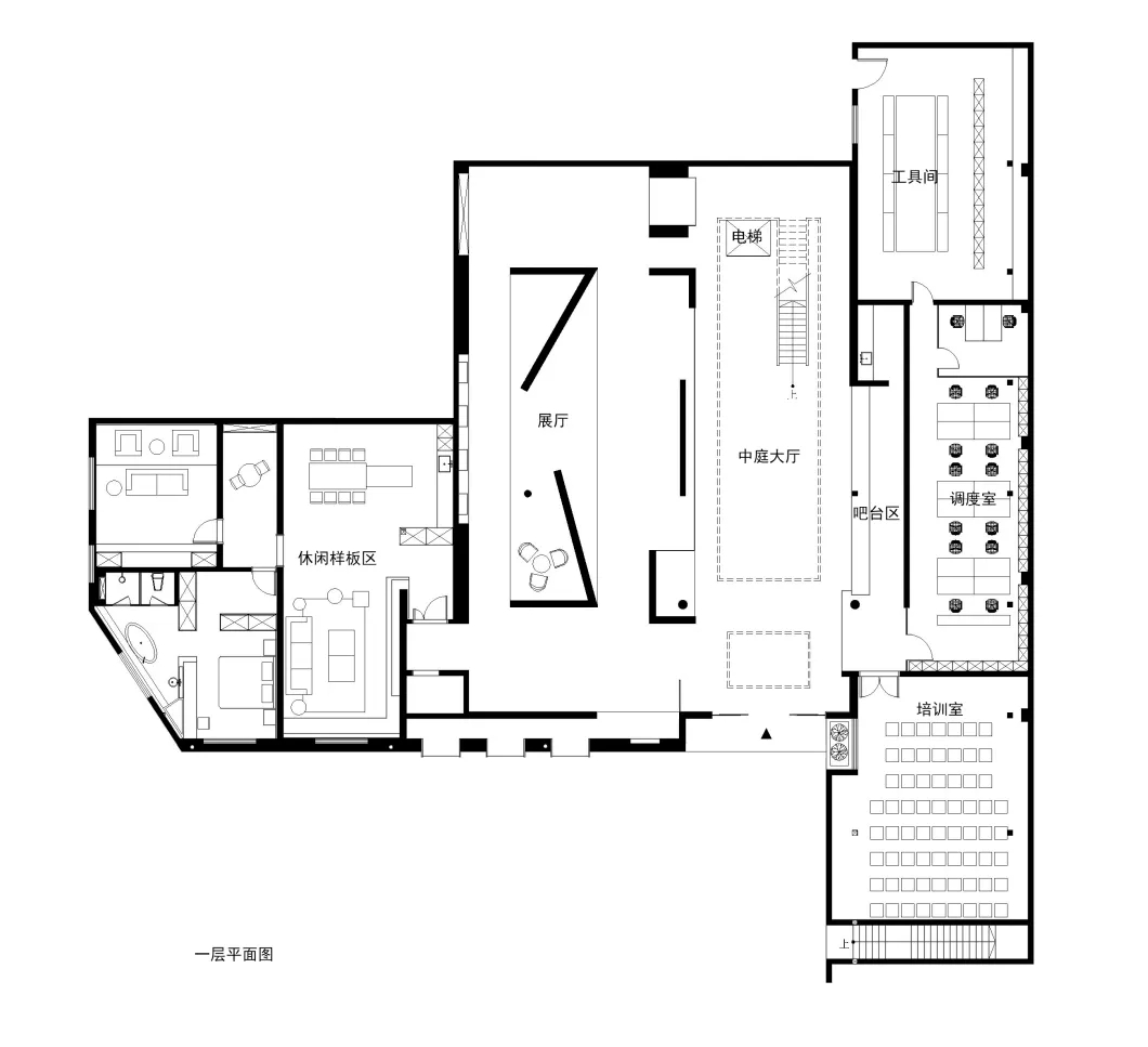 新大楼一层设有产品展厅和舒适家各系统的智能体验样板间,二层为综合办公区。功能分布满足共享大厅,开放办公区,多媒体会议,小型研讨区,独立办公室,展示体验空间等。作为一个集办公、展示、销售于一体的综合性总部中心,这个空间将面对不同类型的使用人群,它不仅需要实现空间交通的最优化,还要实现员工和顾客的合理分流,以保障办公和体验的不同环境要求。