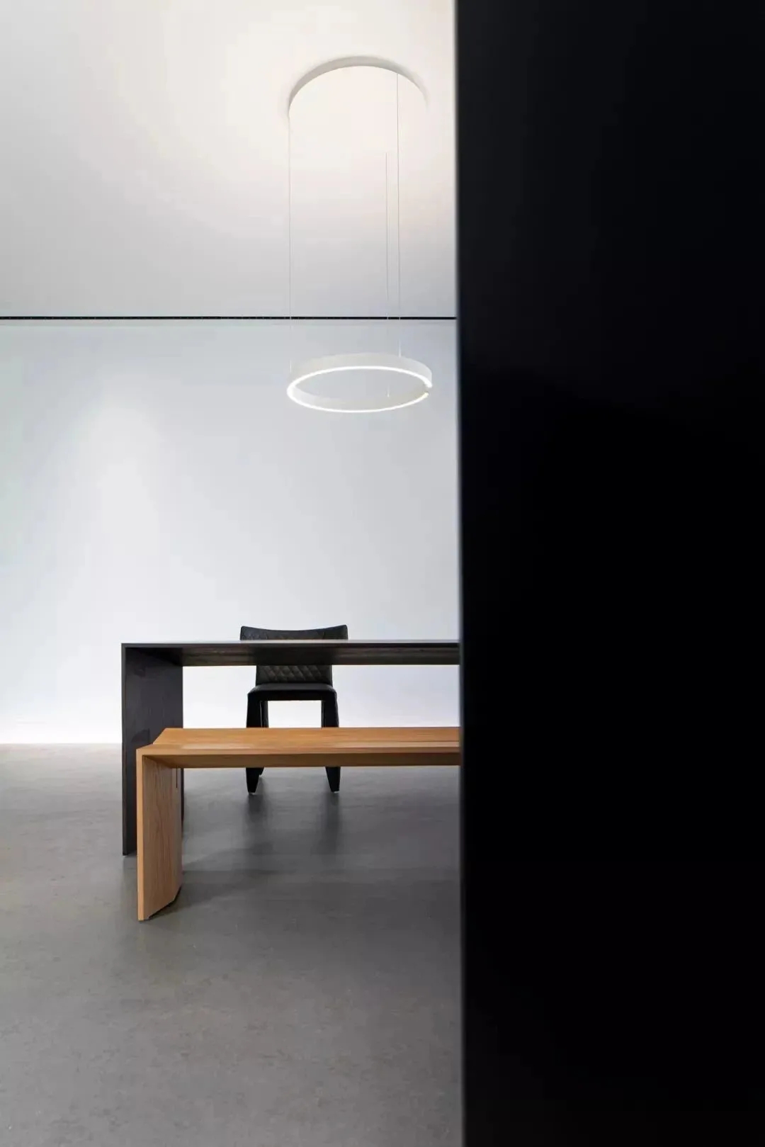 这不是梦境,而是现实,没有人规定工作的地方一定要忙碌严肃着。艺术勾勒平缓的节奏,结合对生活的期待,工作室便成为了休闲胜地。刘雯在这里可以找到最初的自己,即使荣誉和赞美,也无法抵挡这里的诱惑。留白的走廊,落地窗外的庭院,每一件家具,都是对艺术的尊重和自我的表达。