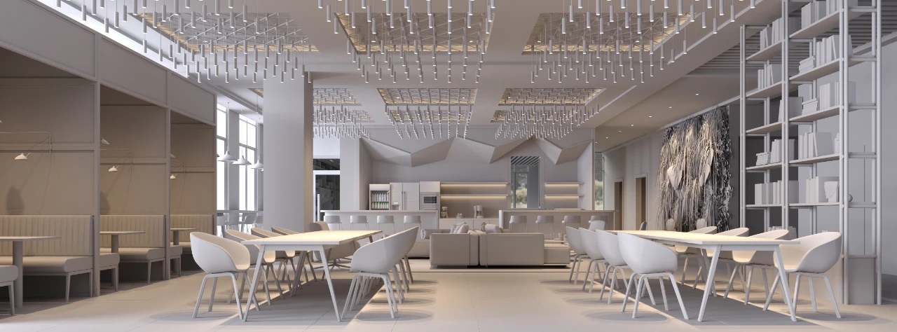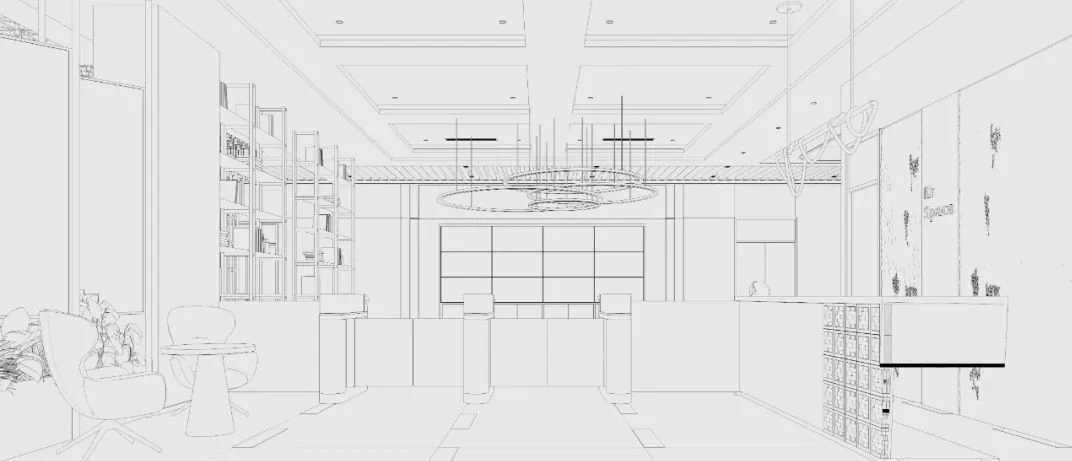 大厅接待区以巨大的弧形体块,流动的形态串联起整个空间,表现空间艺术美学张力,从无序中构建出空间的秩序,揭开空间的序幕。