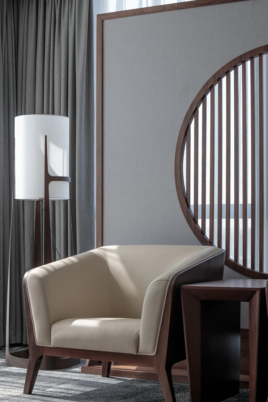 在整体的风格与材料方面上,我们摒弃了一切过于复杂、繁冗的铺陈,而是将目光聚焦在空间本身的体验感,借由不同隐形的“互动媒介”,创造更多丰富的场景使用模式,浸润式地将大成的性情融合于处处细节之中。