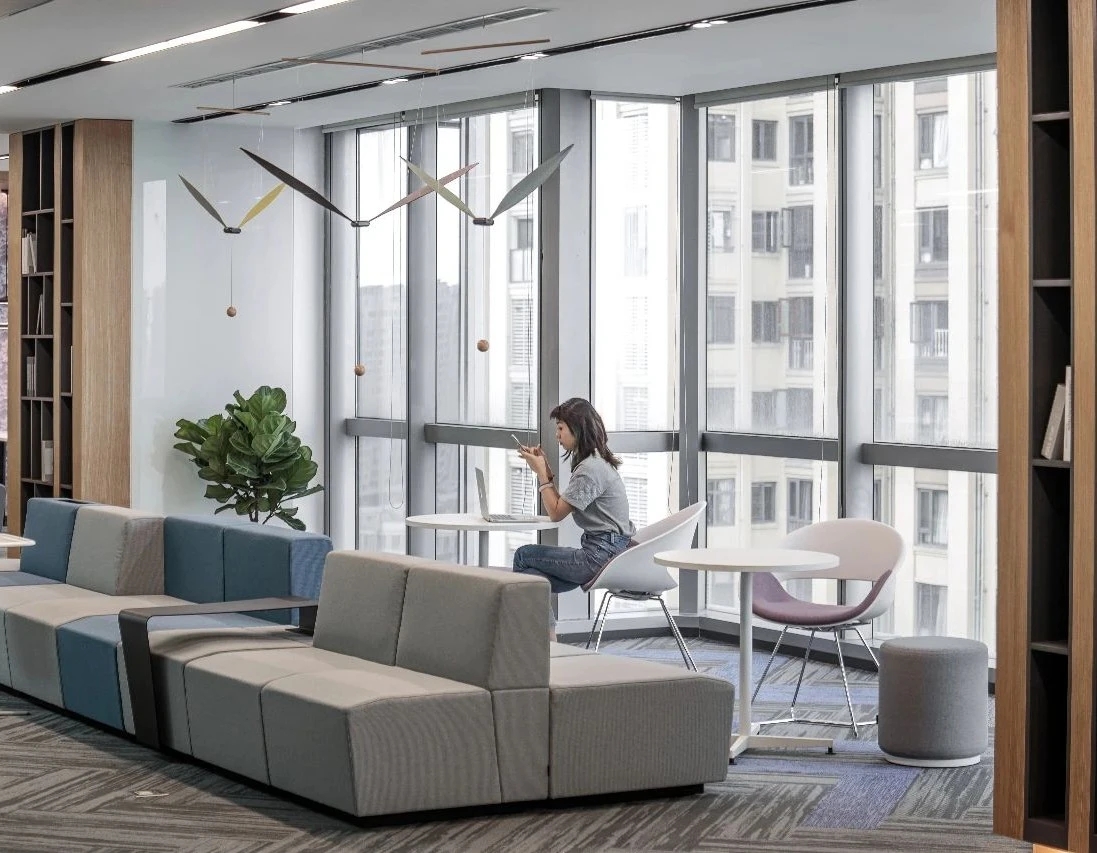 临窗而设的等候区,设计了灵动有趣的坐墩,是家具,也是艺术雕塑。