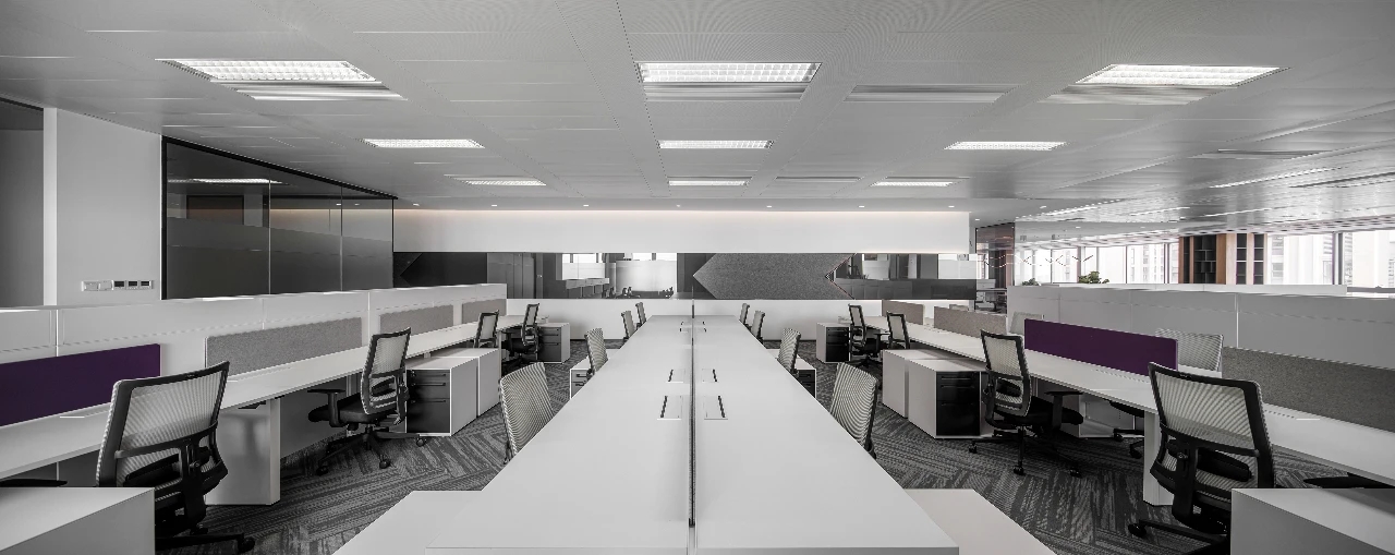 在律所的工作区域,我们大量采用了封闭性更少的直条桌,无疑能够更好地促进团队间的沟通协作,而每张桌面的正中还立着可遮挡视线的屏风板,这样又为对坐的彼此增加了一定的隐私性。且为了兼顾透明度与私密性,四周的办公室与小型会议厅亦均以磨砂玻璃作为隔断,在营造出一种所有空间相互交织共享的氛围之余,亦让法律工作者的办公环境留有一份严谨的风度。