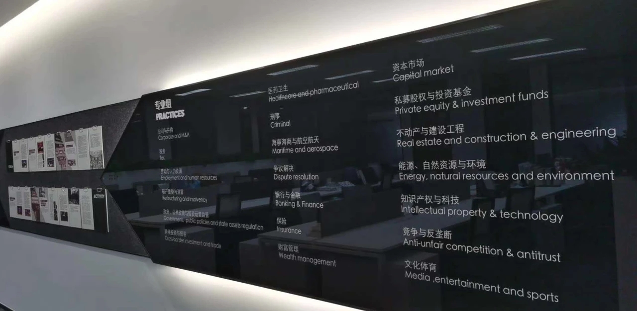 处于内圈的一环路路面较为宽敞,我们在与之紧邻的核心筒墙面上设计了一系列与律所相关的文化展示,直面地展示出大成的专业性,以及律所丰富的文体业余生活等;而外围的二环路则是作为合伙人与开放区人员行动的主线路,以此提高工作效率的同时,也旨在促进团队间进一步沟通。