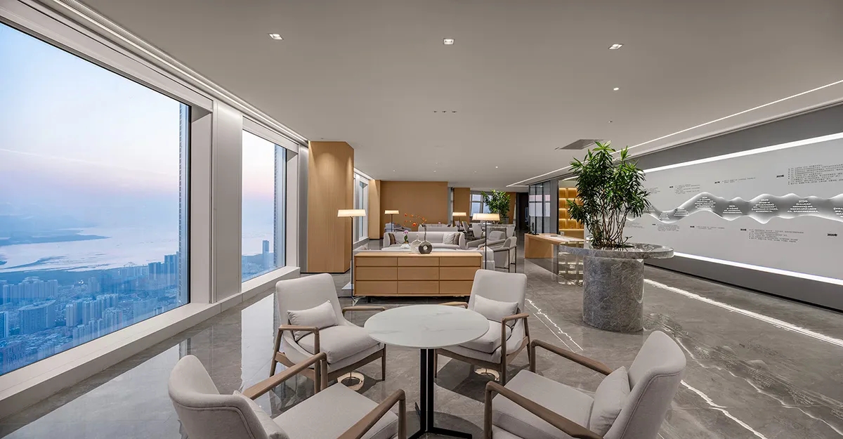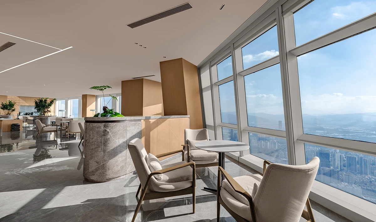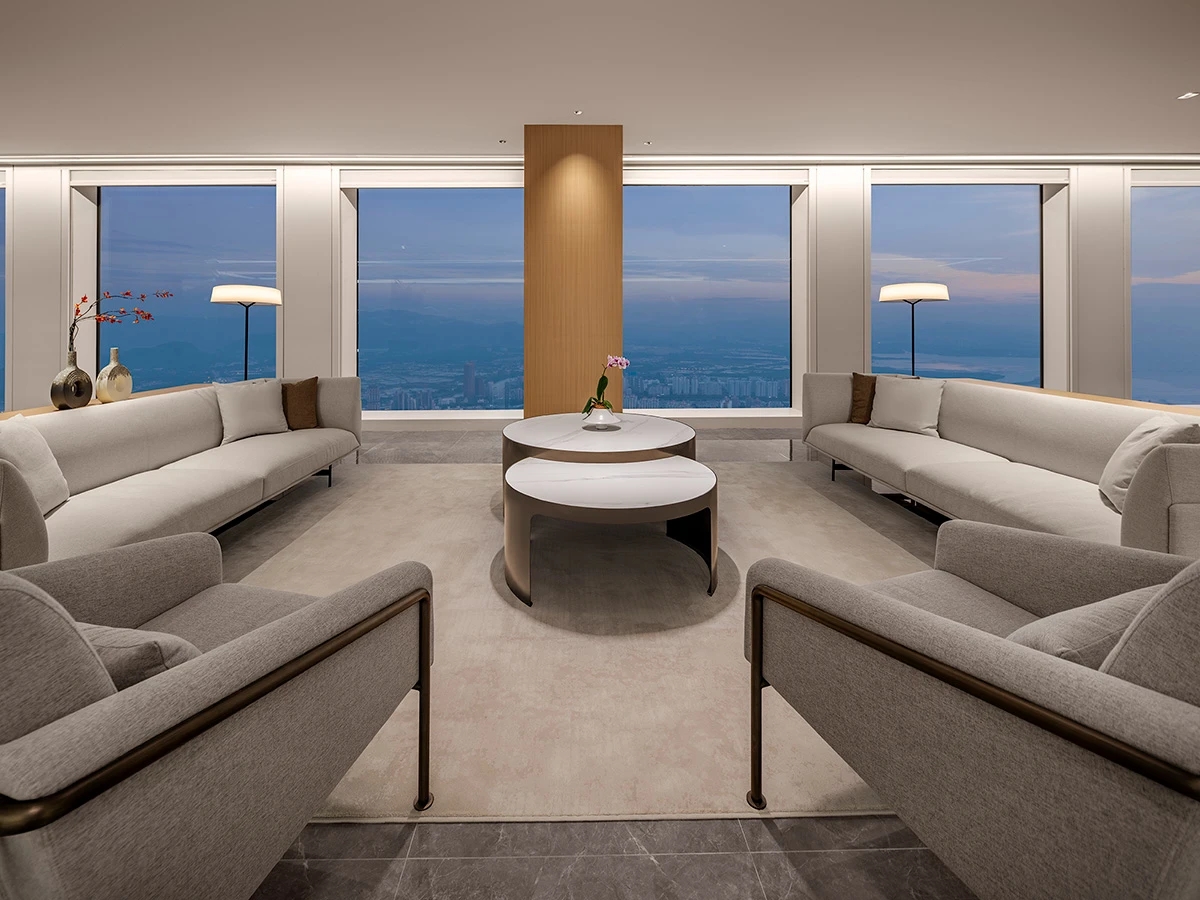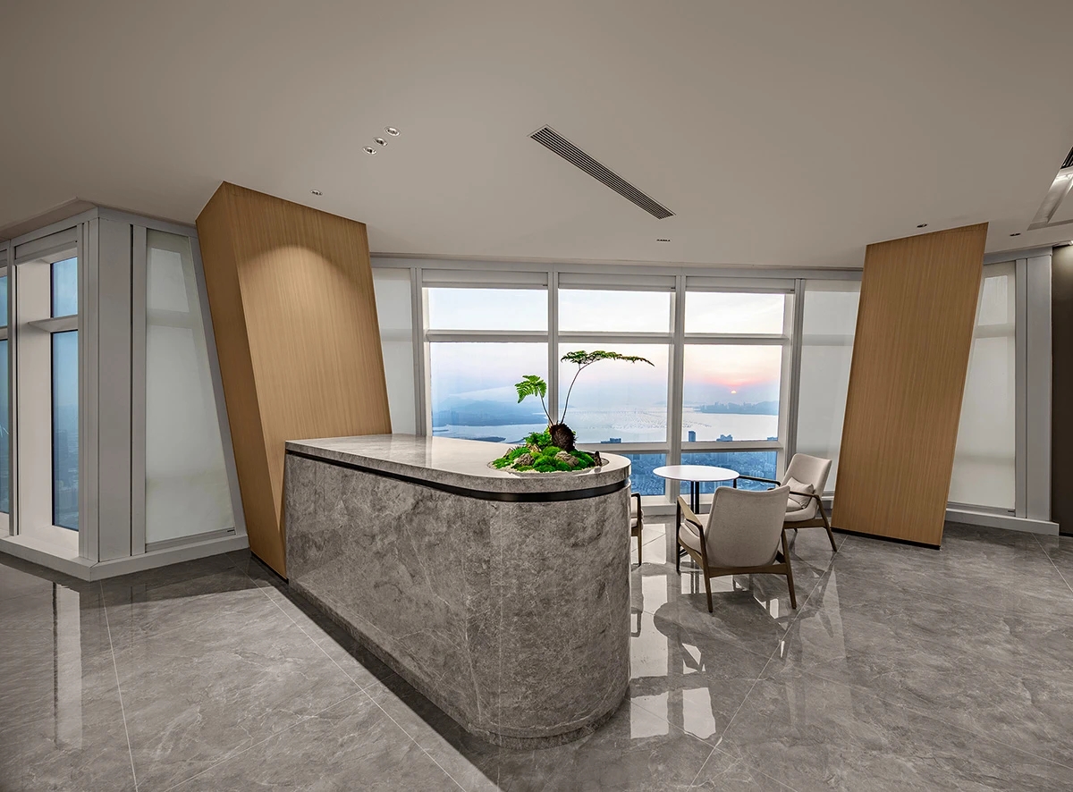 前厅的视野极佳,远观山海﹑俯瞰繁花。让每一位来宾“懂放下”,“想得开和能舍得”才是人生智慧般若境。