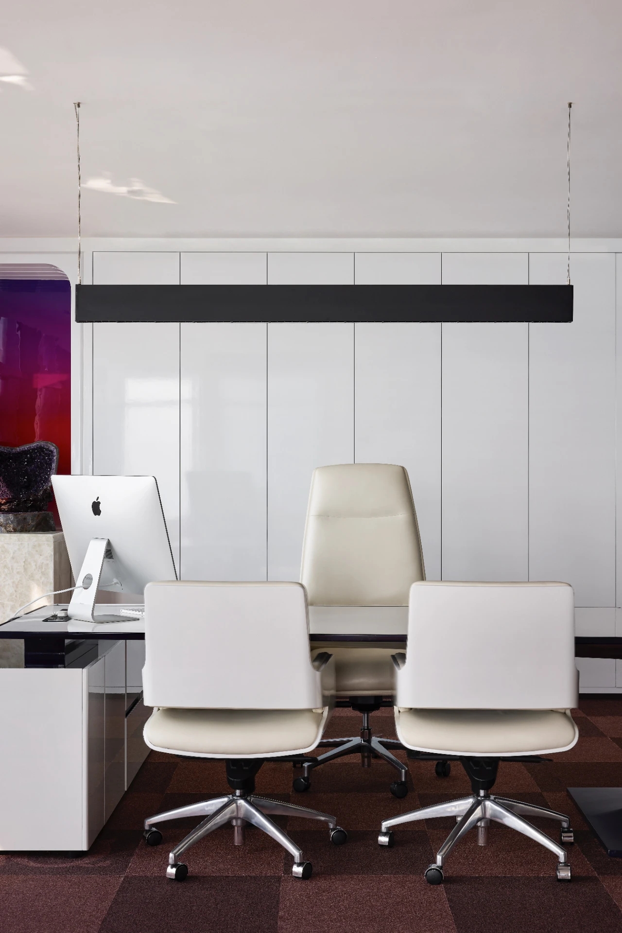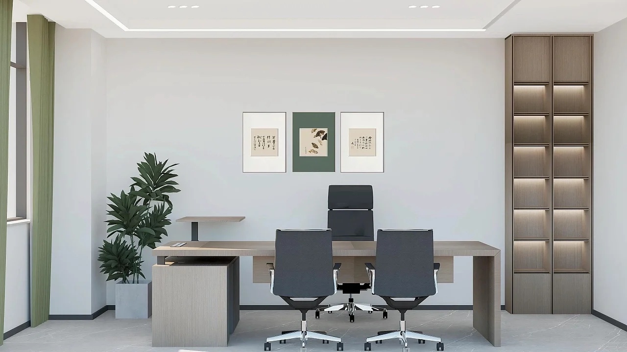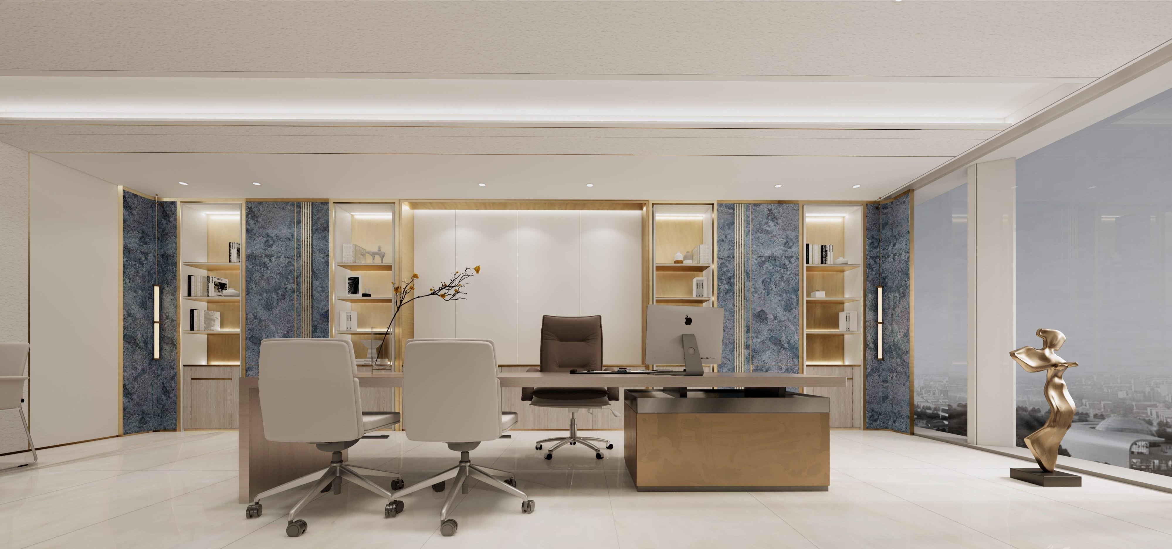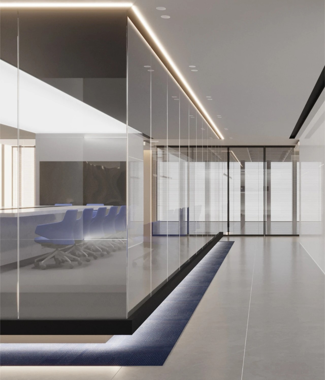 董事长办公室巧妙地将企业品牌蓝色元素融入其中,色彩靓丽典雅,这不仅展现出现代化的办公理念,还充分体现董事长的品味与格调,整个空间科技感十足,时尚而不失个性,每一处细节都彰显着企业前瞻性和创新精神。
