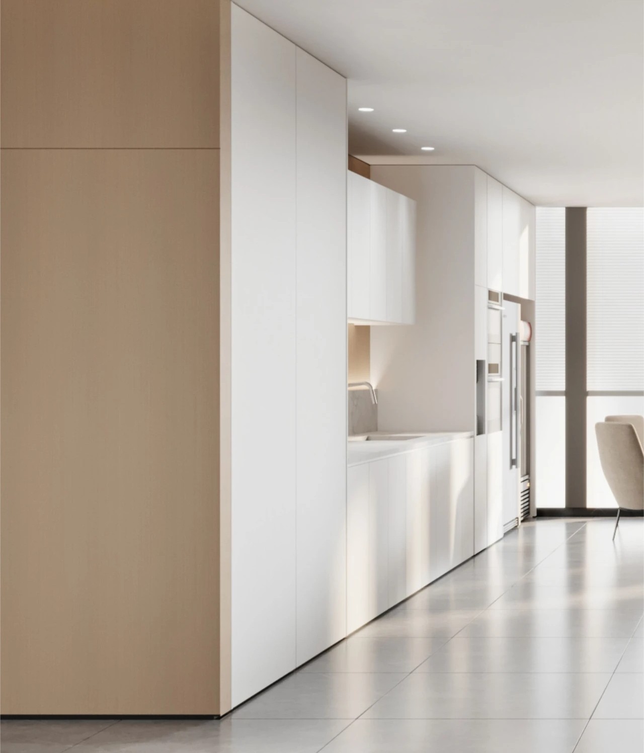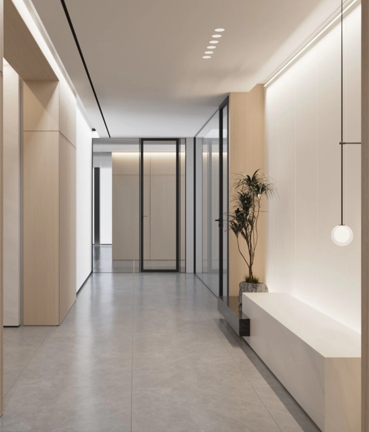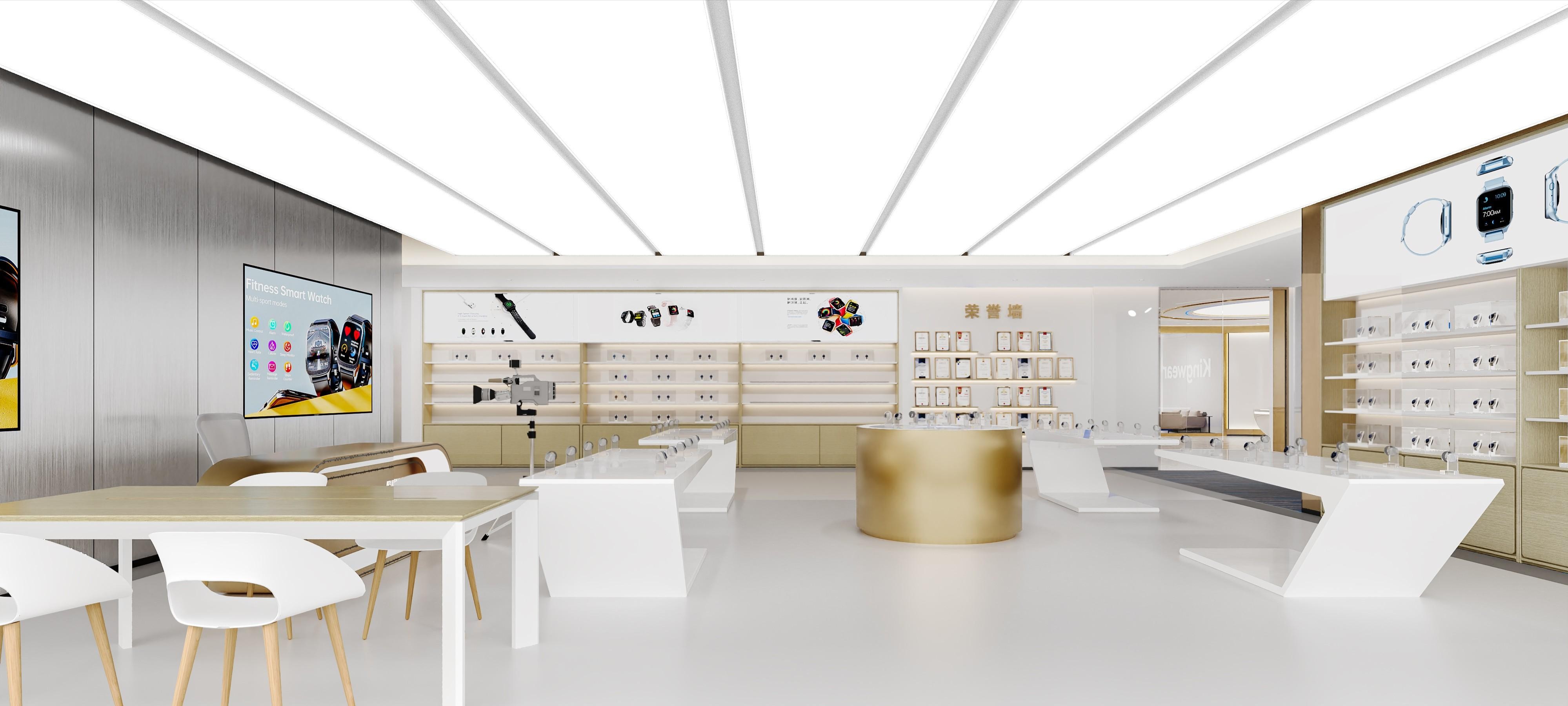 展厅的设计充分体现琦沃科技在智能穿戴设备领域的专业与实力。整体布局清晰明了,白色与原木色的搭配营造出洁净、高雅的空间氛围。暖白色的灯光为产品赋予高贵而温暖的光环,使展厅既实用又富有美感。
