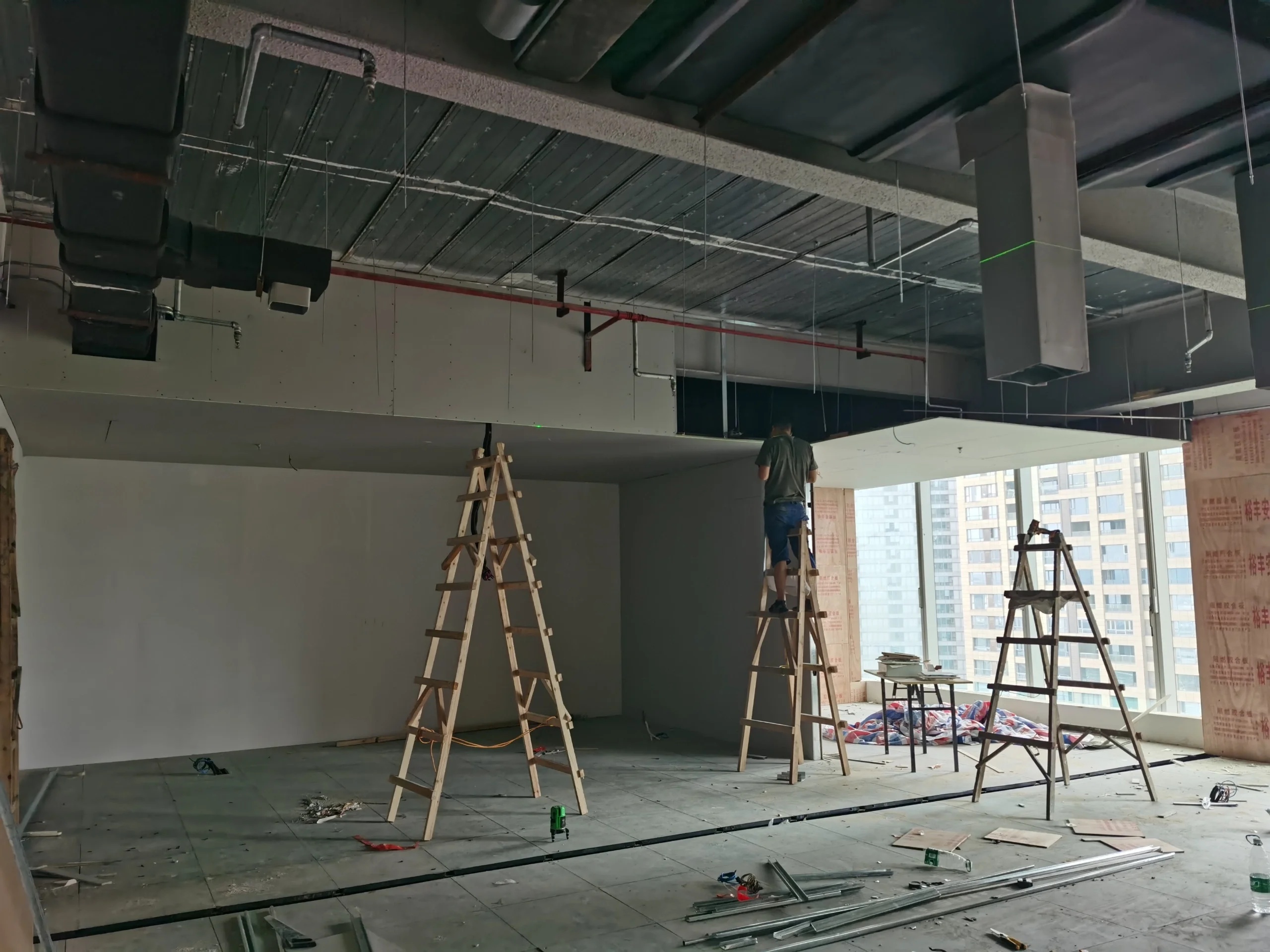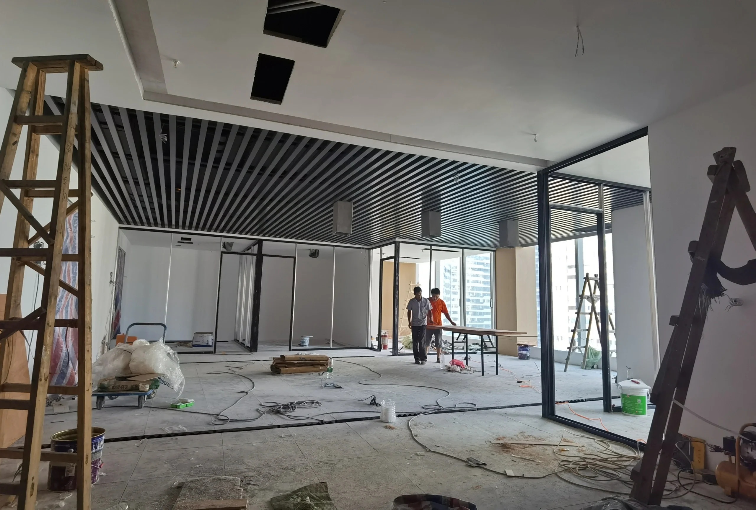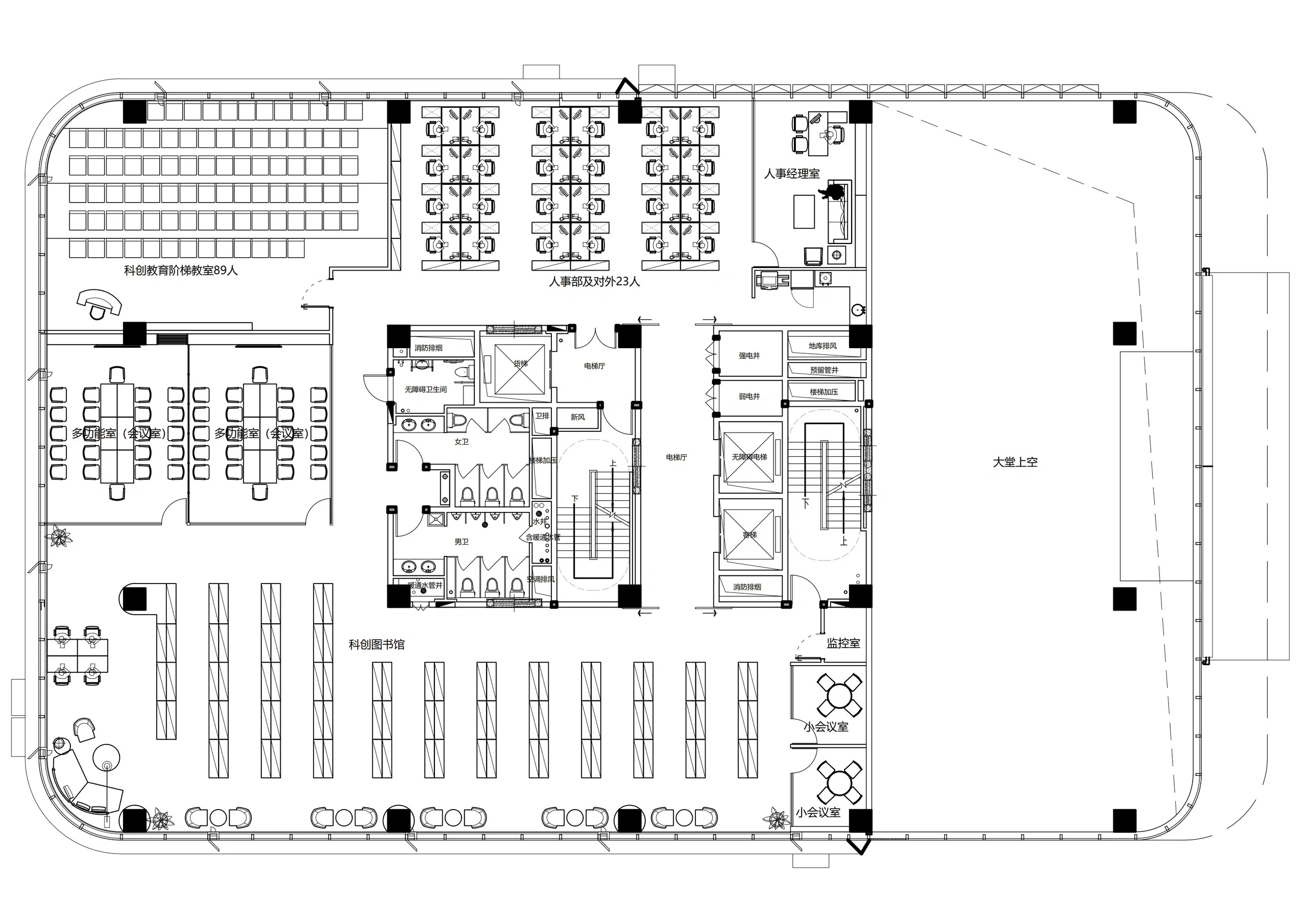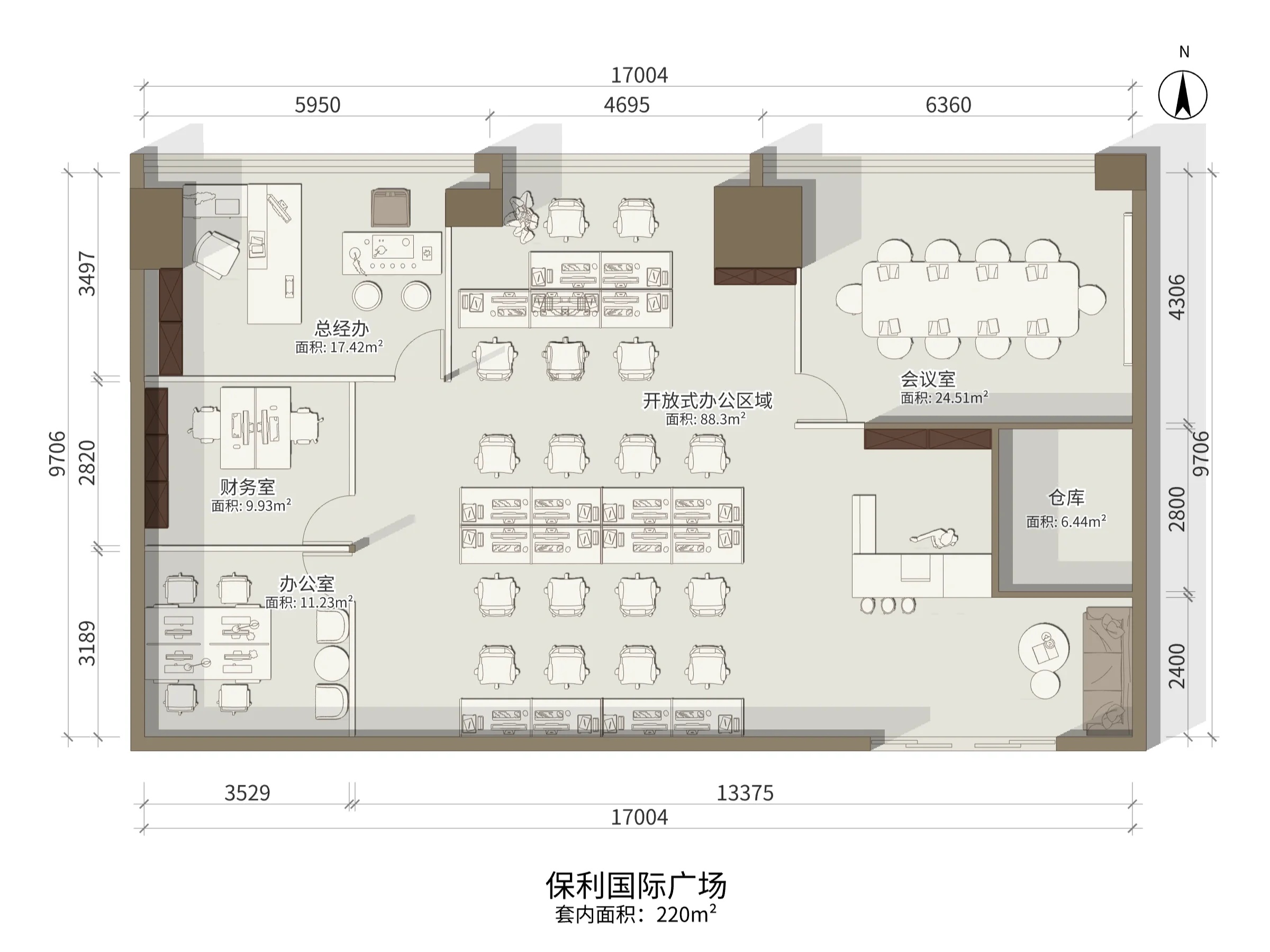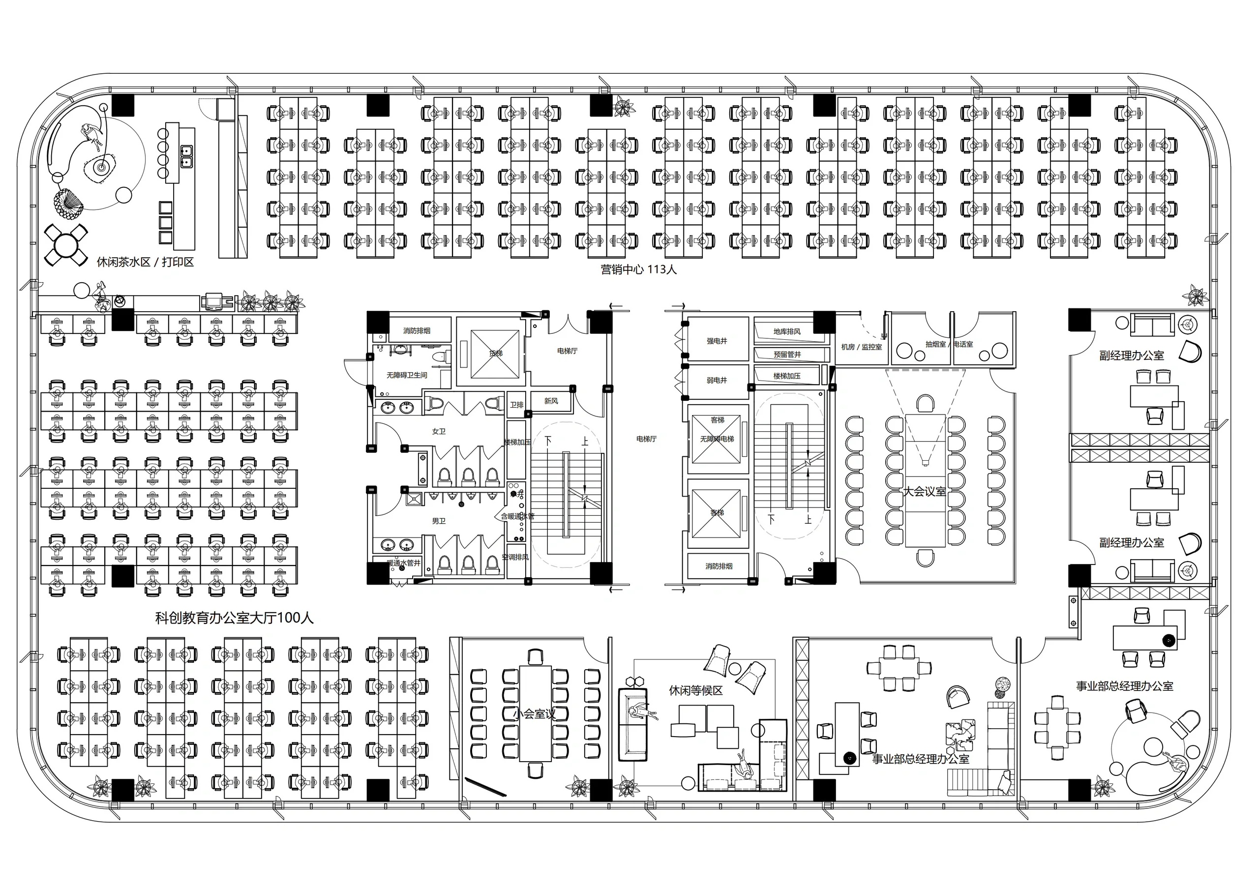 空间定位以开放性为主,在保证办公区最大限度的开放之下,设计使其他功能区块均匀分布,工作环境显得更紧密。橄榄色的家具,在粗犷锐利的裸露工业感空间里,铺陈出独特的氛围,细节严谨而颇具活力。场所的原始感与陈设的内敛碰撞出丰富的空间表情。点缀性的装饰画与绿植则赋予空间舒适的观感,与整体有序的空间达成平衡。空间整体布局中,设计在不规则的场地上,着重营造出中轴序列,从而提高办公空间的通达性与功能性。动线联通的两块办公区域,也利用动线的递进,将功能连贯地置入。