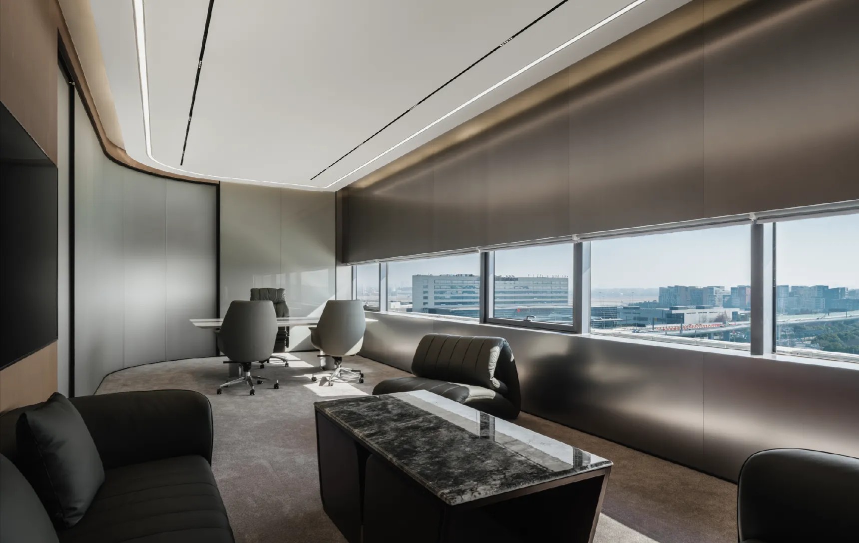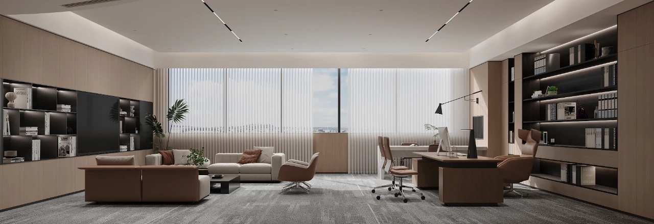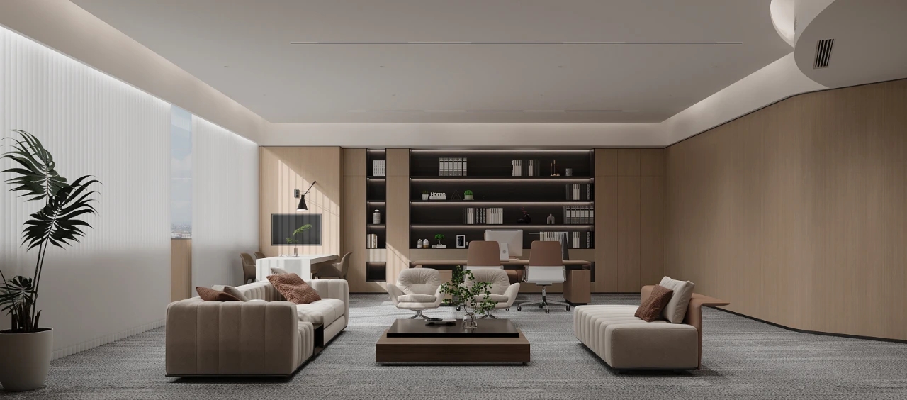 木的润,白的净。光影间,自然色调的微妙变化将办公空间的柔性点亮,私享的空间带来相对的独立,大面积的木饰面又能保证与整个办公区域的氛围相融。简约的设计、舒适的氛围,无论是伏案工作、项目探讨,还是接待洽谈,都能做到从容有度、挥洒自如。