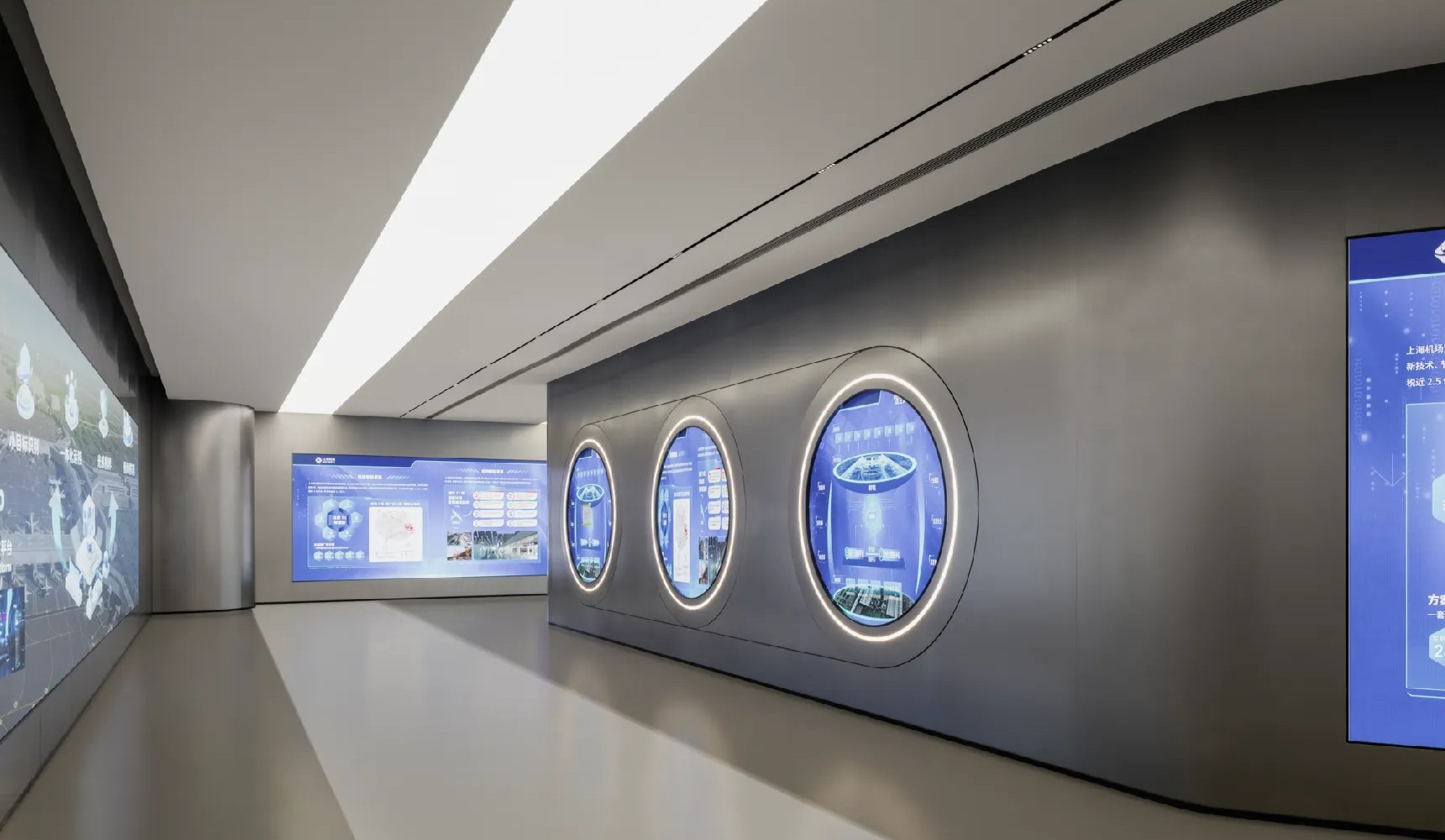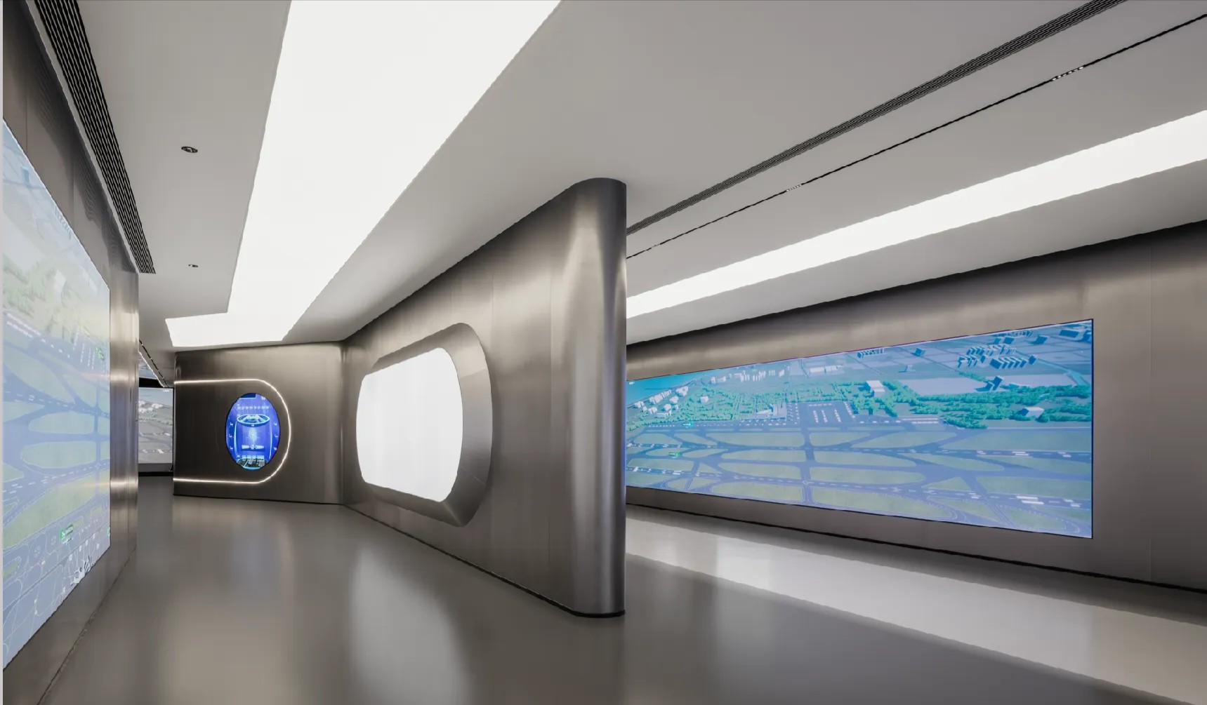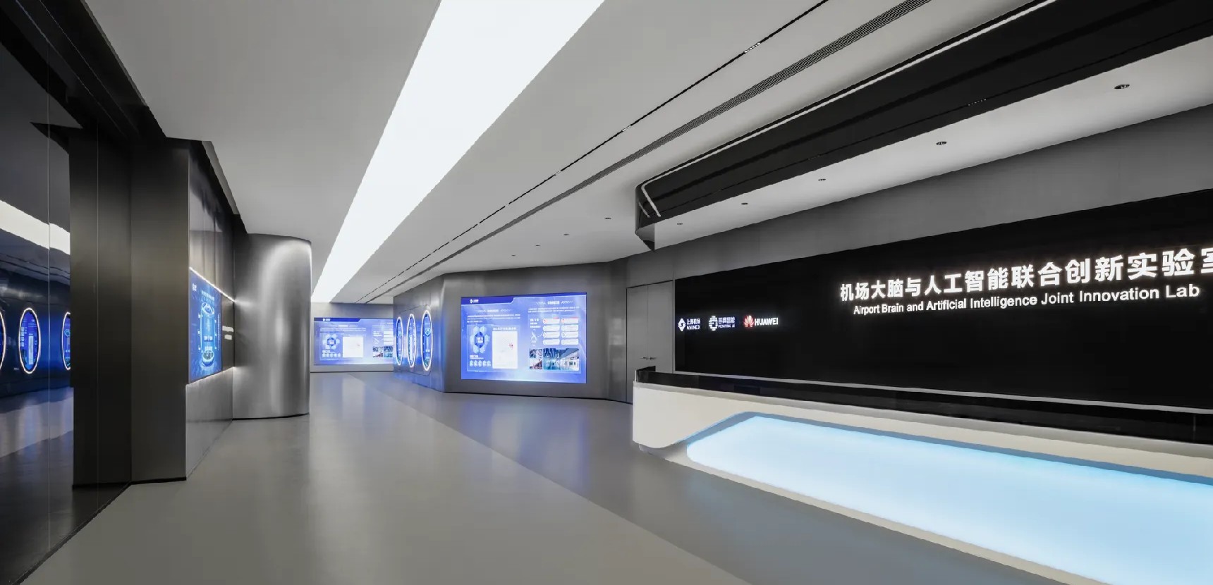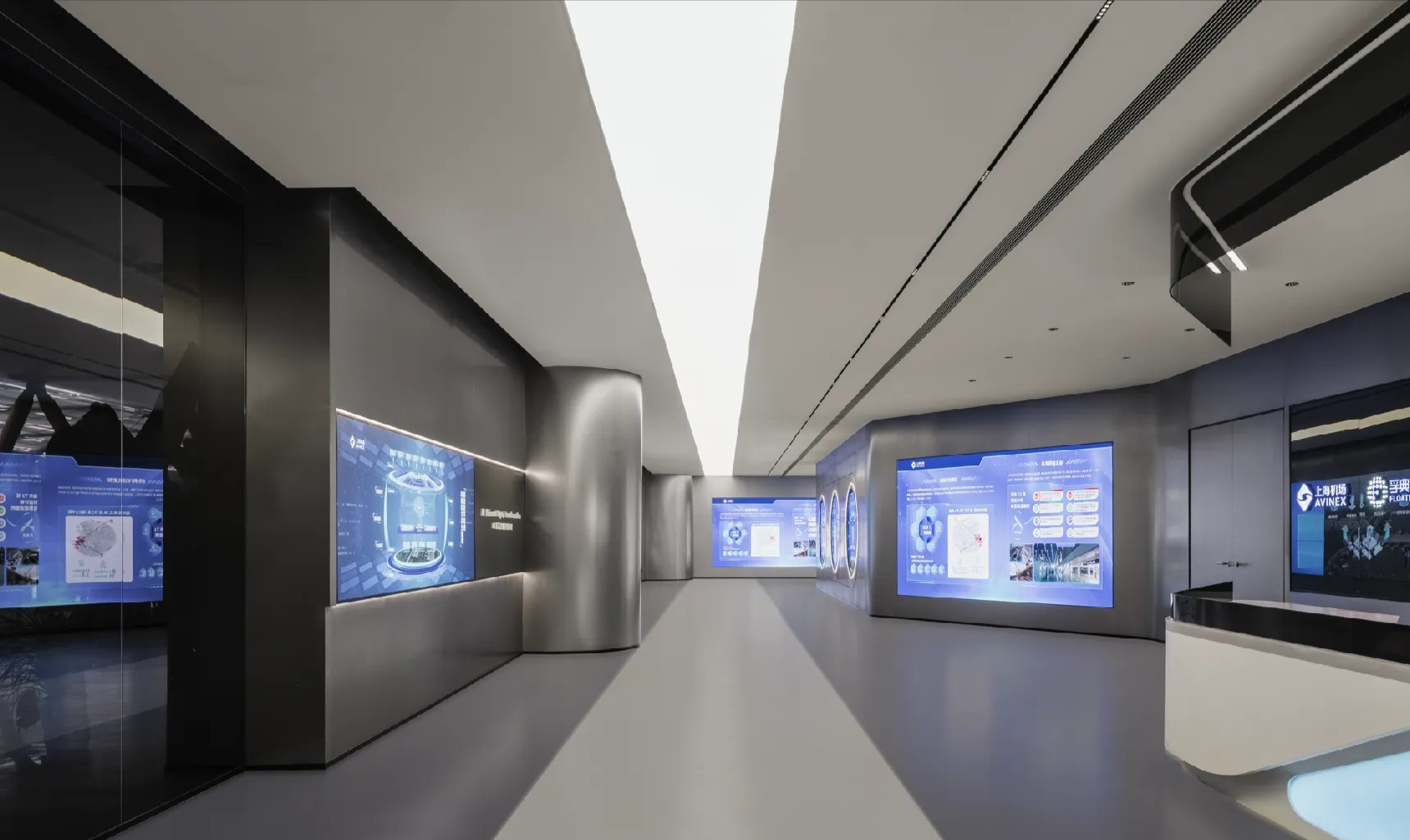 前台,以异形人造石为背景,大面积的留白直抒胸臆。点、线、面的光影组合,营造出极富纹理感和层次感的灯光氛围,与简约的形式质感相辅相成,墙面采用大量的弧形,有序,流动,使得有限的空间产生无限的视觉感受,延绵不绝。等待区用弧形半开放式的空间设计,增加了空间的趣味性。