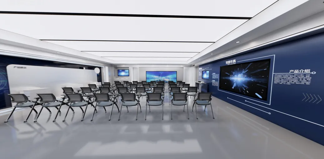 展厅精而美的造型和干净的色彩为企业产品营造一个极佳的展示场所,墙面展示内容涵盖了AR VR展示、个人电脑应用、智能手机、智能车机、可穿戴设备等,在这里人们可以感知智能科技的进步与发展成就,通过多媒体打造可视化品牌文化,以灵感融合科技的场景体验为来者传递尖端技术力量。