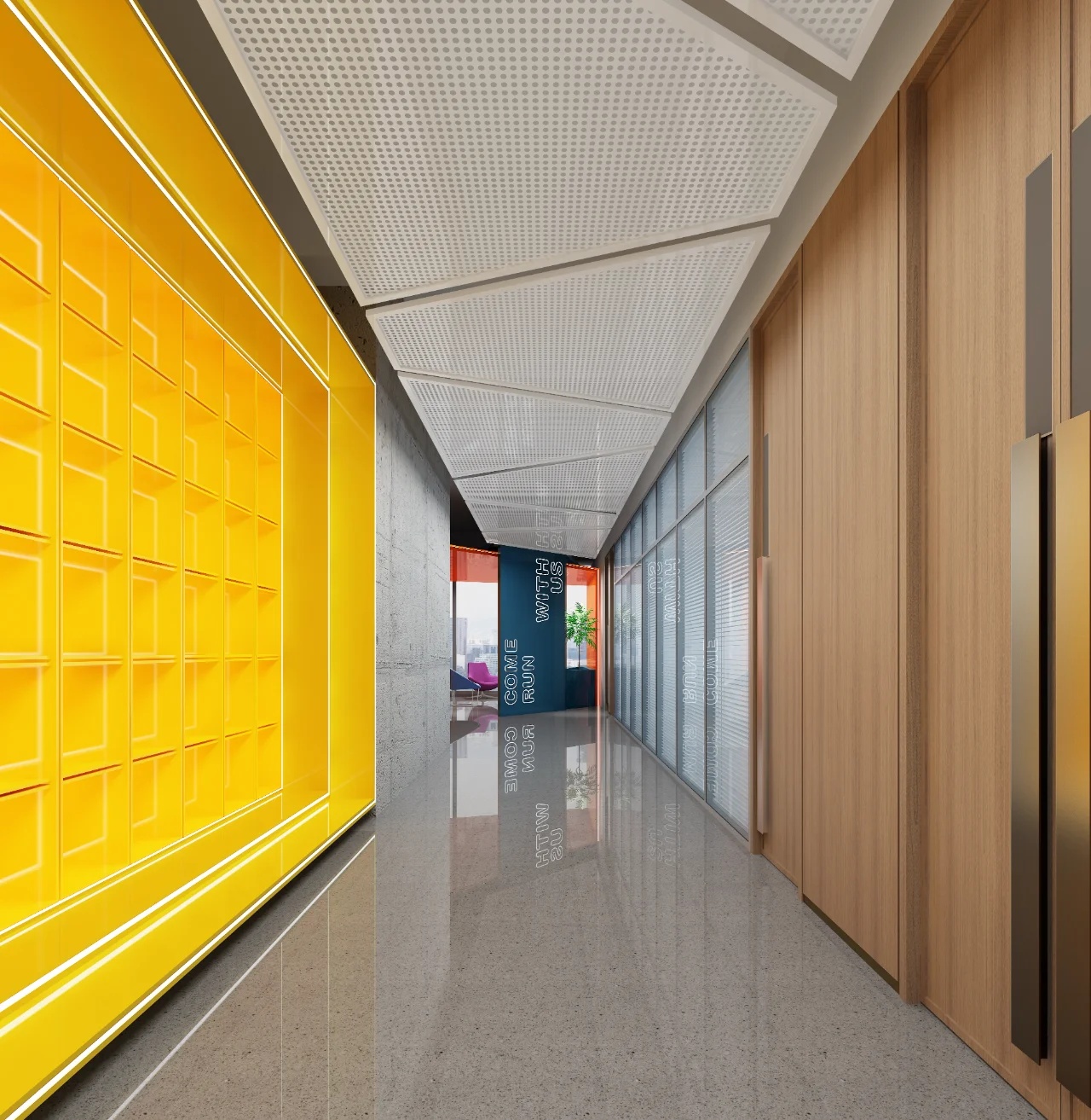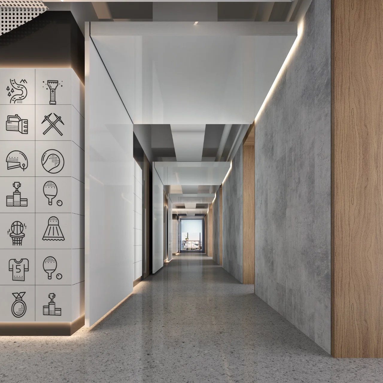 大厅承载着展览接待和交通停靠的复杂功能,设计采用精致银灰和纯白的空间节奏来处理这一区域。宏伟的空间将高科技产业的专业化转变为简洁的结构,银白主色的结合将创造出先锋前卫的行业文化。