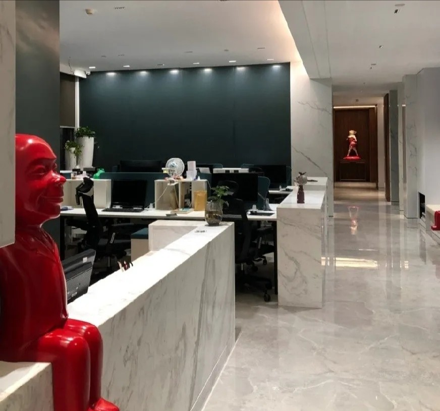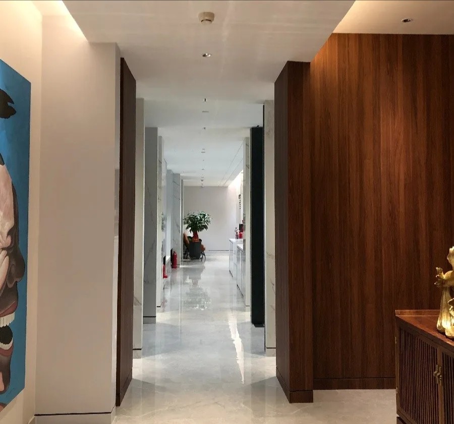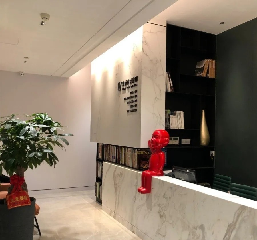 进入前厅接待台将视野带入整个空间,富有变化的竹简屏风造型让前厅于虚实之间自如转换,加强前厅和后台办公区采光及沟通,通过用隔而不断的方法打造空间,制造空间视觉通透感。