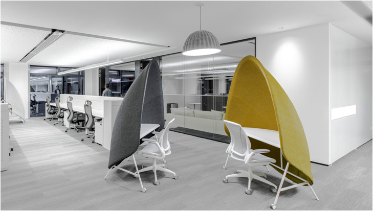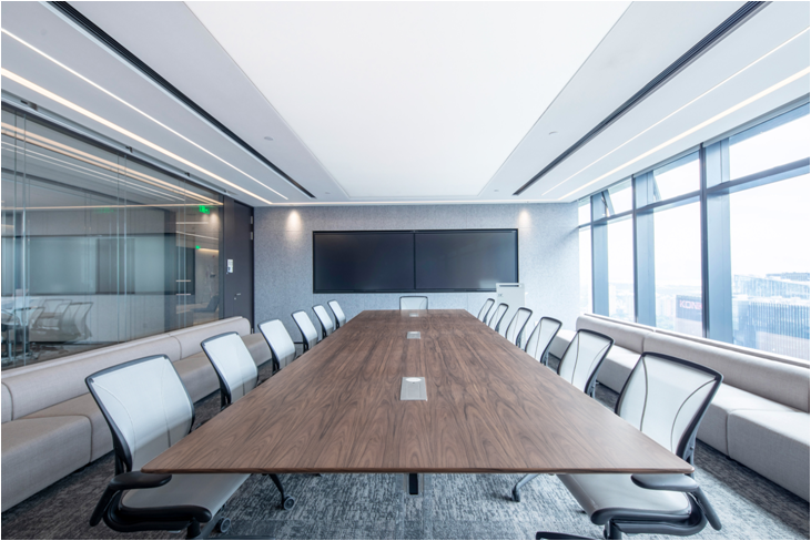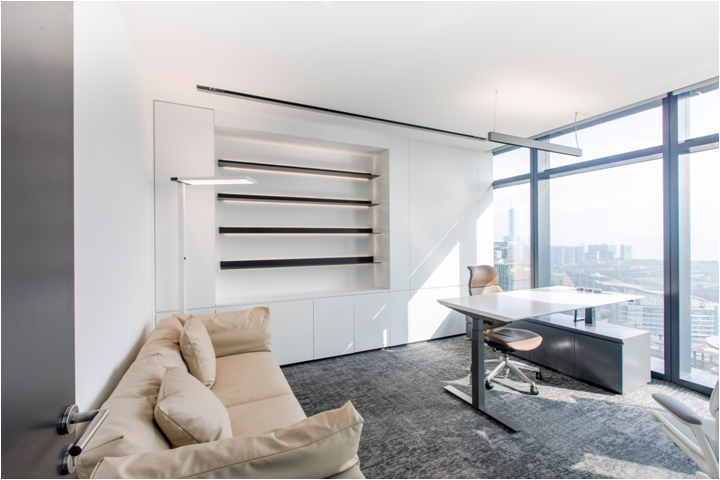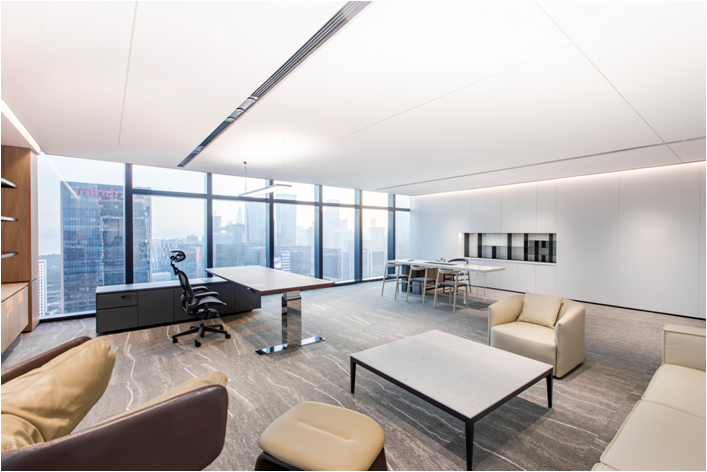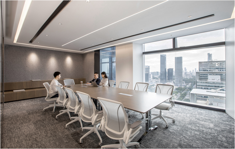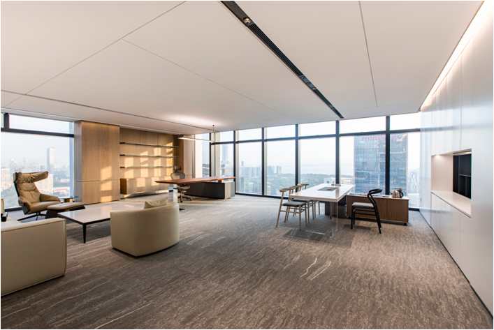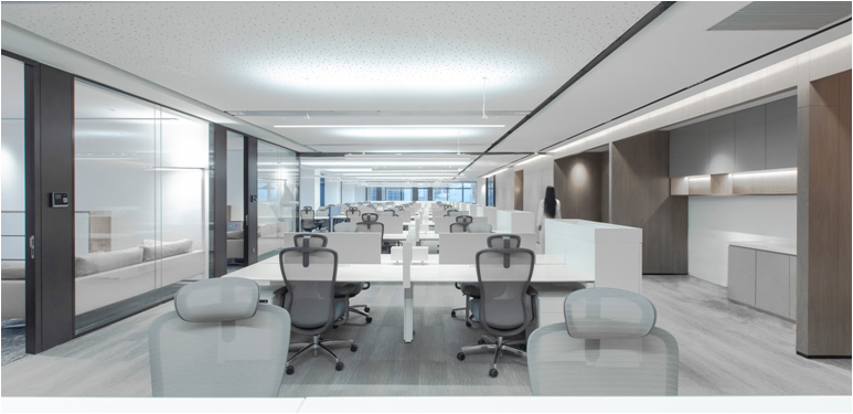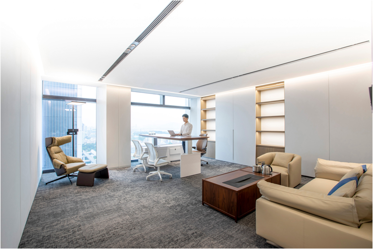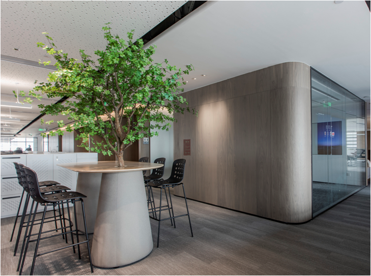 公共办公区与接待区之间的缓存区,突破以封闭、约束的传统局限办公模式、高效、开放随时独处、随意合作的空间设计理念,同时也可以作为举办企业活动的绝佳地点。