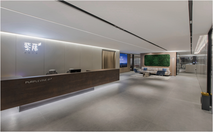 Purplevine IP项目设计上设计师提取深圳紫藤的核心理念“专业、敬业、乐业、创业。”四大核心理念为基调,以知识产权为支点将传统竹简的设计元素用现代手法融入当下科技未来的大潮流,关心员工’是绿色办公空间的目的,通过提升空间温度湿度和采光的舒适度、降低室内装修带来污染提高空气品质、使用环保材料等方式去创建健康的绿色办公环境.通过绿色环保节能设计,可以降低能源运营成本.过绿色设计为社会环境和生态环境做出一份贡献。