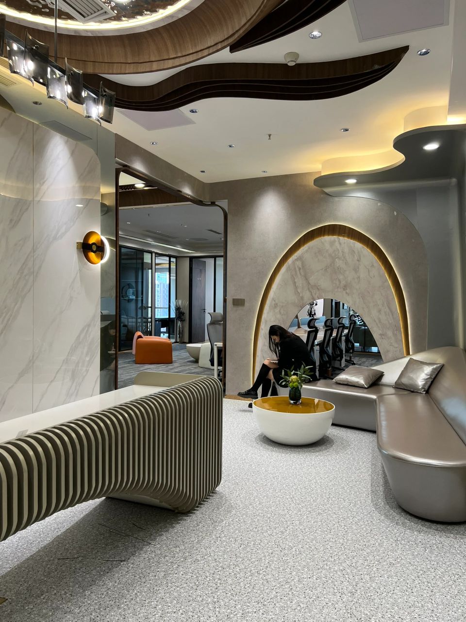 以拱形为造型的小型会议室在满足了客户功能性需求的同时又为空间增添了神秘感。