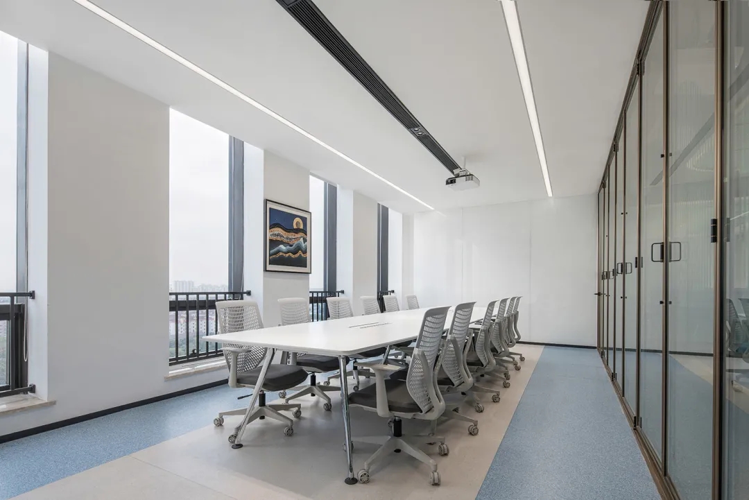 作为一家高速发展的芯片公司,awinic对会议室的需求高质多量,在办公空间设置不同尺寸的会议室,用以芯片元素的玻璃贴膜,装饰画等营造不同风格的会议空间,满足客户的多种需求。