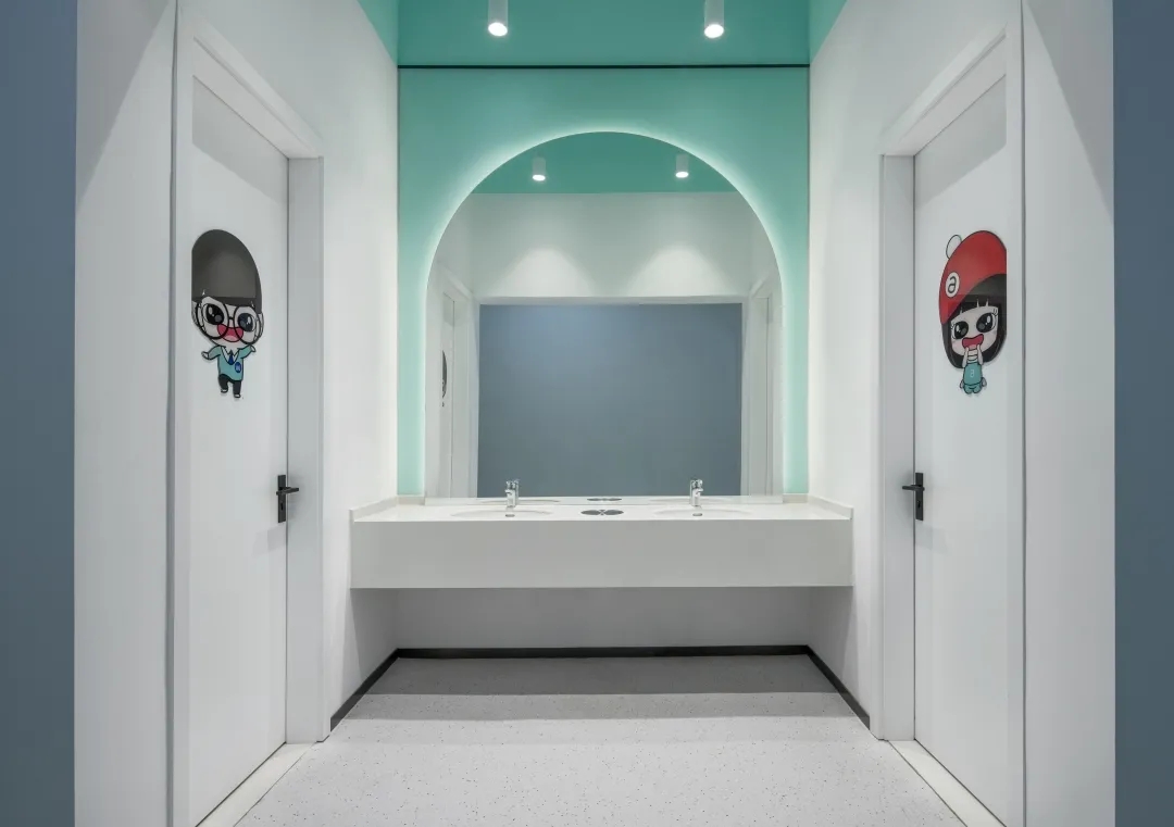 洗手间的拱形造型选用亚克力发光膜的材质,使光线本身成为主角而不是媒介,运用材质与氛围光的结合,仿佛营造出另一个精神世界。