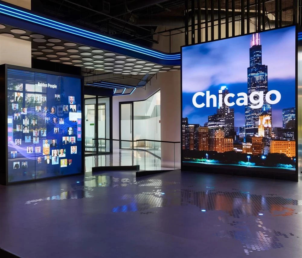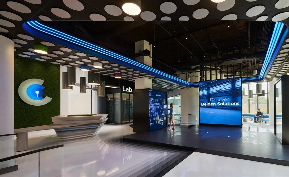 Belden邀请2Heads帮助打造一个体验式空间,去展示他们的创新解决方案;同时鼓励协作与讨论,并在演播室般的环境中举办演示和讲座。作为一个与品牌风格产生共鸣的美丽空间,CIC客户创新中心需要成为国际流媒体活动的背景;与品牌新方向相呼应的展品,并邀请全世界共同见证Belden的先进科技。芝加哥CIC客户创新中心是一个屡获殊荣的符合人体工程学的环境,这里既可以是私密的,也可以是开放的,随时邀请访客进行观摩探索。CIC的每个功能区域都采用不同的方法来说明Belden网络的好处;他们为什么是当今传输应用程序所需的越来越多的数据、音频和视频的专家。2Heads创造了影片和数字序列,让访客在视觉上沉浸在各种可能性的解决方案中。验证实验室展示了专业技术知识,沉浸式Belden立方体展示了Belden解决方案之旅和数字化转型。从技术咨询、项目管理到教育和活动,Belden现在拥有了一个展现其尖端解决方案的沉浸式体验空间。