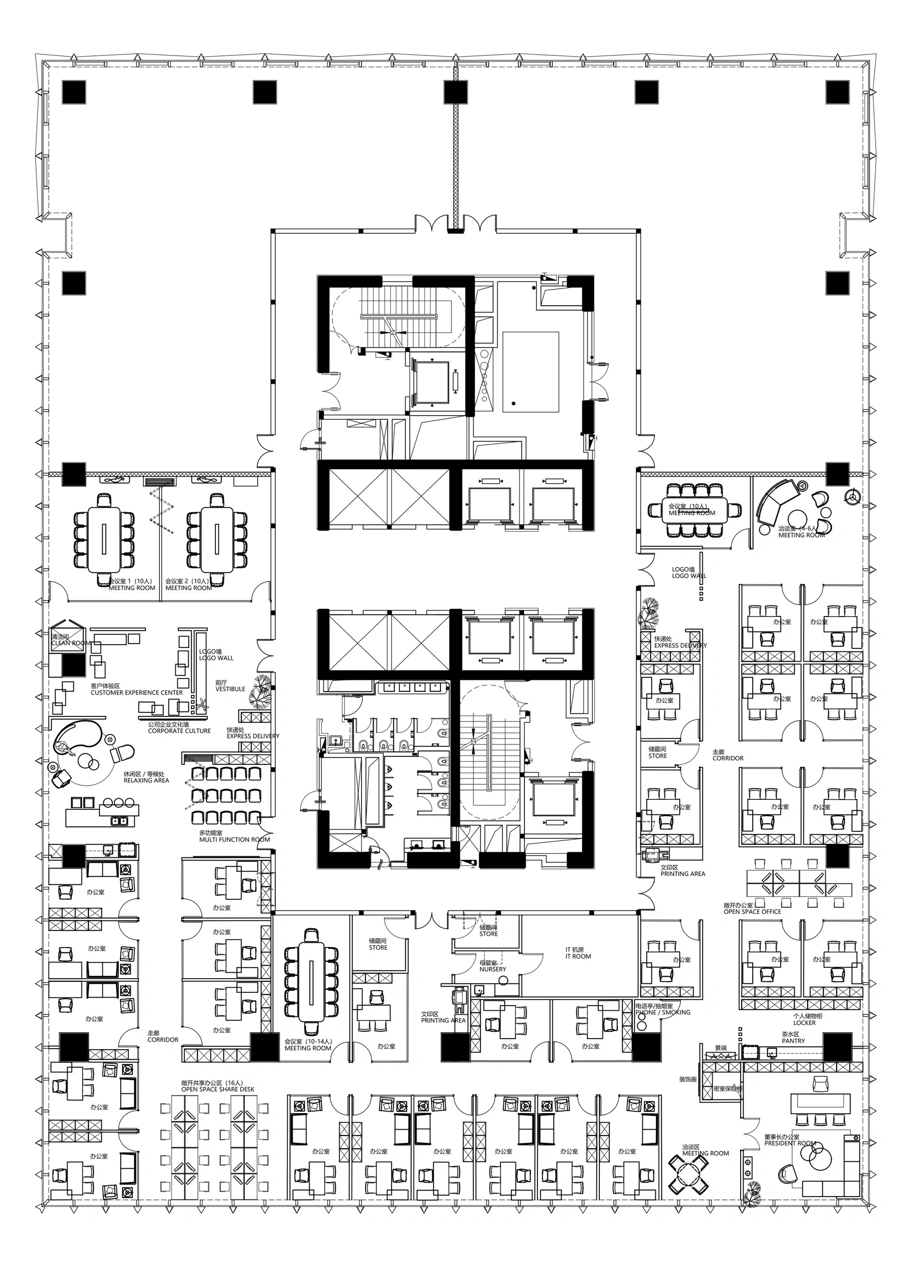 本项目以“现代东方禅意”为设计理念,打破传统的办公空间,运用设计美学贯穿到办公空间,让员工感到宁静和安逸的办公空间。