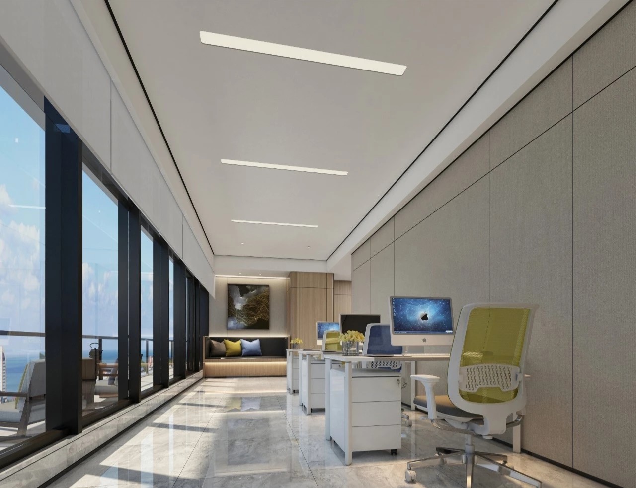 以创意、舒适作为办公区设计切入点,让员工在工作时更加轻松,更富有激情,甚至能够激发思维,进而更高效的完成工作。