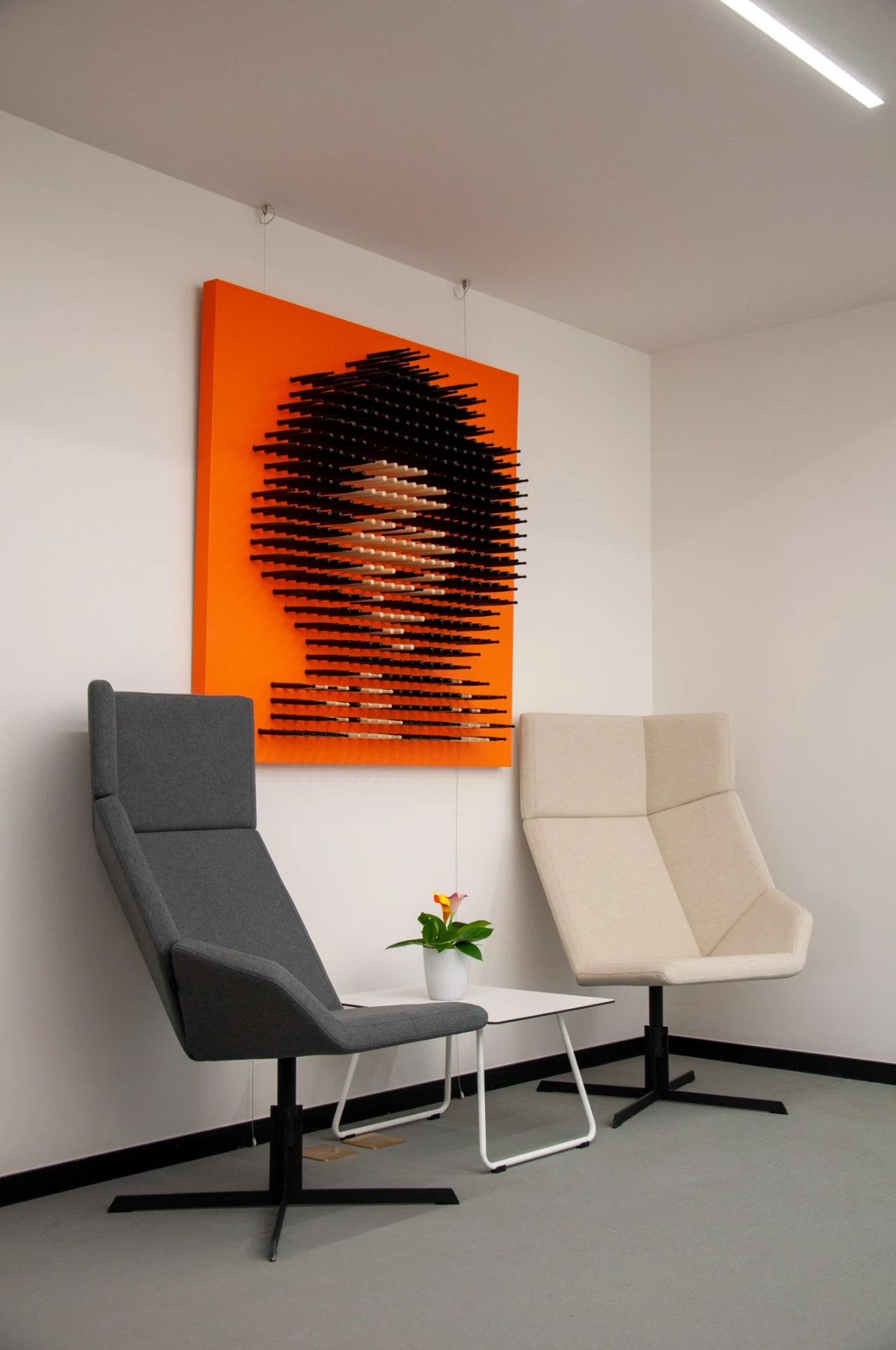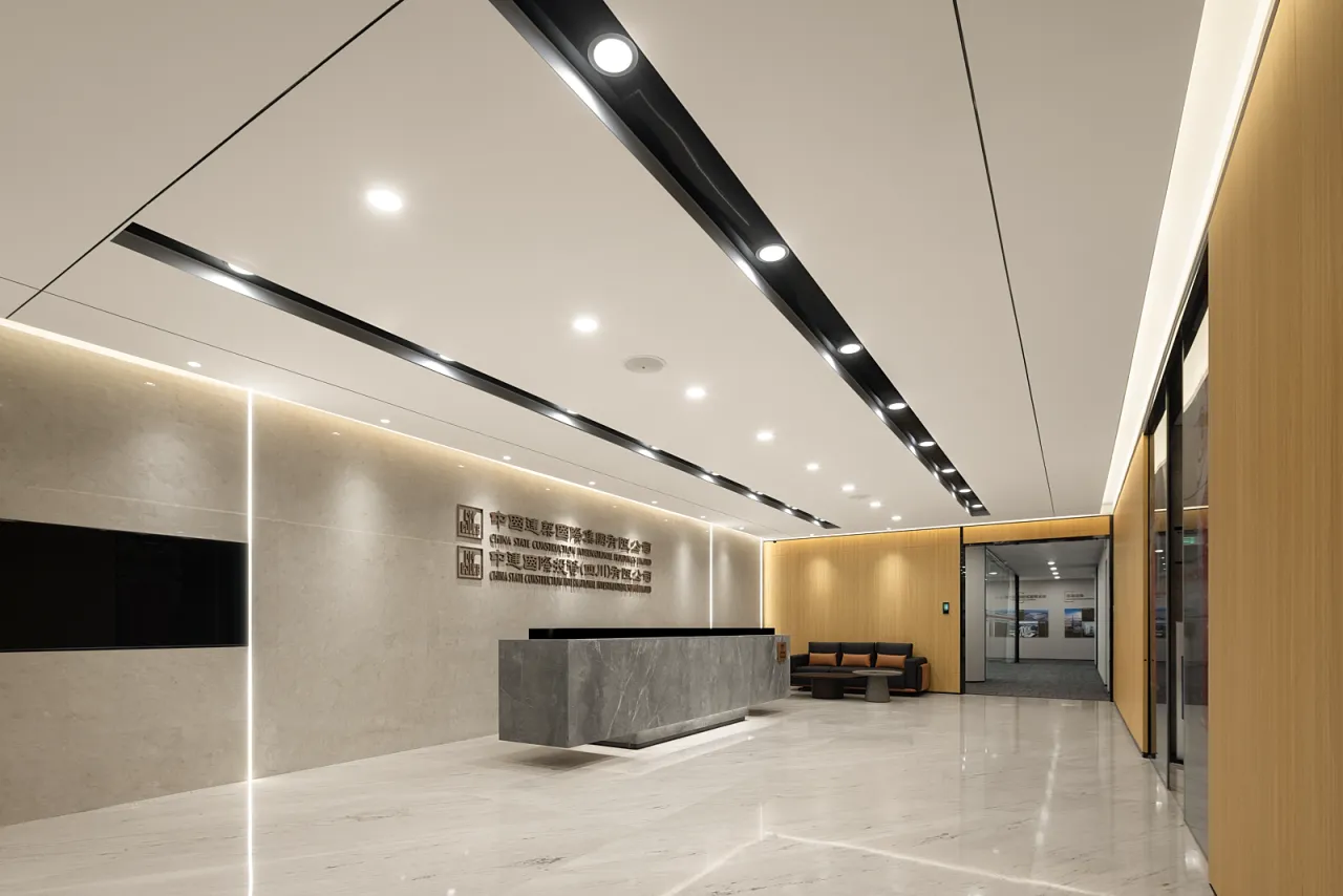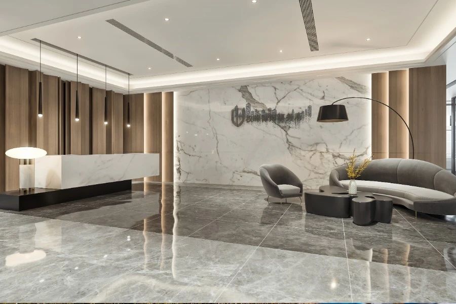 进入公司前厅,映入眼帘的是其现代的装修风格以及简洁规整的公司logo。侧边配以造型独特、棱角分明休闲沙发,墙面装饰同时给予访客一种很强的艺术冲击力。