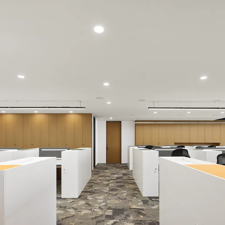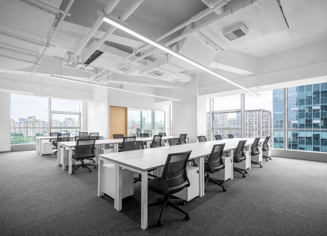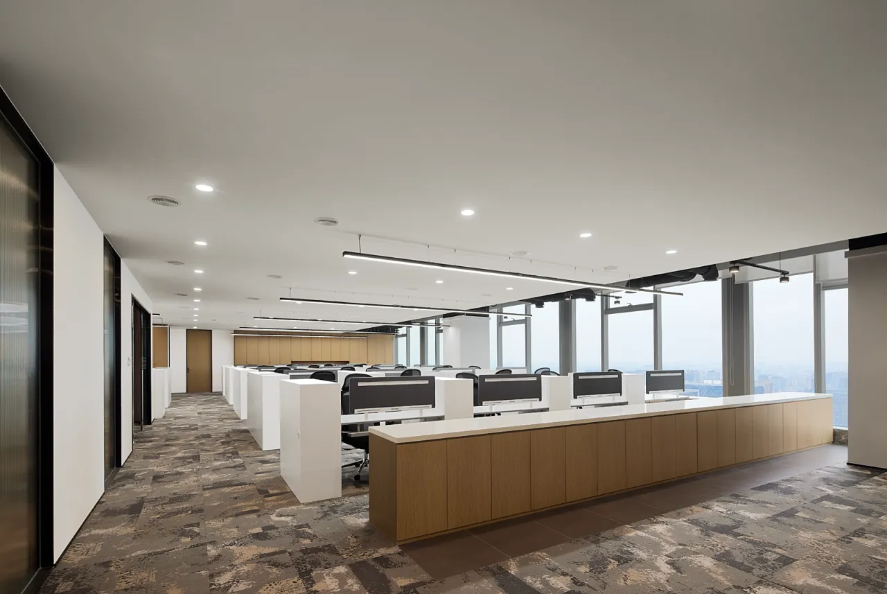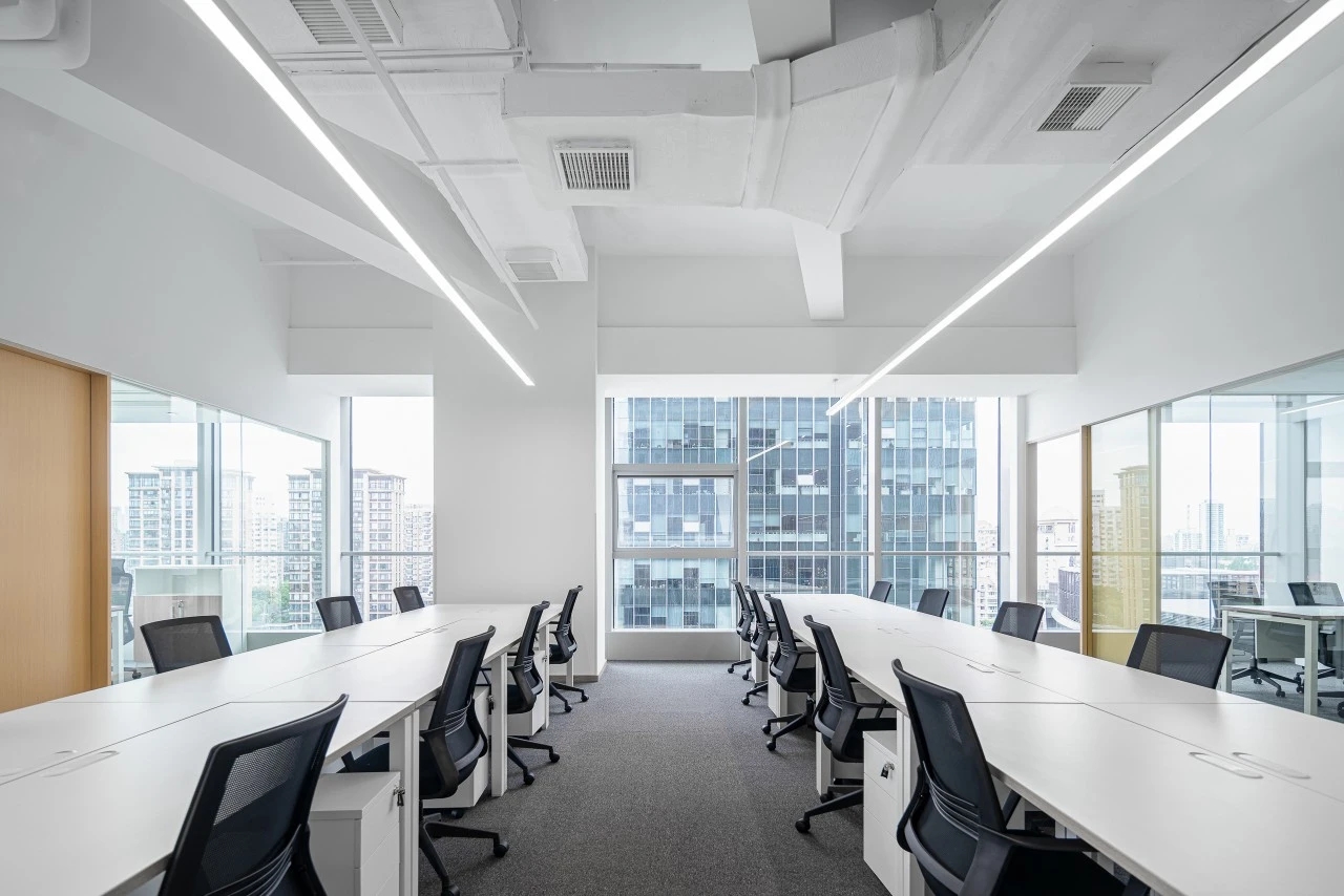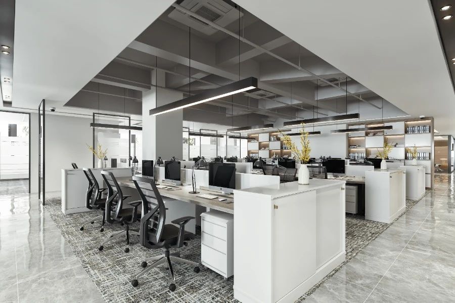 办公区采用了常见的门子型腿工位,简洁大方的同时看上去秩序感十足,实现了空间利用率最大化。