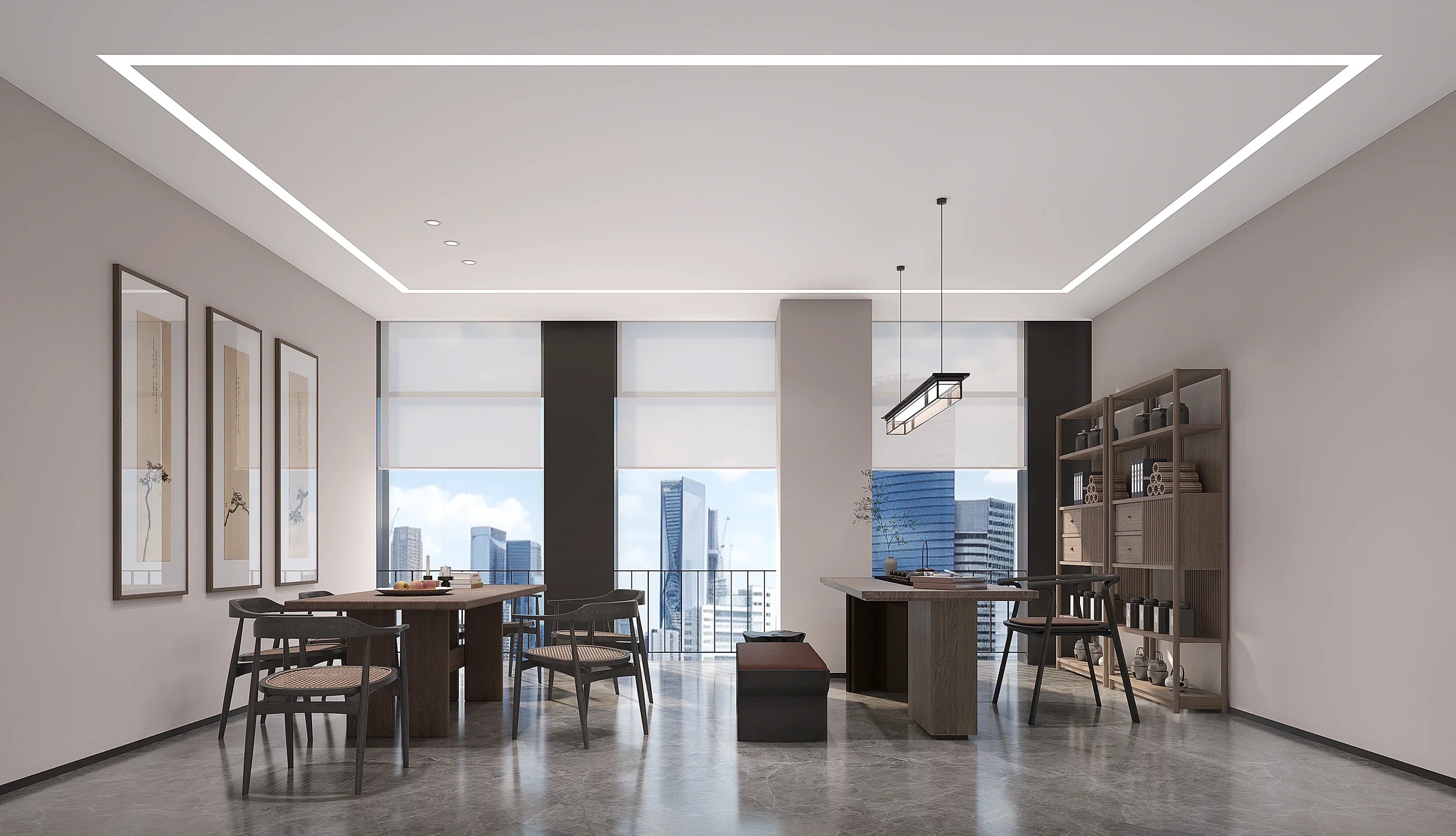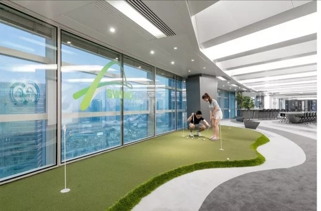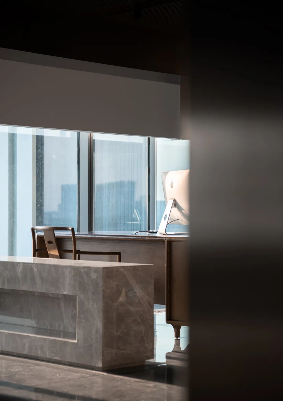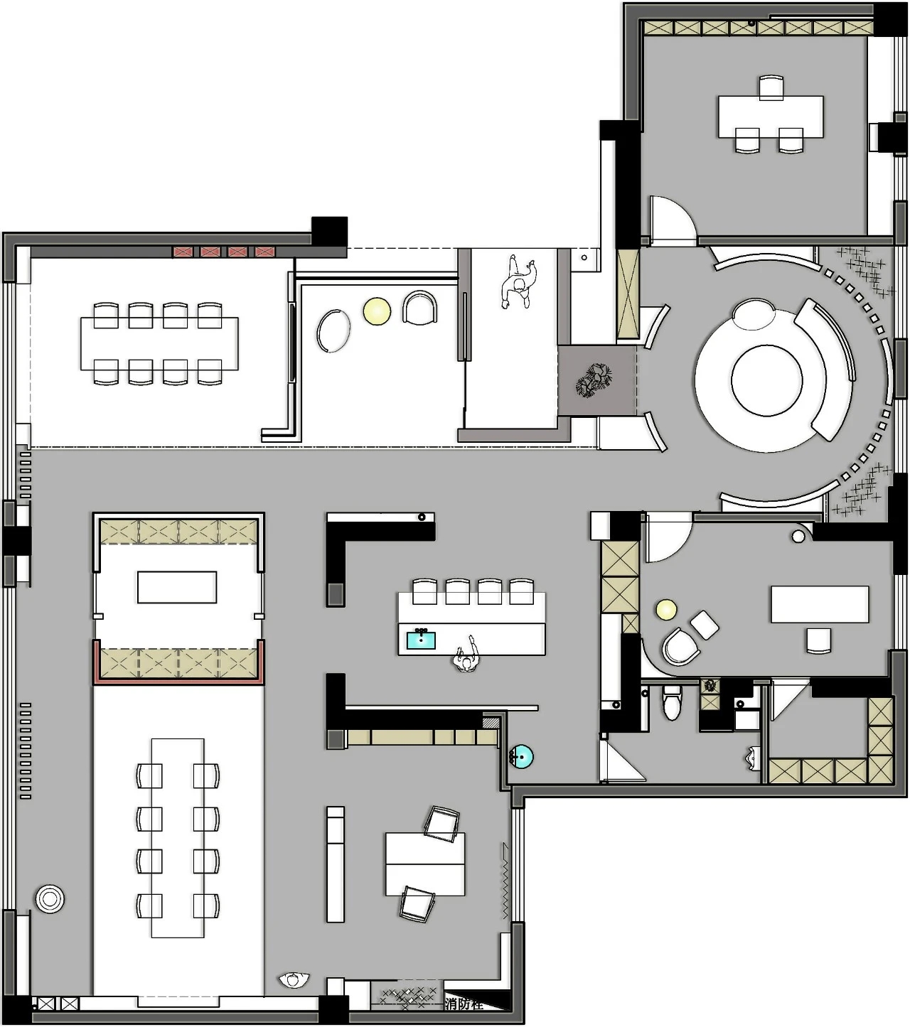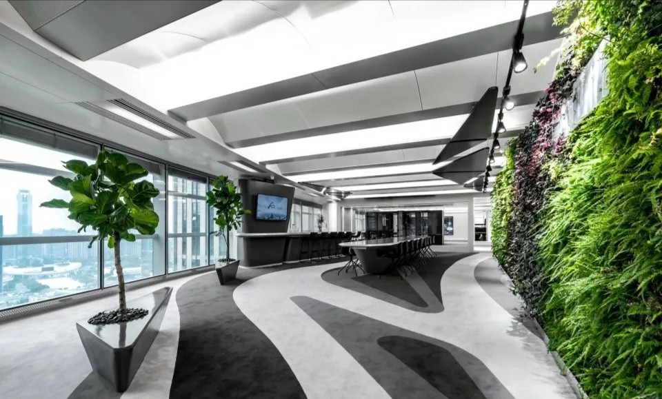 在大面积的黑白二元对立中,曲线以其灵动、柔美,及富有变化的特性,中和了干练,成就了一种简约又时尚的新感官体验,同时也柔化了空间中沟通交流的情绪。