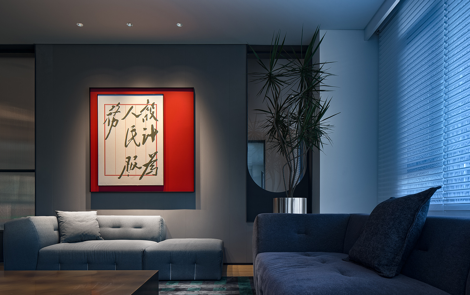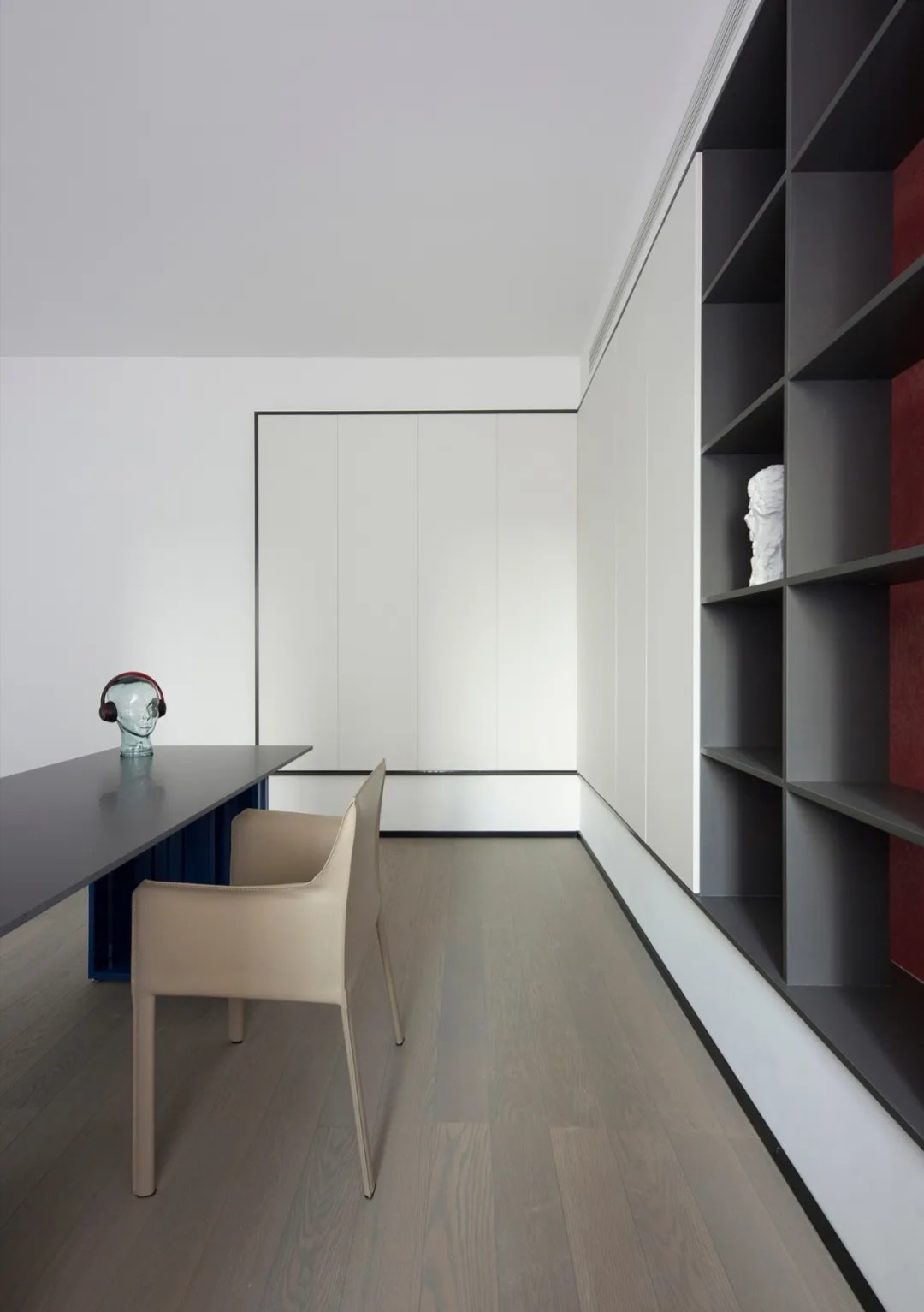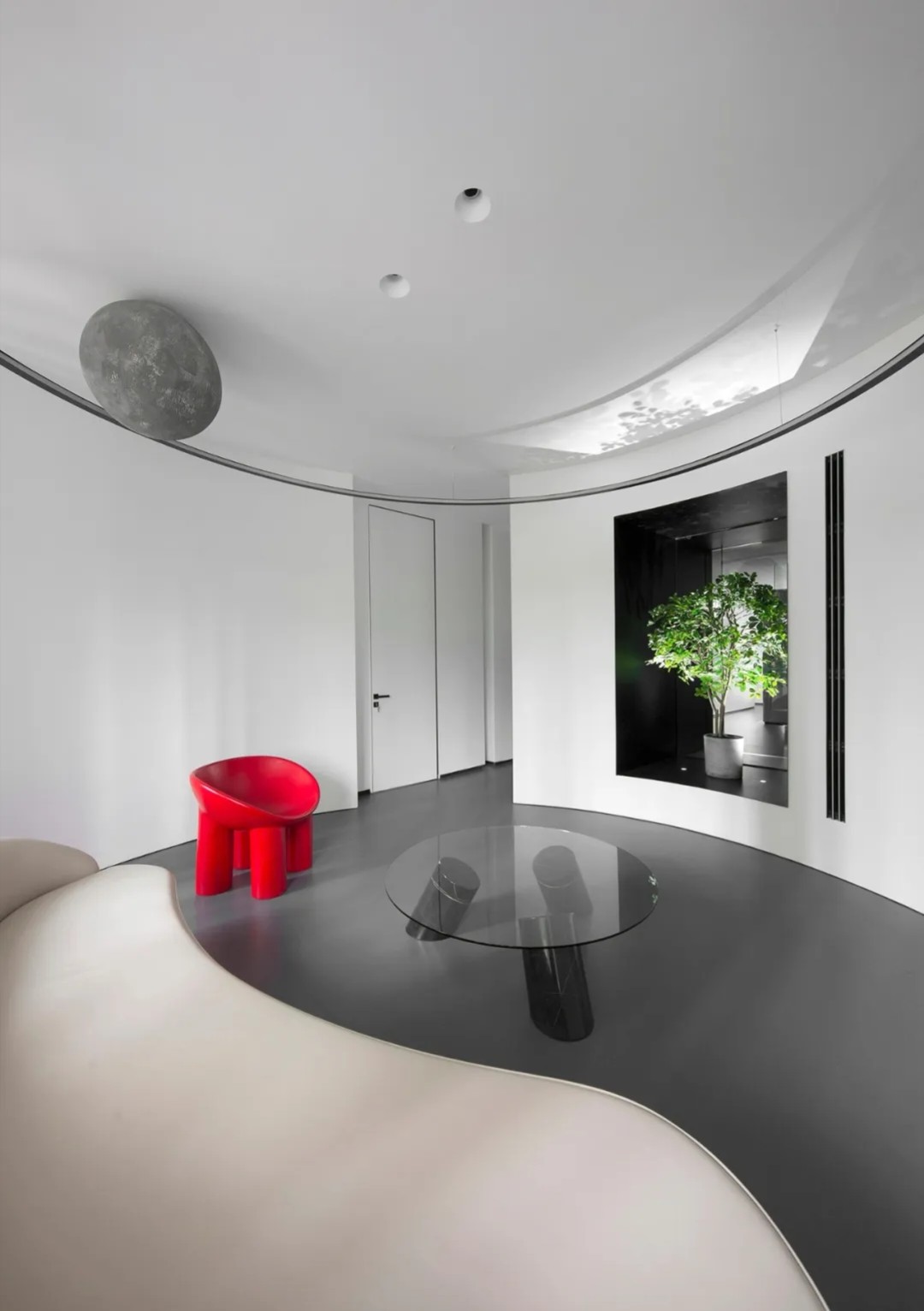 曲线的神来之笔,白色的基底,恰如空间盒子的意向,既加持了干练的聚焦,又有果断分明的间隔,恰恰成为空间中对立而又融合的特色。