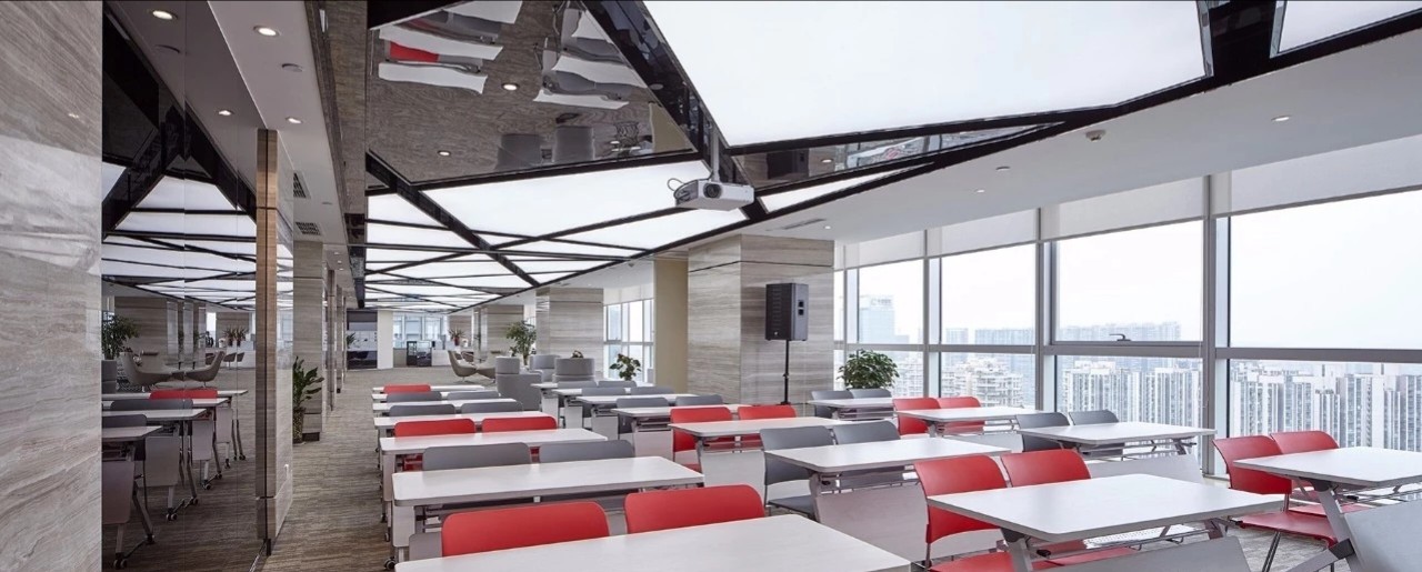 通过韵律几何造型与线状体的碰撞,加上灵动的中国国韵元素的相辅相成,创造出专属华夏万卷独有的企业文化内涵,将空间的静与喧嚣发挥的淋漓精致,唯有如此方能运筹帷幄,决胜千里。