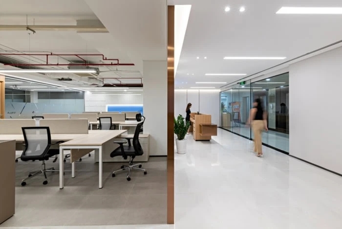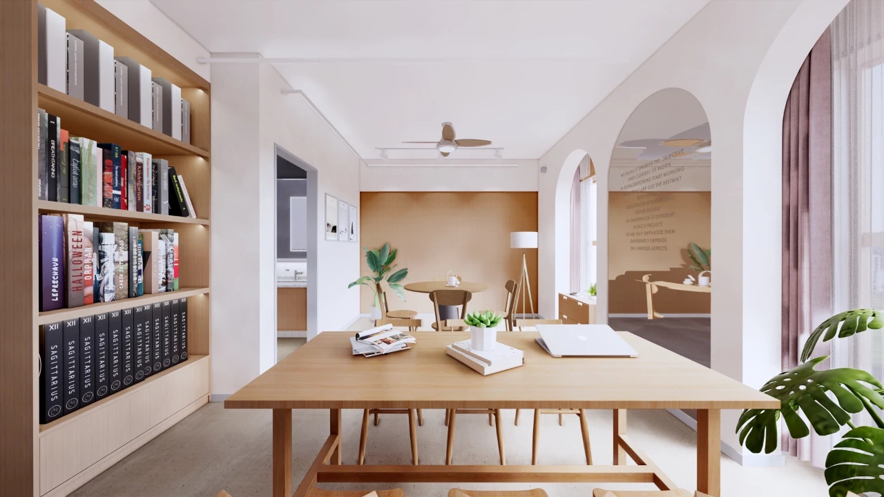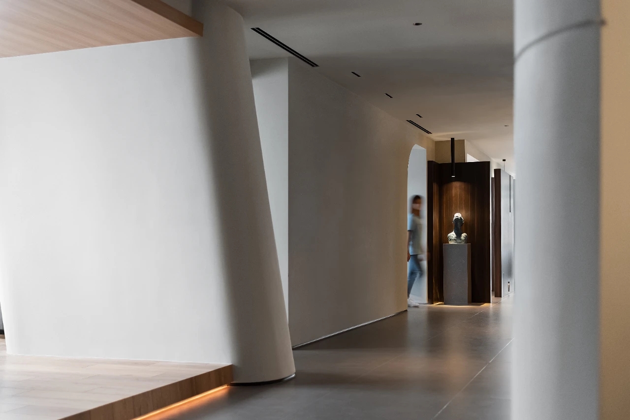 兼具内部工区实用的布局,结合前区宽敞视野以及合理参观动线。主副楼层的平面都将空间得以最大化得利用,无论对于律师行业隐私私密空间的需求还是存储空间的配置也是做到最大化的优化。开放工区的开阔与私密空间的通透,最大化的利用了采光,简单实用的软装搭配让整体空间素雅而清爽。