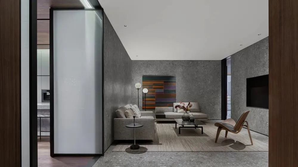业主的私人公寓延续了办公空间精致、简约的设计语言。屏风、玄关柜、开放式西厨彼此相连又互不打扰,起居室与书写区由同一面背景墙界定。主卧室位于最私密的位置,烤漆板与手工地毯形成了有趣的对比,配合隐藏在平面、立面中的尺度和比例呈现了一个舒适的空间。