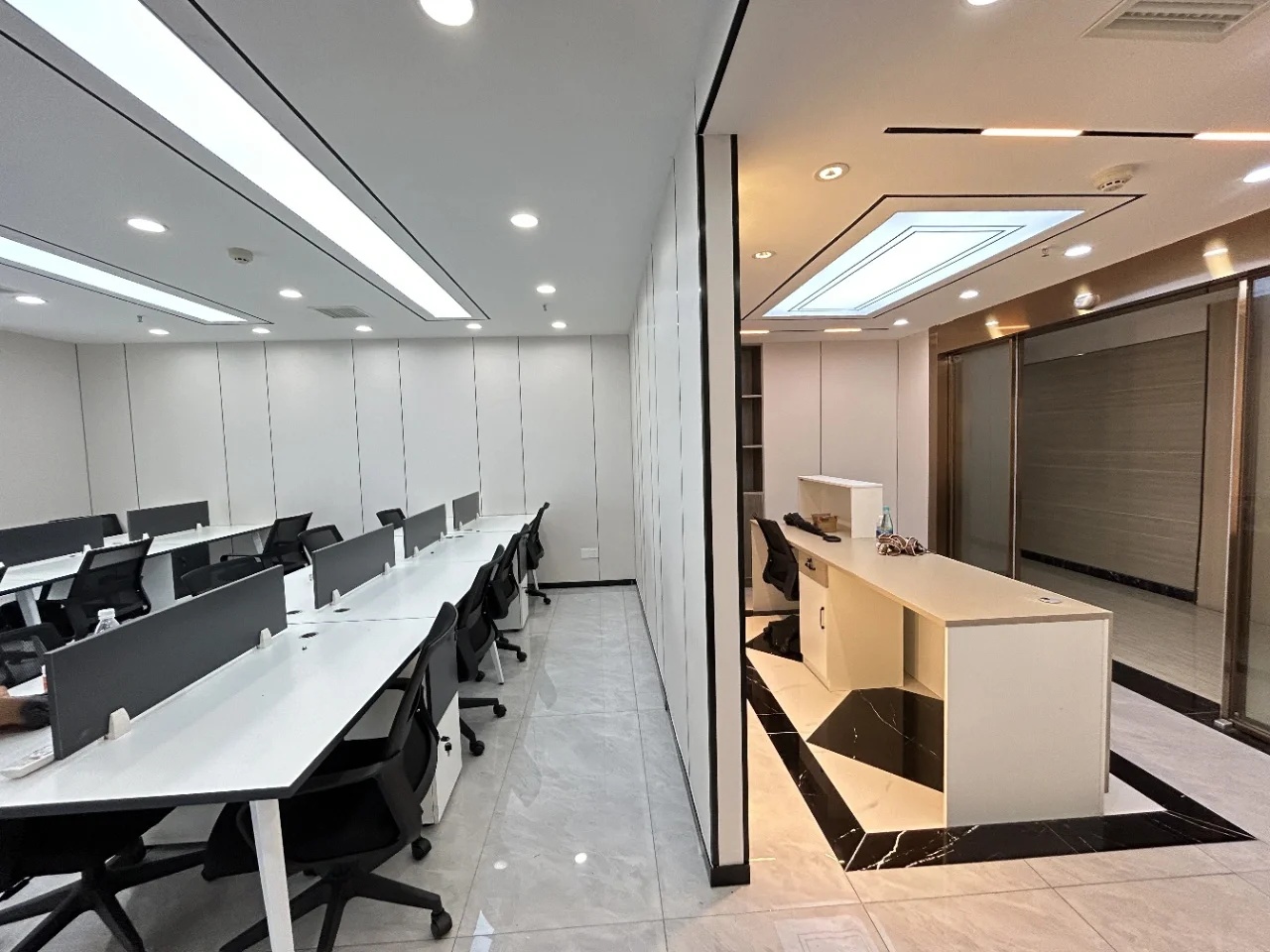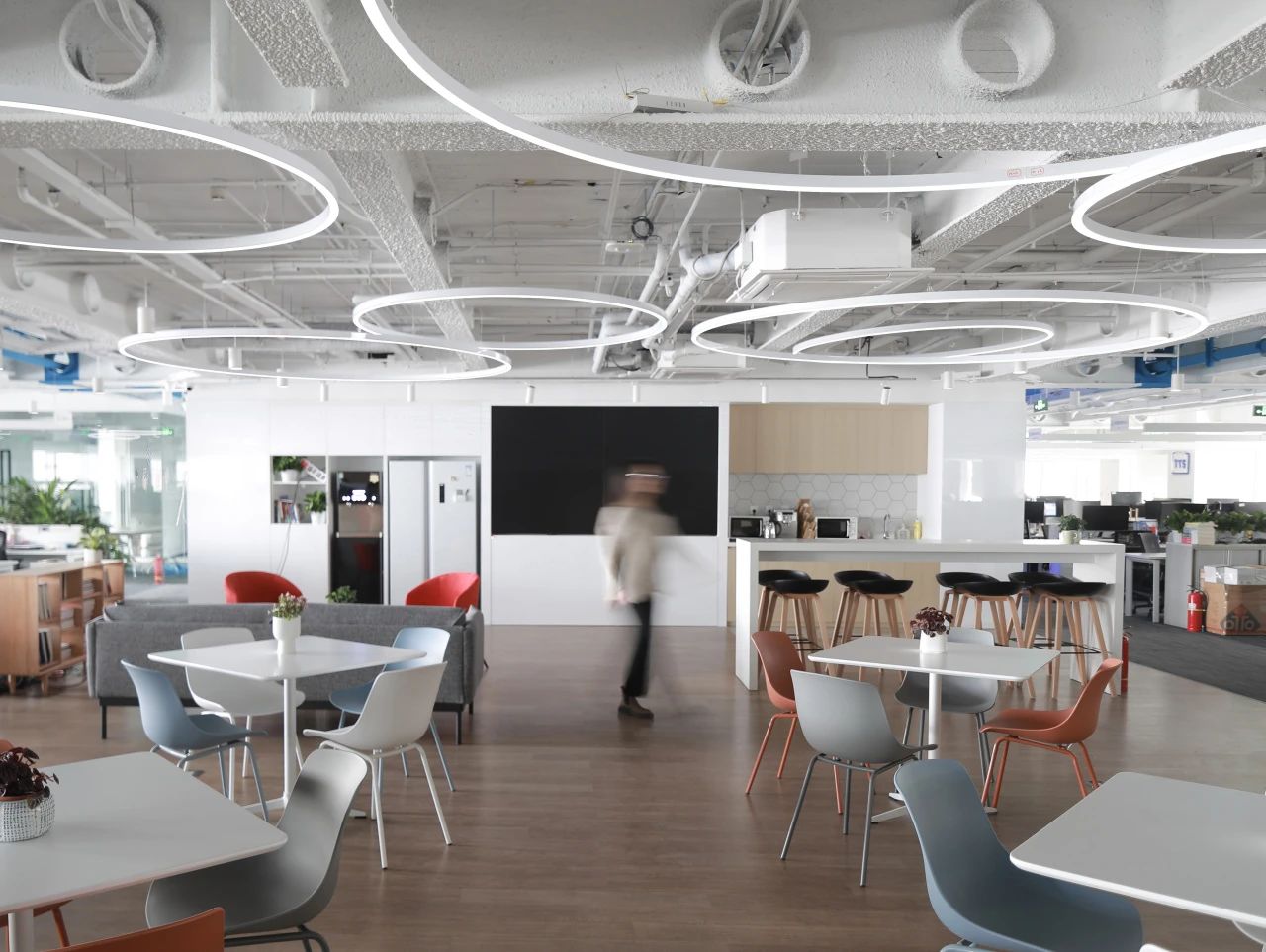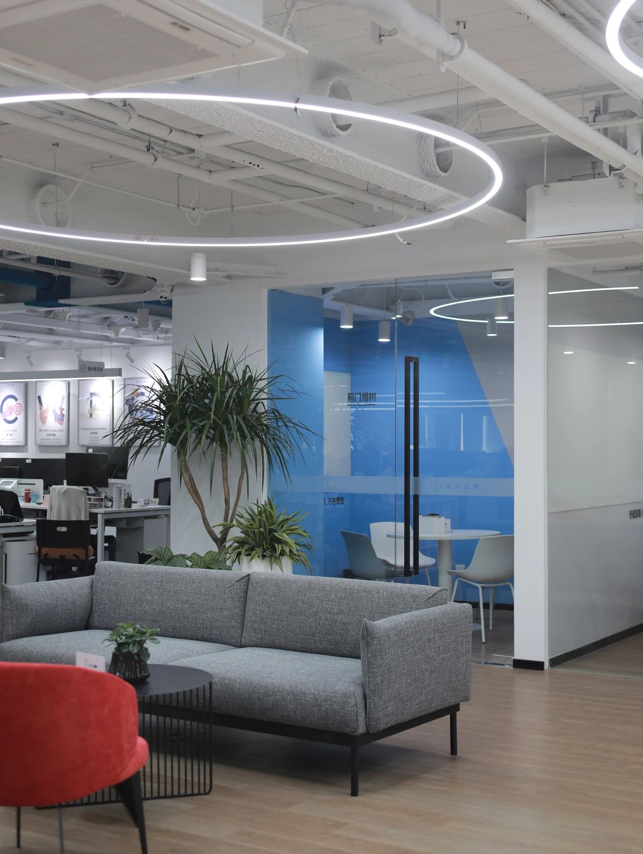 我们充分考虑员工的工作需求和舒适感受,将现代化的科技元素与温馨舒适的环境完美融合。在海天瑞声新办公空间中,蓝色被赋予了特殊的意义和设计灵感,成为了整个空间的主题色。这不仅仅是因为蓝色是海洋的颜色,也代表着沉静、智慧与洞察力。蓝色贯穿着整个办公区域,为员工创造了一个富有创造力和专注力的工作环境。