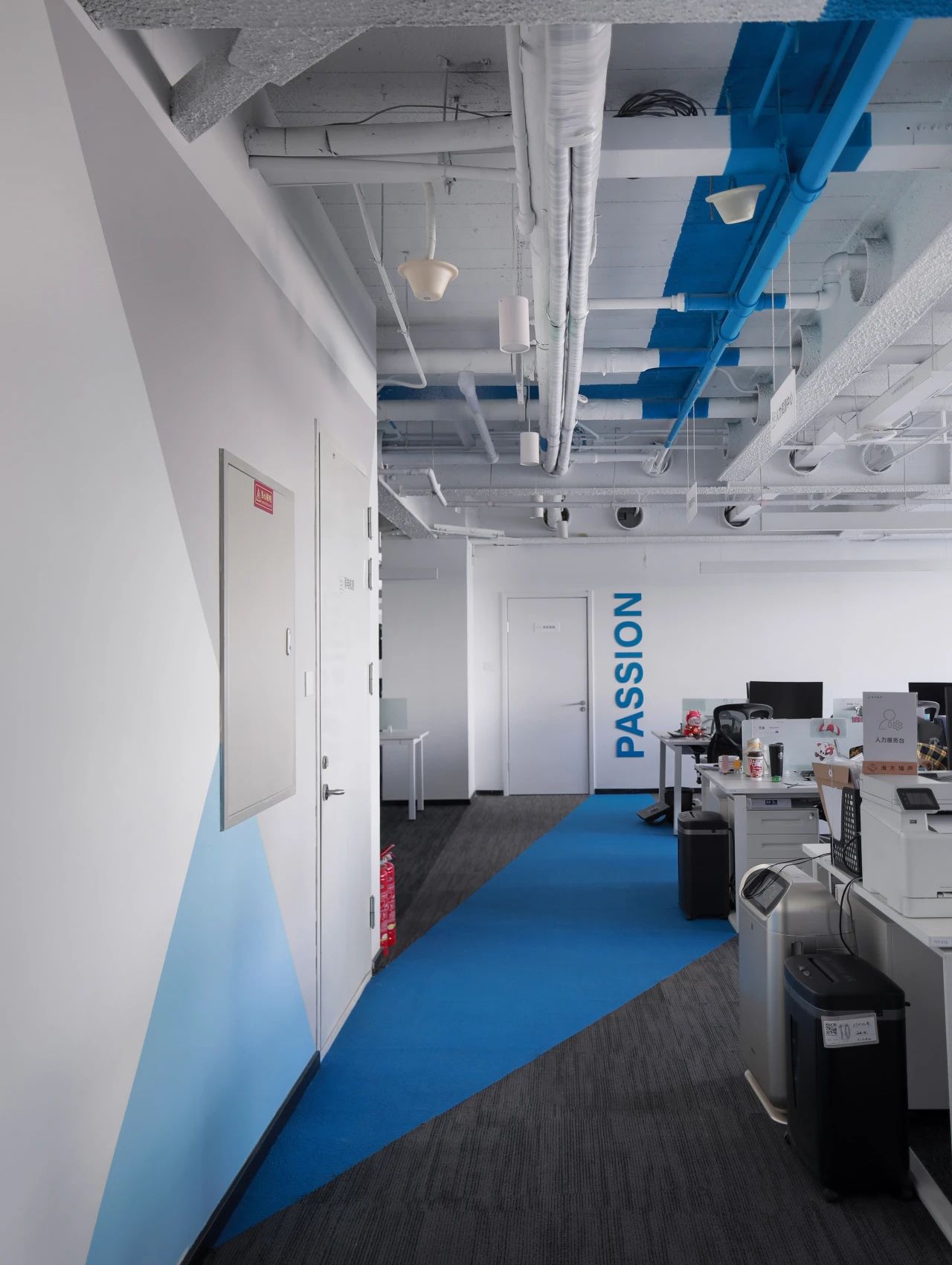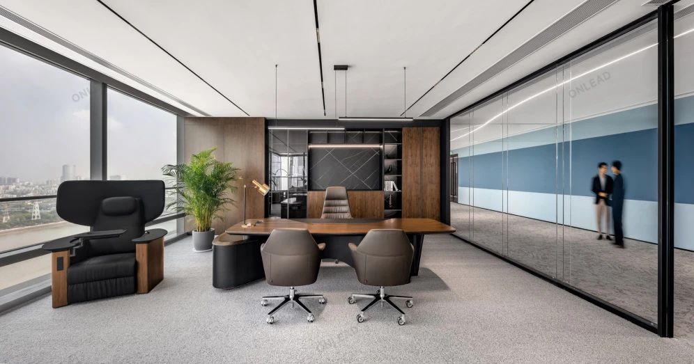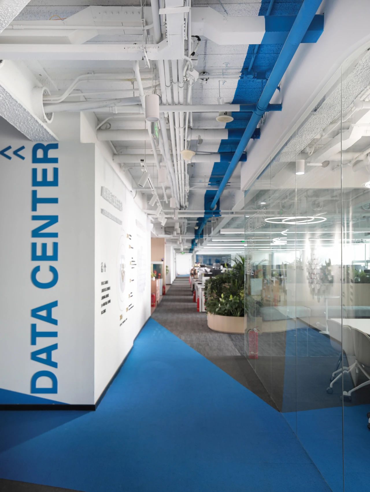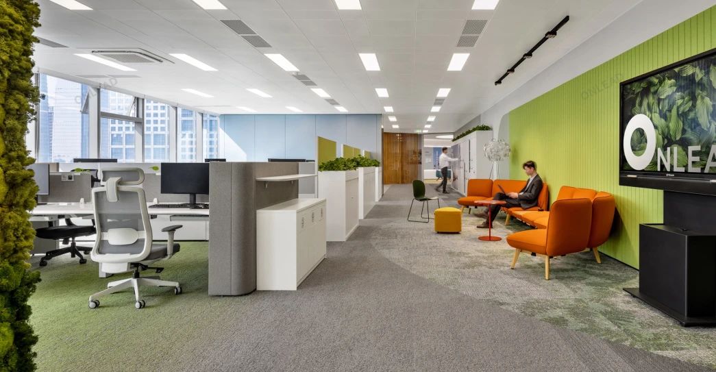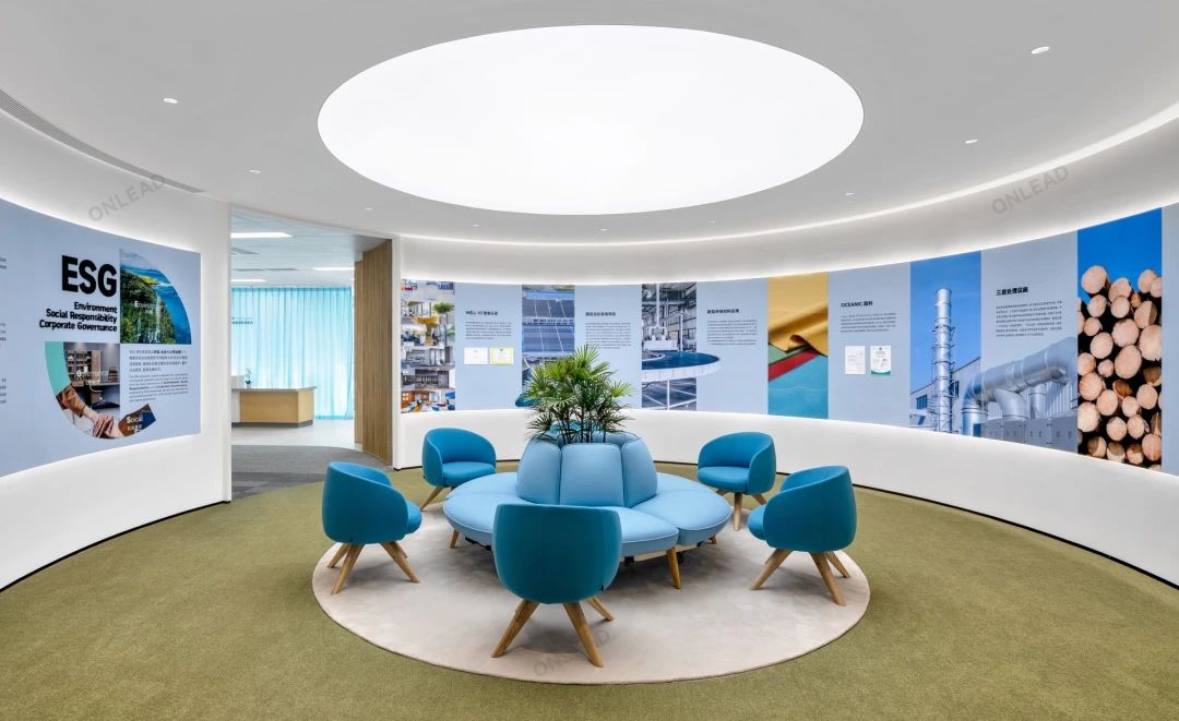 蓝色设计巧妙地点缀在整个空间中,与其他材质和元素相得益彰,为员工创造了一个舒适、明快、富有创意的工作环境。蓝色代表着海洋的宽广与深邃,象征着企业对未来的探索与追求。我们希望空间中强烈的视觉色彩,为员工带来一份清新、活力和激情,激发了员工的工作激情和创造力,为企业的发展注入新的动力。