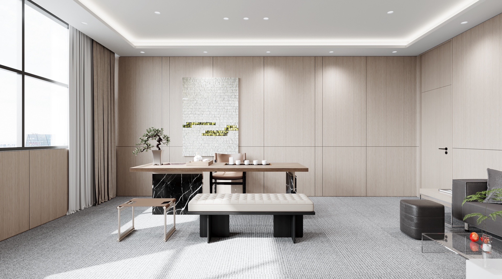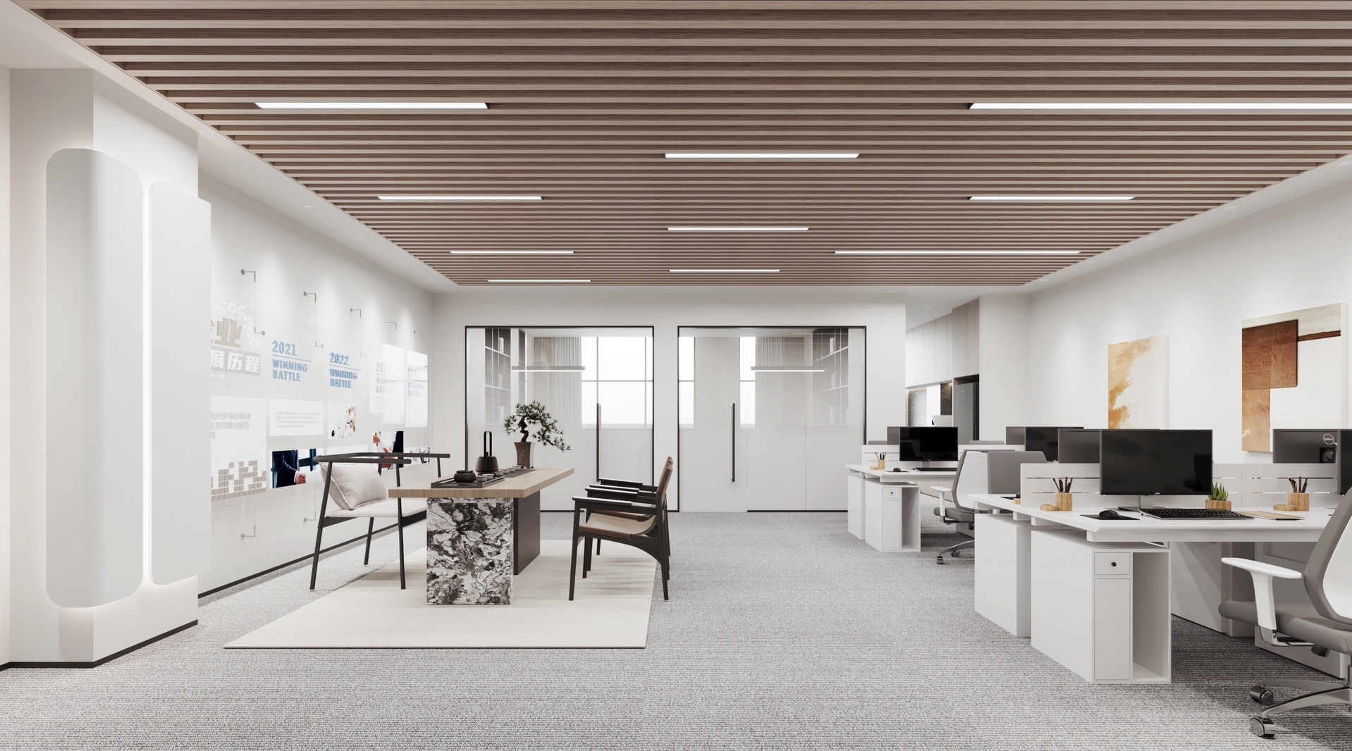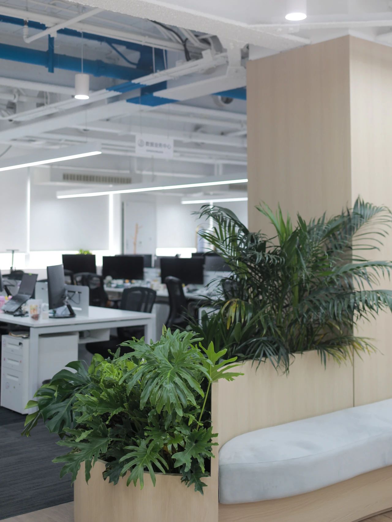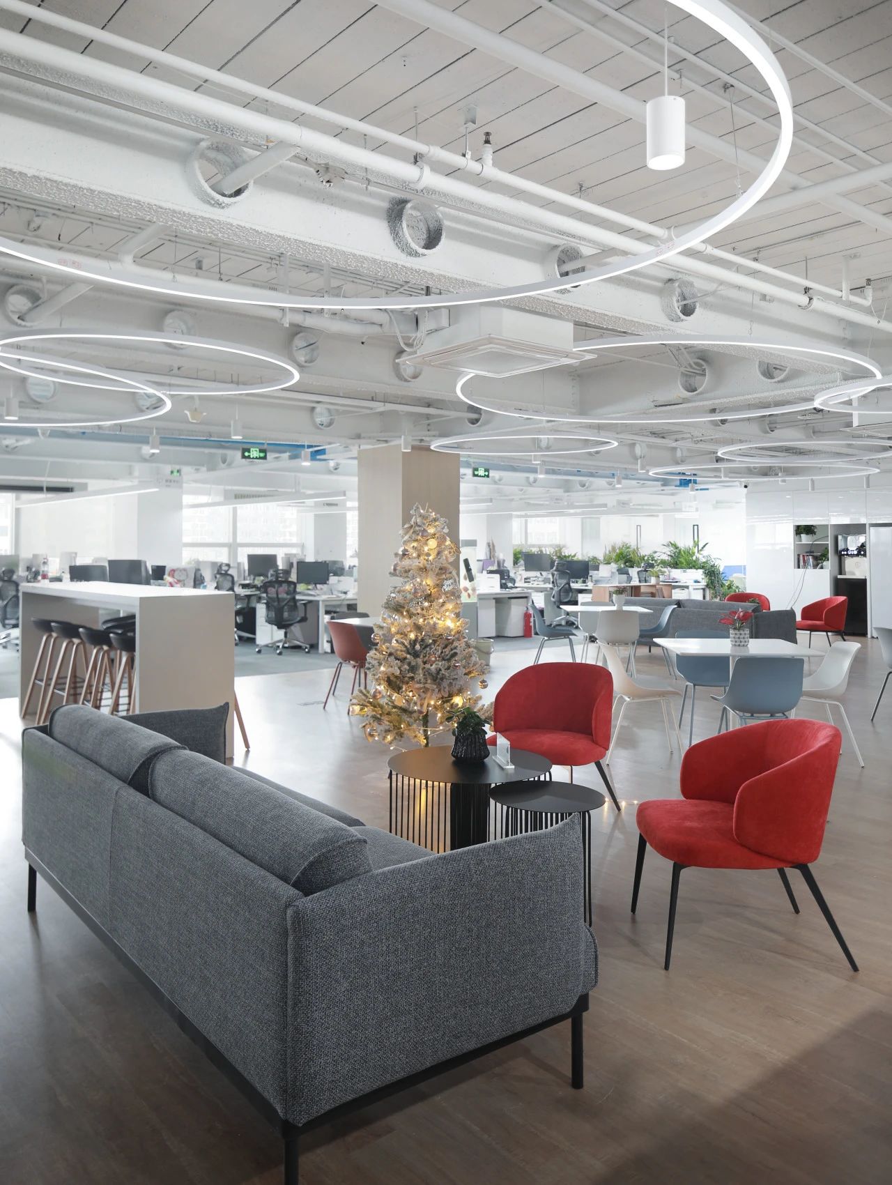 蓝色设计巧妙地点缀在整个空间中,与其他材质和元素相得益彰,为员工创造了一个舒适、明快、富有创意的工作环境。蓝色代表着海洋的宽广与深邃,象征着企业对未来的探索与追求。我们希望空间中强烈的视觉色彩,为员工带来一份清新、活力和激情,激发了员工的工作激情和创造力,为企业的发展注入新的动力。