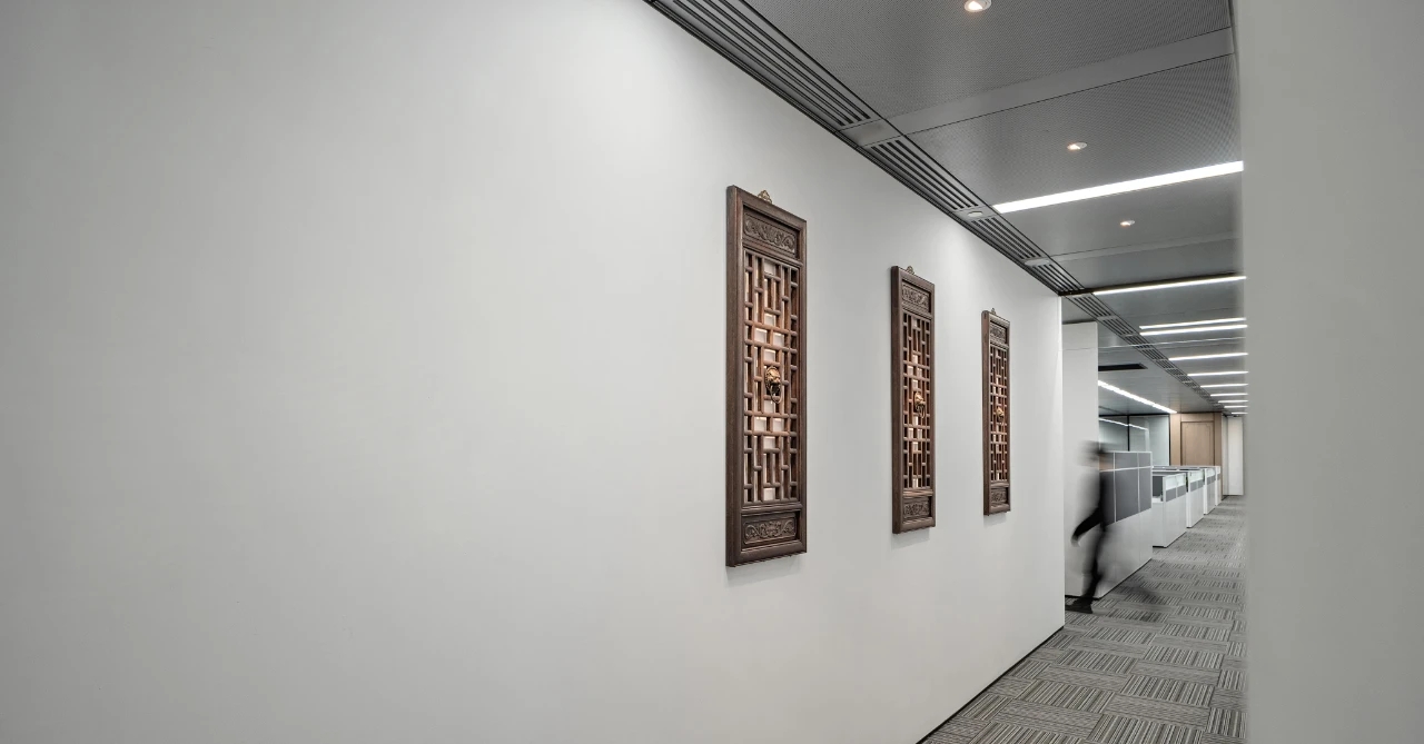 项目虽为办公空间,但每一个空间的肌理细节,却是设计往复推敲。在现代东方美学原则之中,将材质间的属性、对比。在工艺节点的表达中,演绎当代美学的精髓。