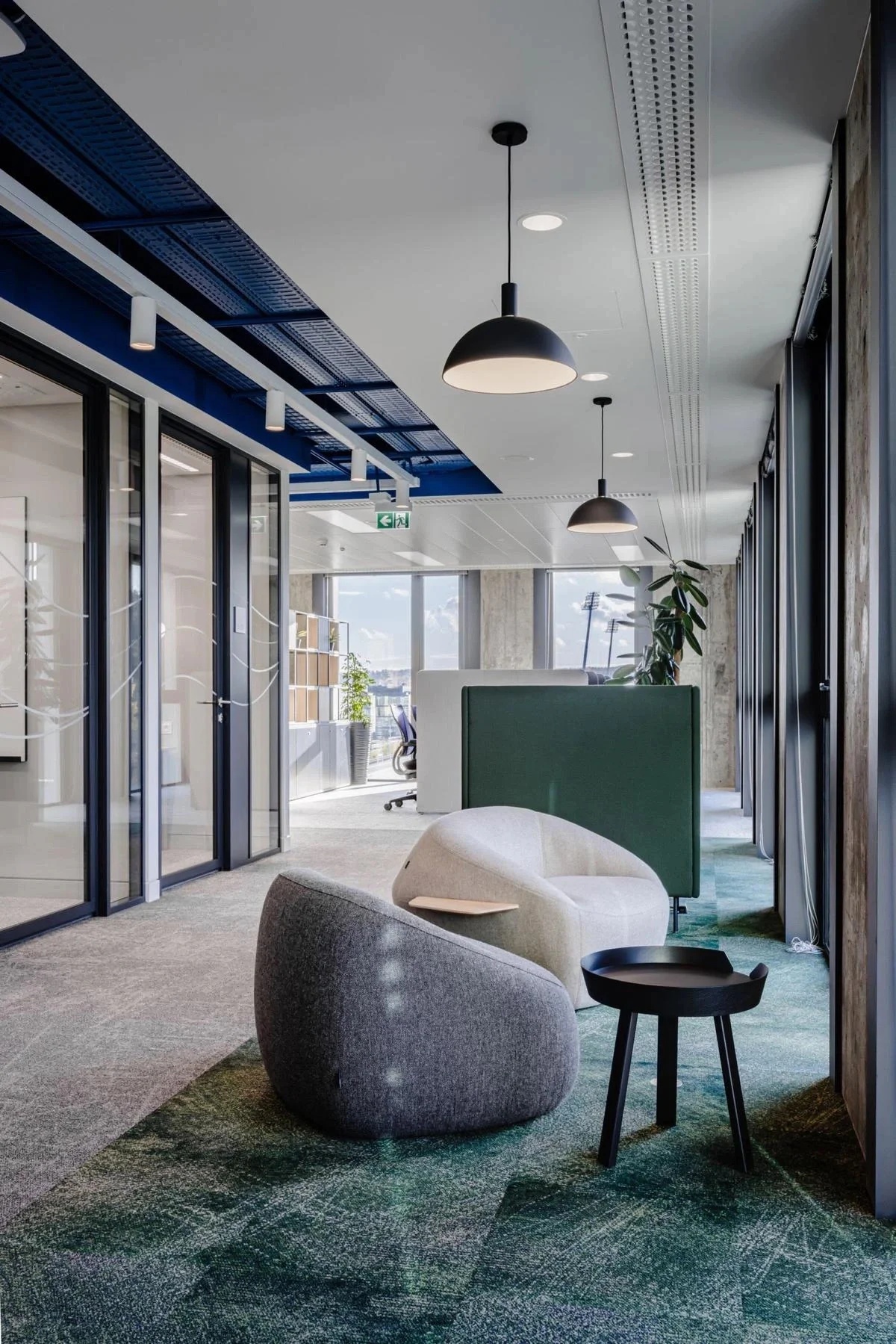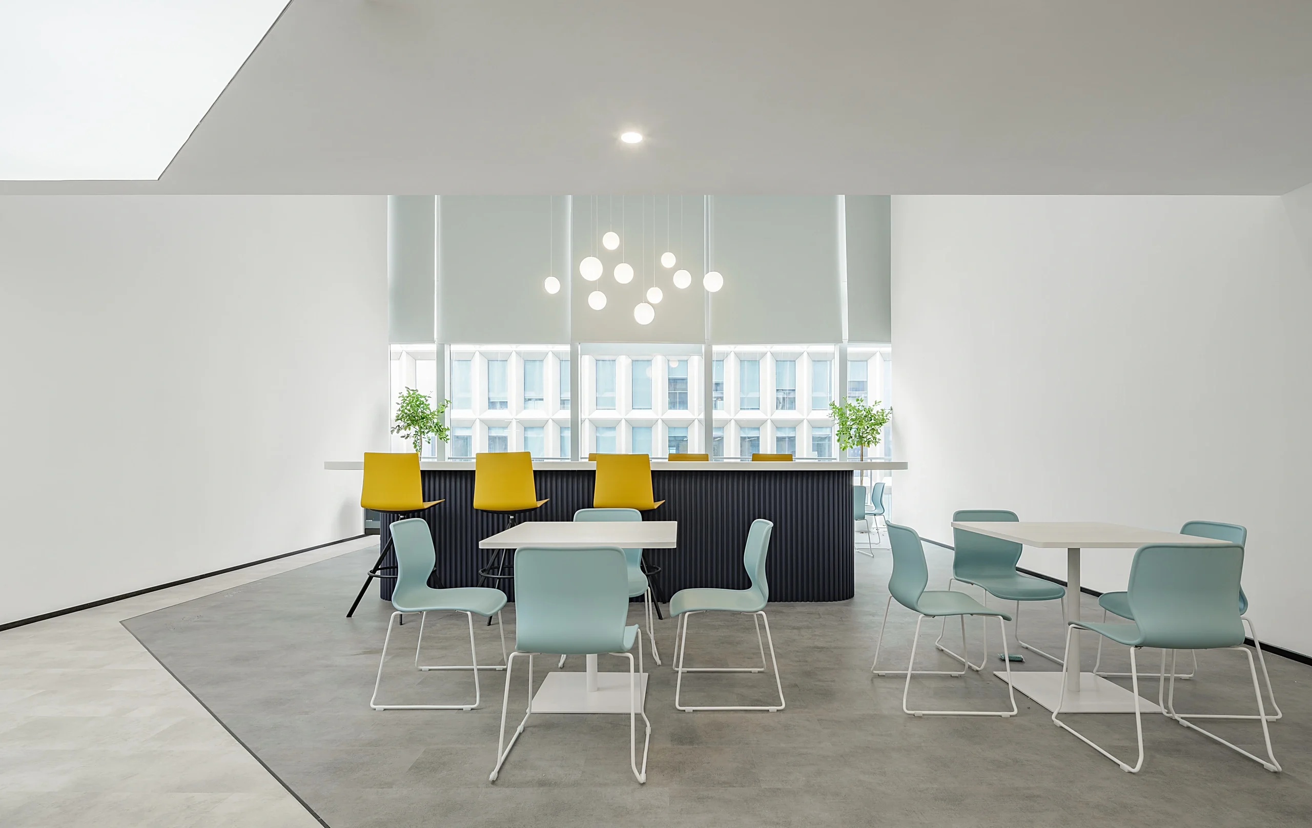 办公区打破封闭,运用开放性办公格局,开启高效与人性化办公新模式,提高办公效率。这个空间中没有太多杂乱的装饰,开阔的视野给人一种舒畅的感觉,给交流也提供了很大的便利。