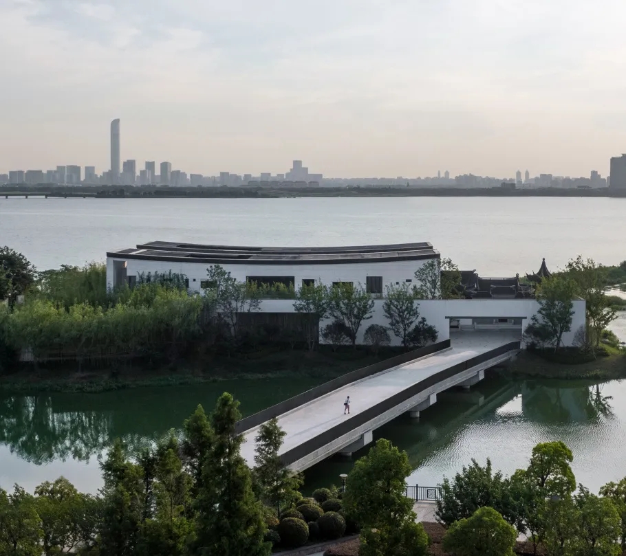 远处的烟波浩渺、延伸的水岸竹林、庭院与古亭的交错共同营造了场地内宁静致远的诗意氛围。