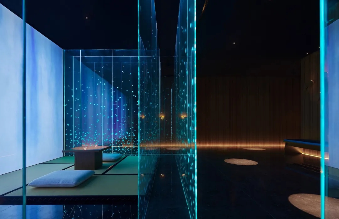 走进足本纪的大门,一边是如鱼得水的宁静致远,一边是空灵的灯光设计,既有鲜明对比,又能互相融合。伴随人们的喜怒哀乐、舒适、安静、激动、焦虑悄然流逝。“光”是空间,更是时间。