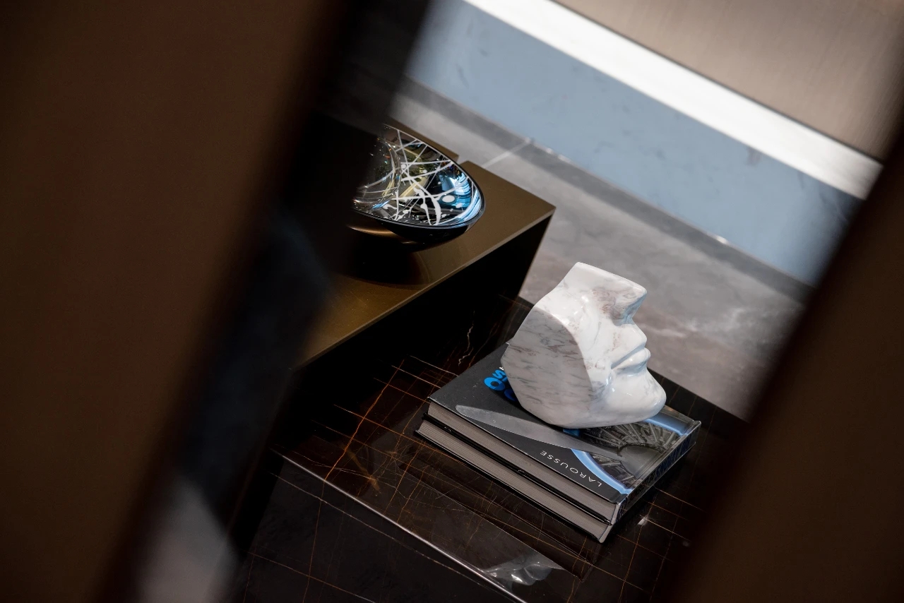 设计师眼中的家,不仅供人居住,更是心灵栖息的圣地,以其丰富的内涵传达出对生活的态度。进门玄关,抛去华丽喧嚣的装饰面,一幅艺术画、若干小摆件映入眼帘,视觉以雅致的木饰面暗暗加强端庄感,挑起人们深入探索的好奇心。