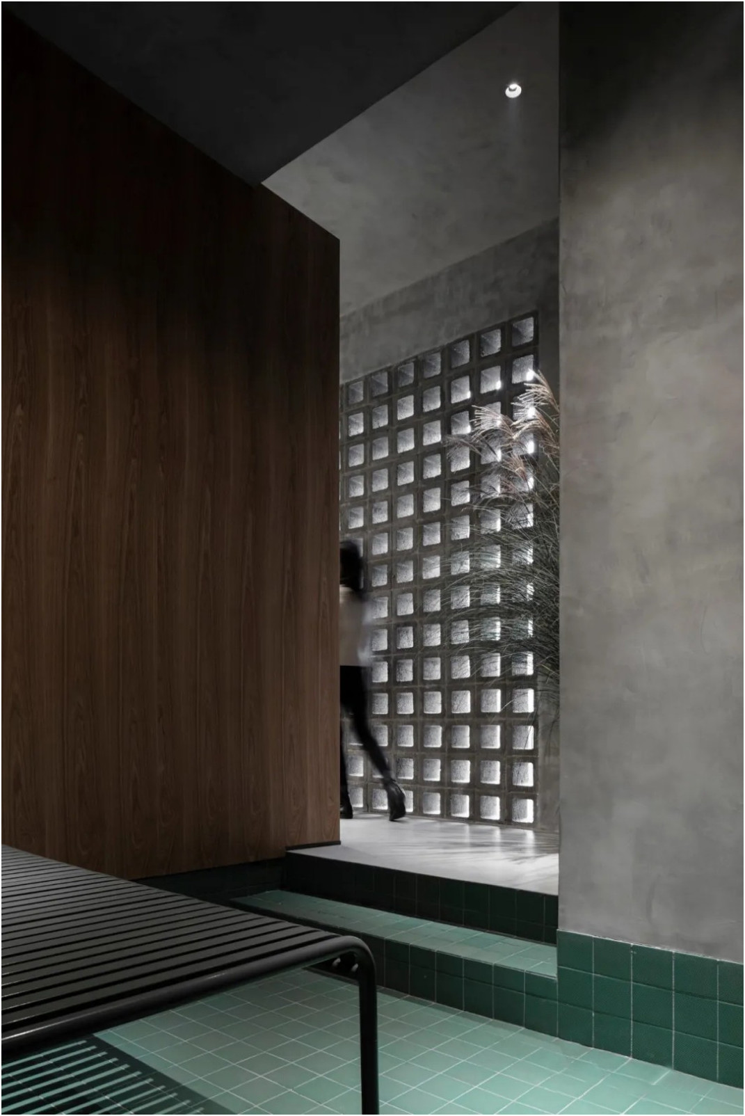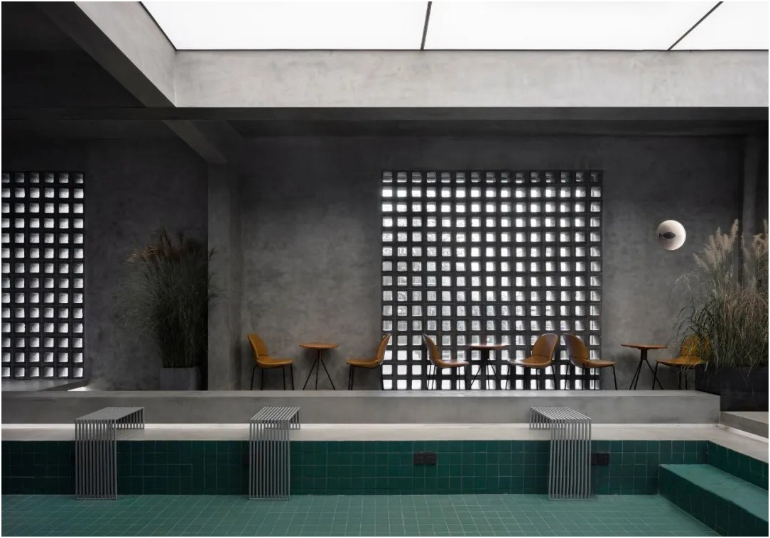 原有建筑有着十分方正的空间,两边有大面积的落地玻璃,人们对这里的第一感觉会觉得空间很整齐、光线也很好。设计需要打破这种平衡,池子的理念一下就产生了,从空间塑造的观点出发一定要让客人进入时有步入的感受,同时也让设计有了它该有的气息。