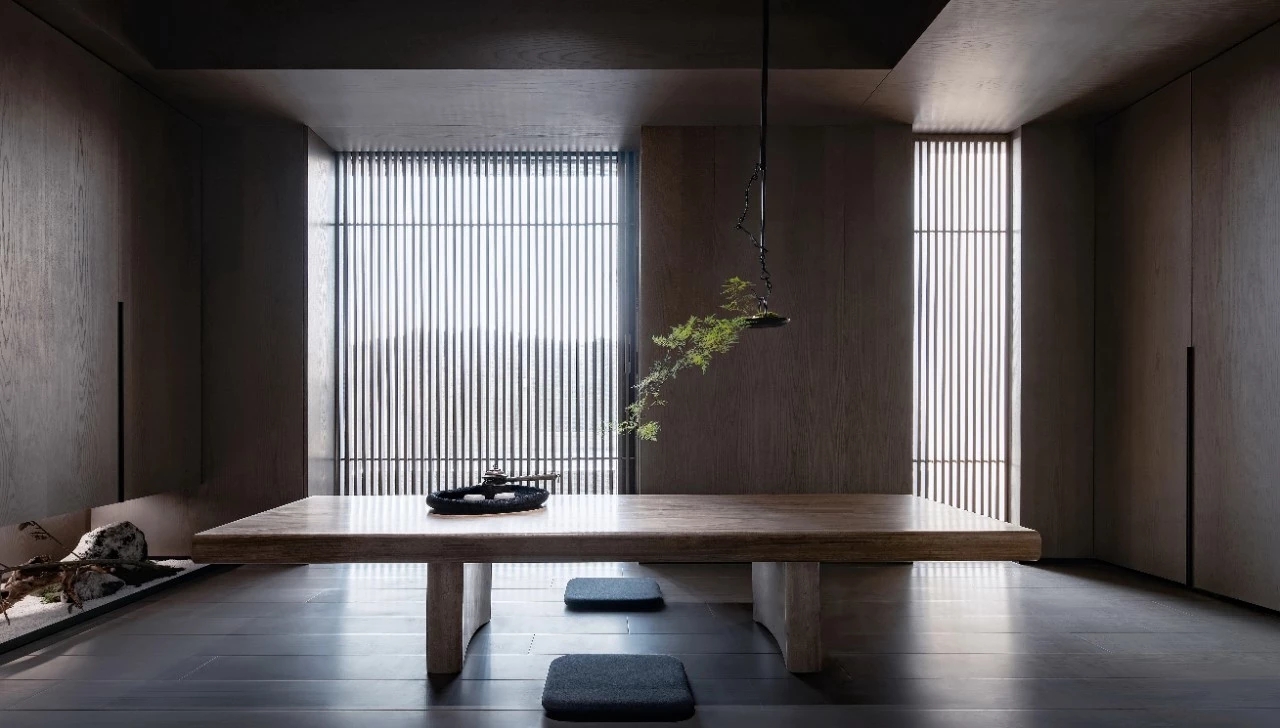 茶承禅意,茶室所展现的“禅”是内敛且深情的。“简于形,繁于心”,通过精心的细节刻画,看似平淡无波的素净表象,却暗暗为精神内里织一件涵养的纱衣,禅意的意趣就是为了给居住者带来永无止境的遐想。