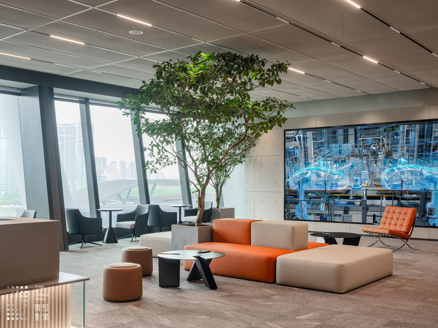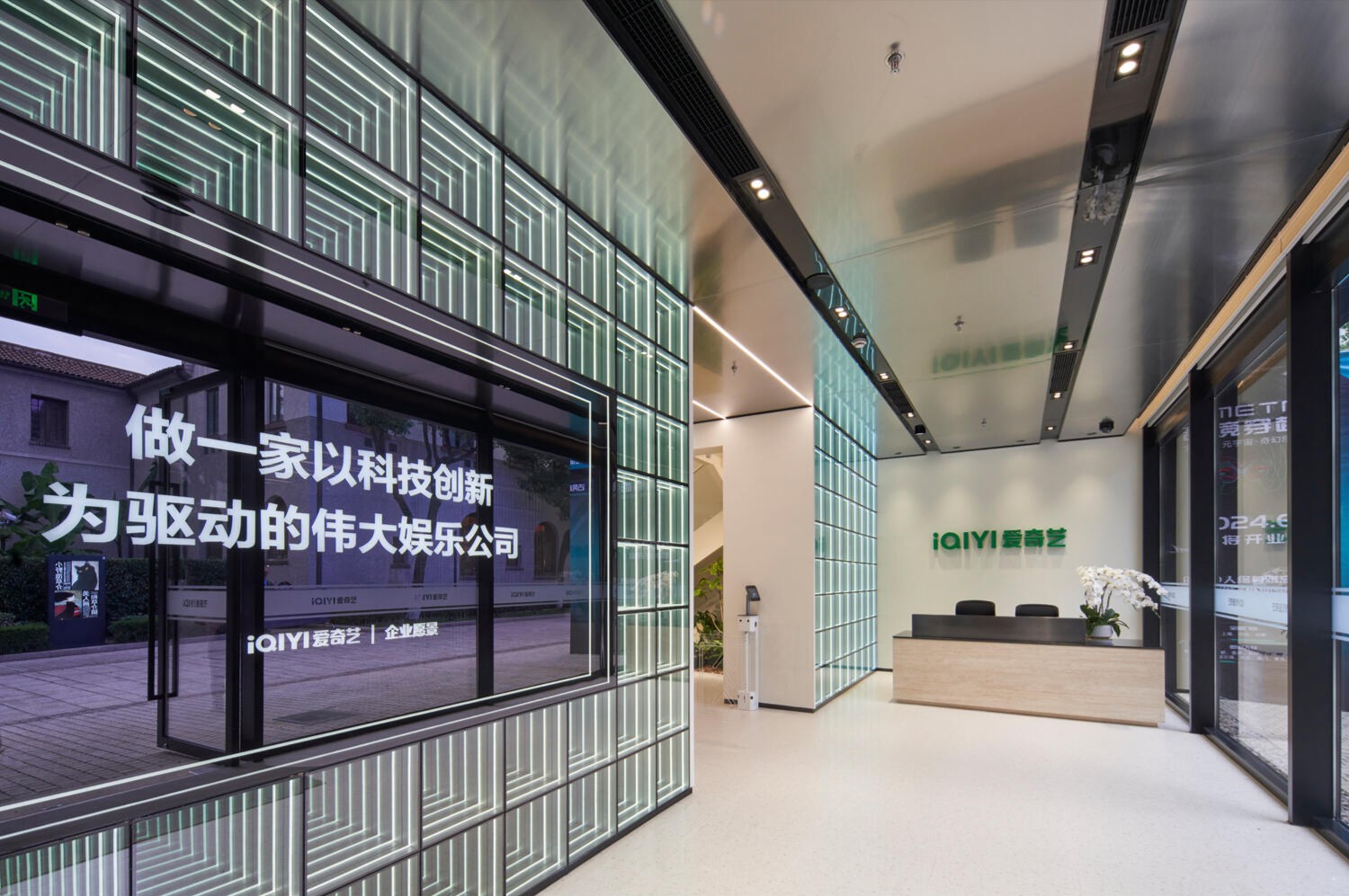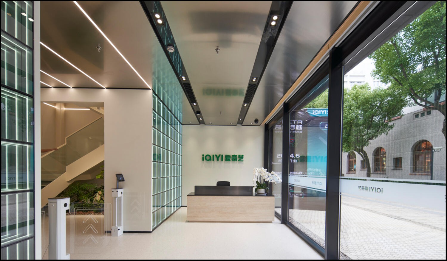 此外,建筑外立面加装炫酷的超大LED透明拼接屏,分时段播放多媒体宣传片,也给具有年代感的园区注入了朝气澎湃的动感活力。整个项目通过线条、块体与光影融合的设计表达,结合园区建筑形态,汇入爱奇艺企业文化及品牌理念,打造出一个充满企业个性氛围的灵动空间。