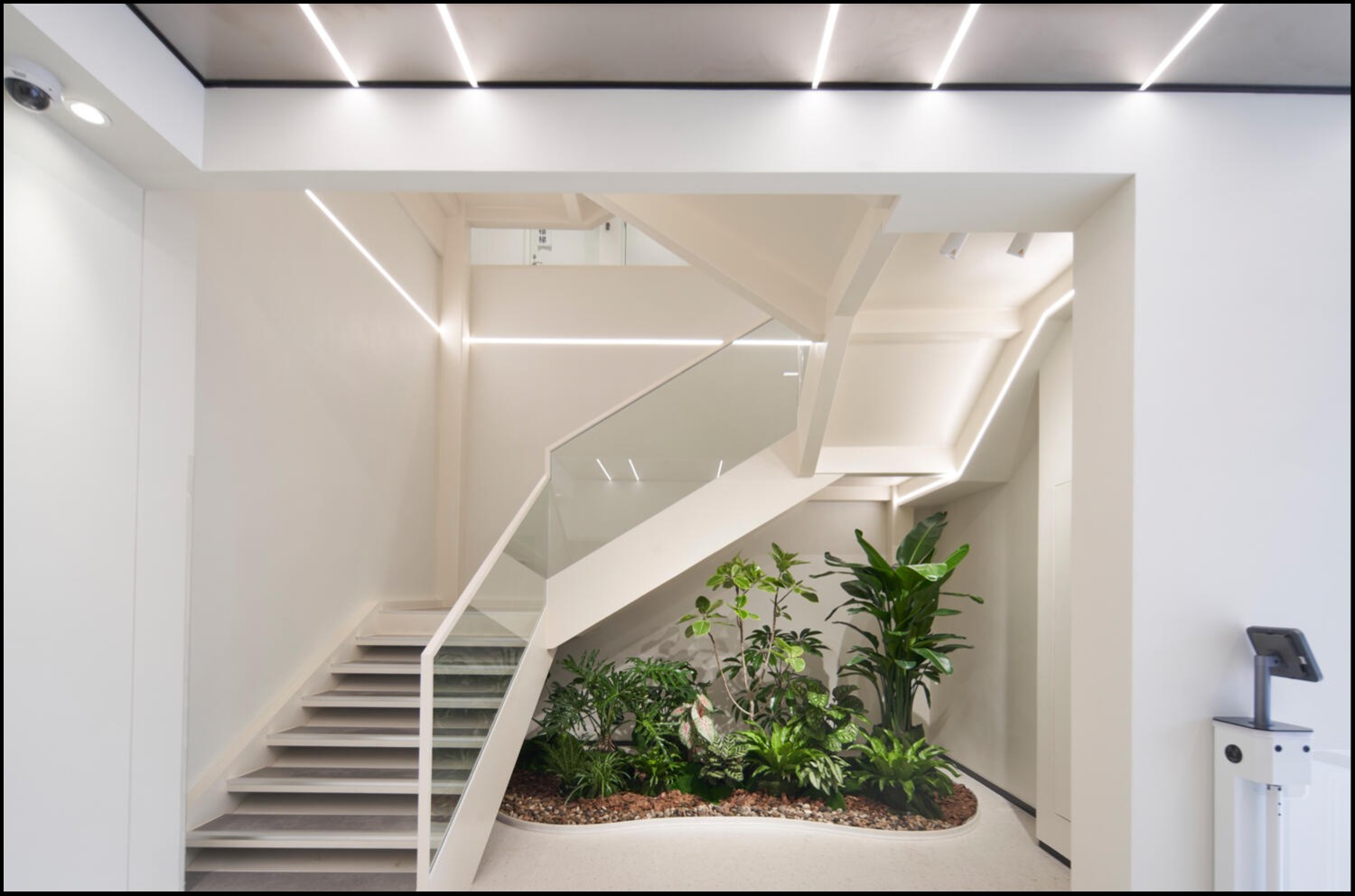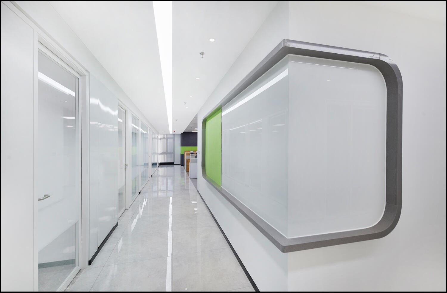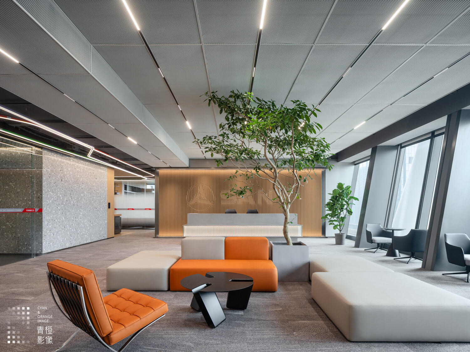 此外,建筑外立面加装炫酷的超大LED透明拼接屏,分时段播放多媒体宣传片,也给具有年代感的园区注入了朝气澎湃的动感活力。整个项目通过线条、块体与光影融合的设计表达,结合园区建筑形态,汇入爱奇艺企业文化及品牌理念,打造出一个充满企业个性氛围的灵动空间。