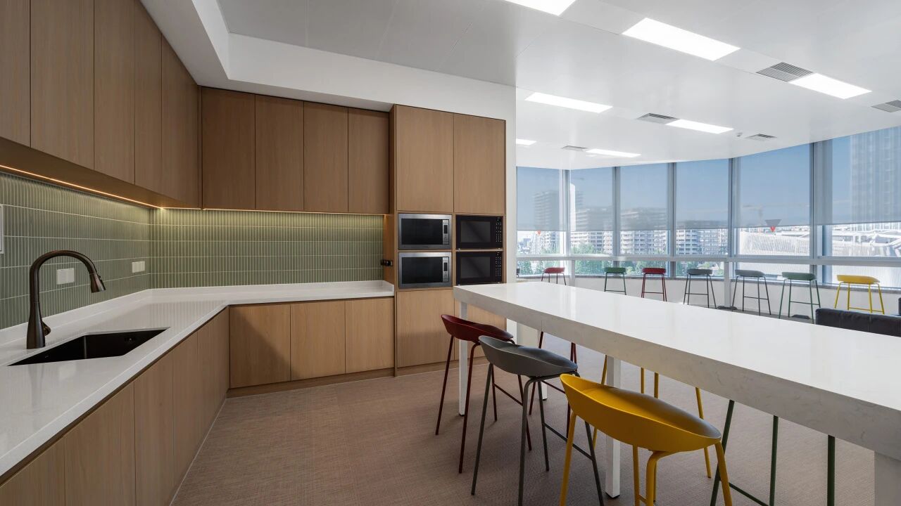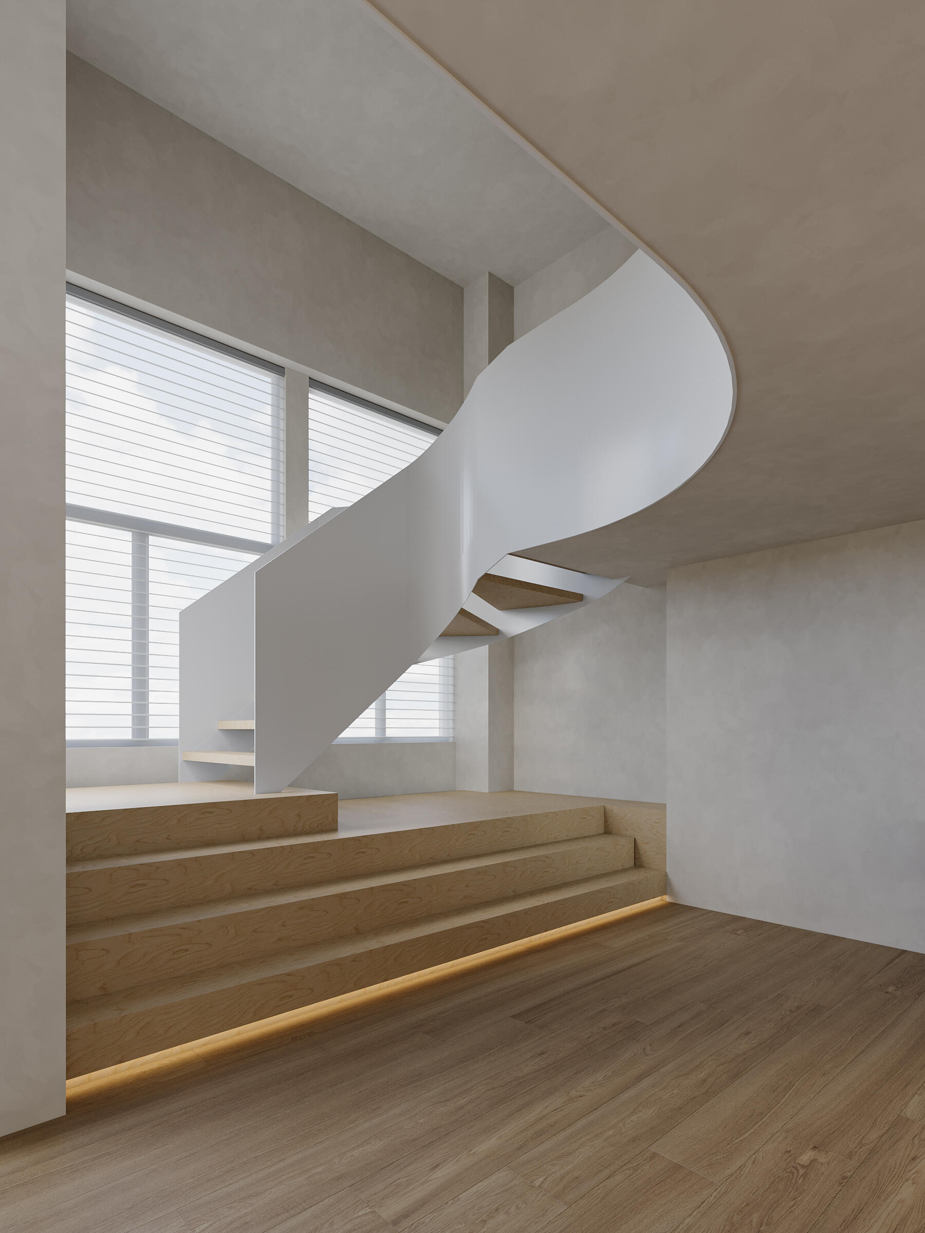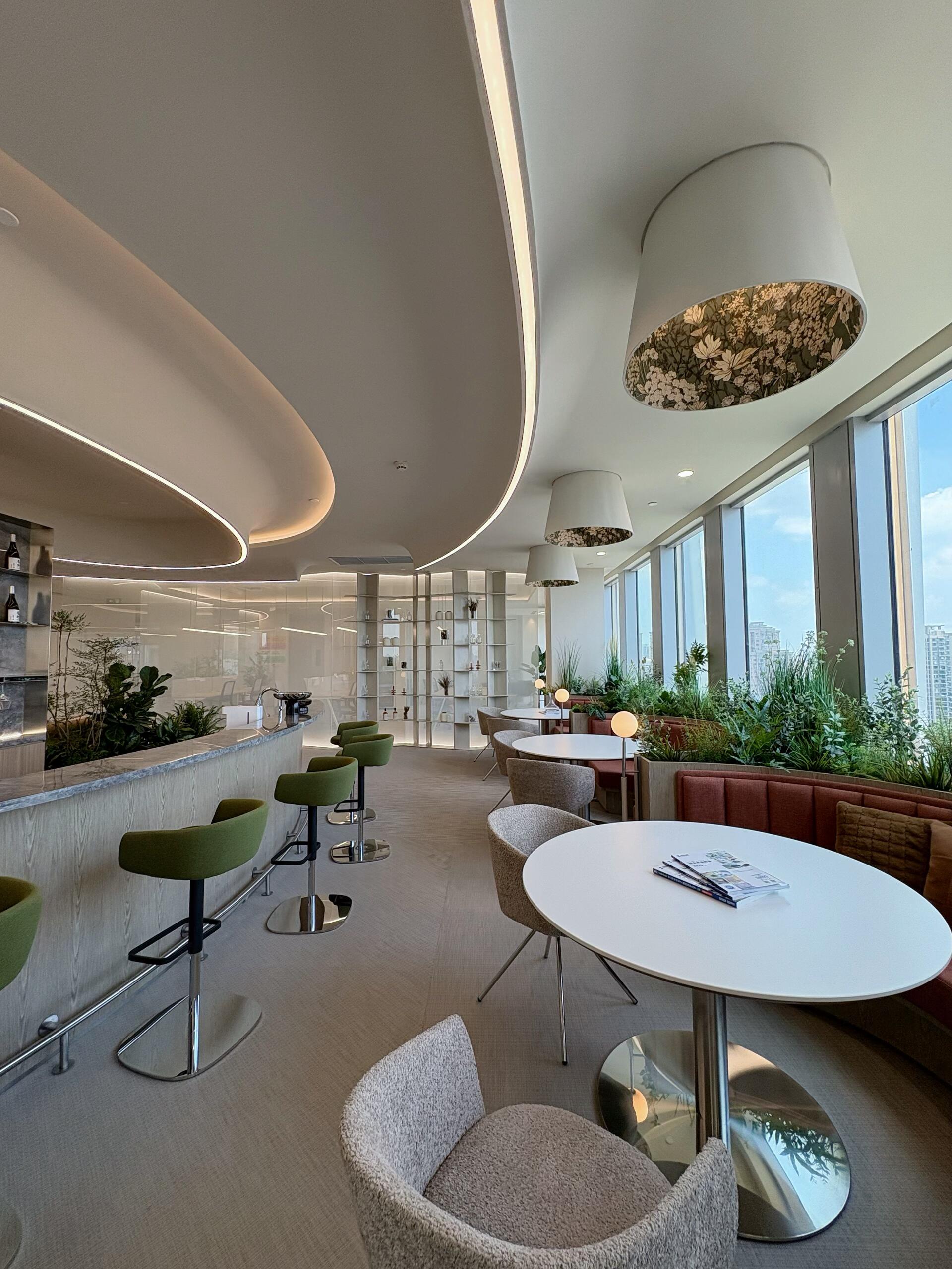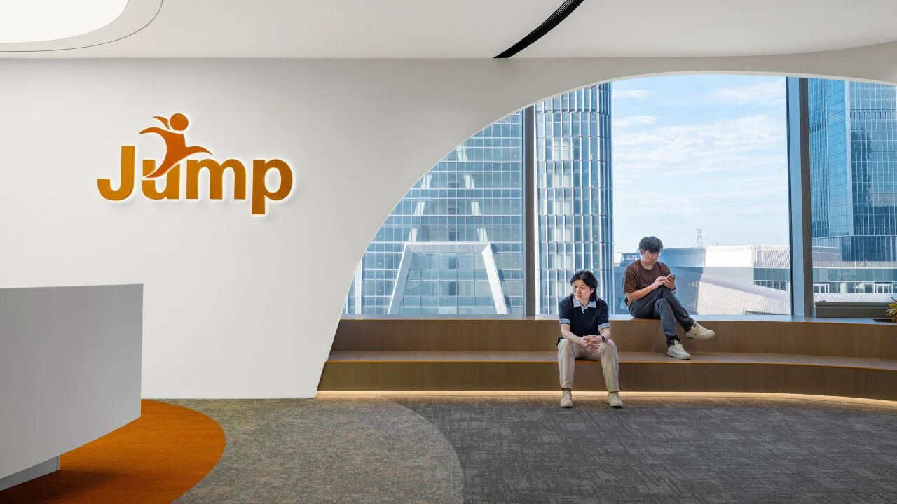 前台区域作为企业对外展示的第一窗口,延续现代简约的风格,弧线天花像是打开的一道光圈,寓意创意灵感的无限延伸,一扇拱形窗景,将外部的城市风景引入室内。简洁大气的线条与材质,用光影和色彩强化品牌识别度。让每一位踏入空间的人,都能感受到跳跃的创新能量。空间以简洁而富有张力的设计语言展现企业的属性。从入口Logo墙到配色与材质的细节,品牌调性在空间中无处不在。