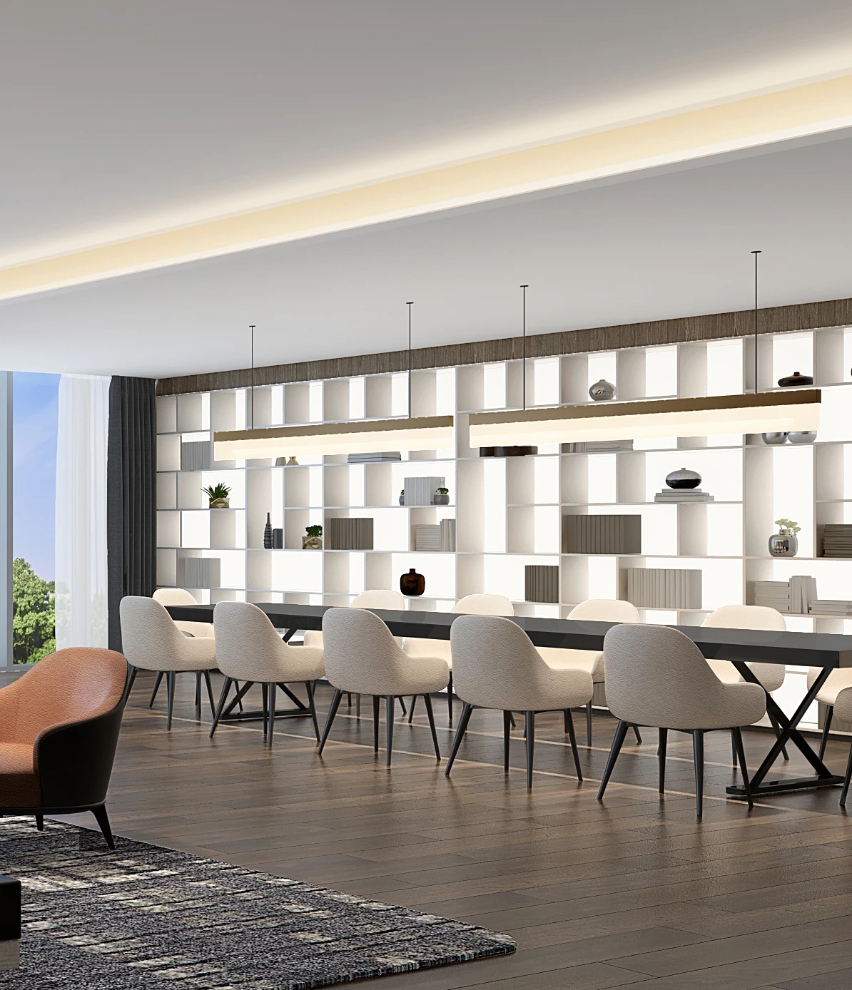 空间与空间产生共鸣舞台,点、线、面为乐器,风过竹林,天籁有音。全室采用简约线条,在配合软装陈设,细腻细部介入空间,最大化挖掘相邻场域的渗透与交互,亦成为空间共同语汇。空间节奏秩序是重点,空间、光线、动线的精心,隐含东方建筑哲学,游走其中体验不同层次的感受。