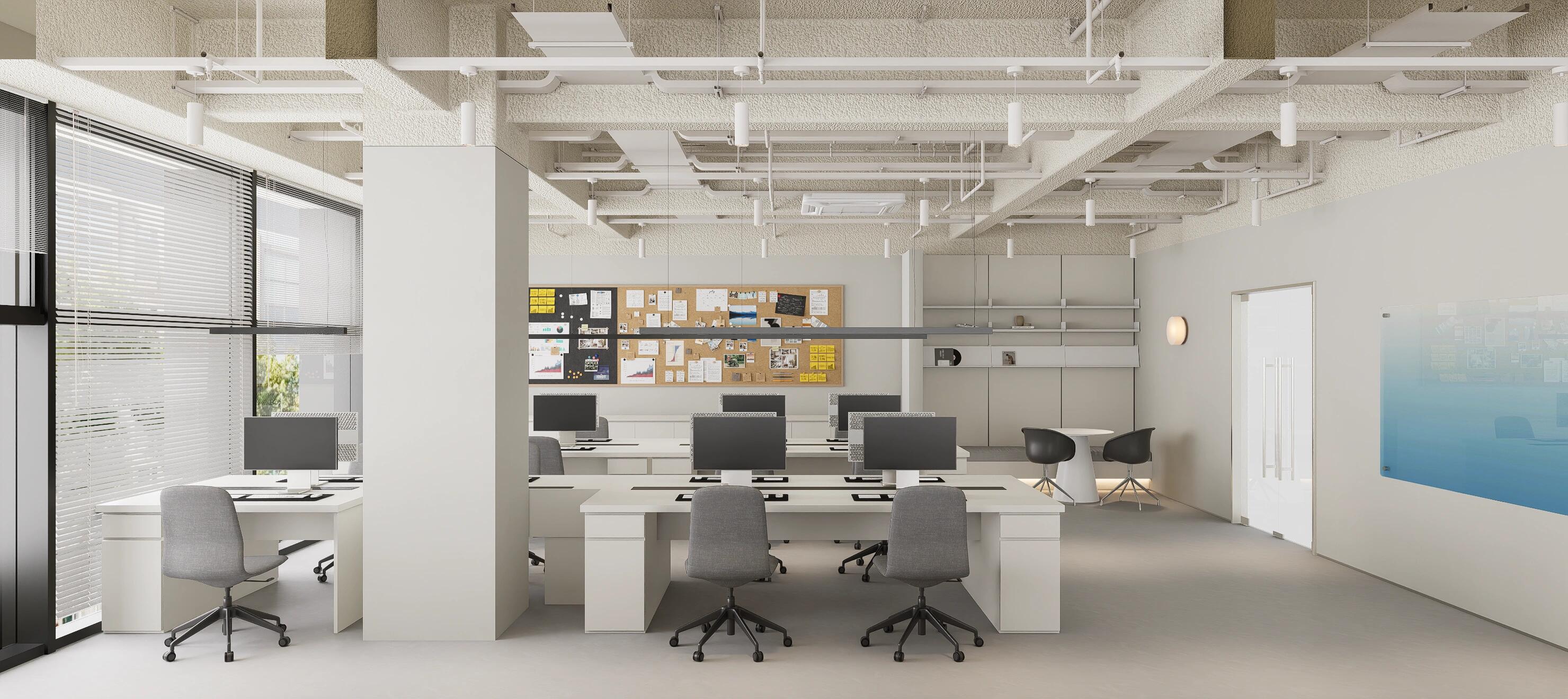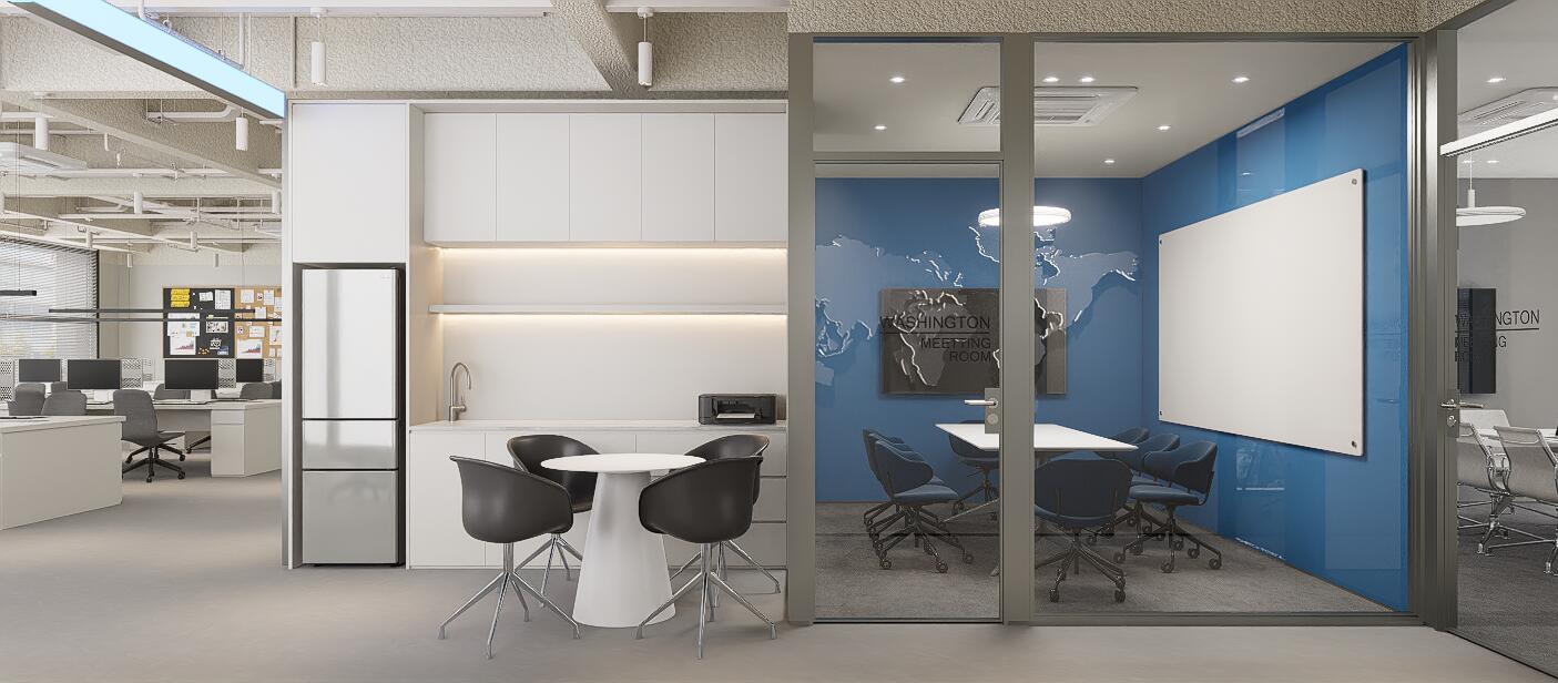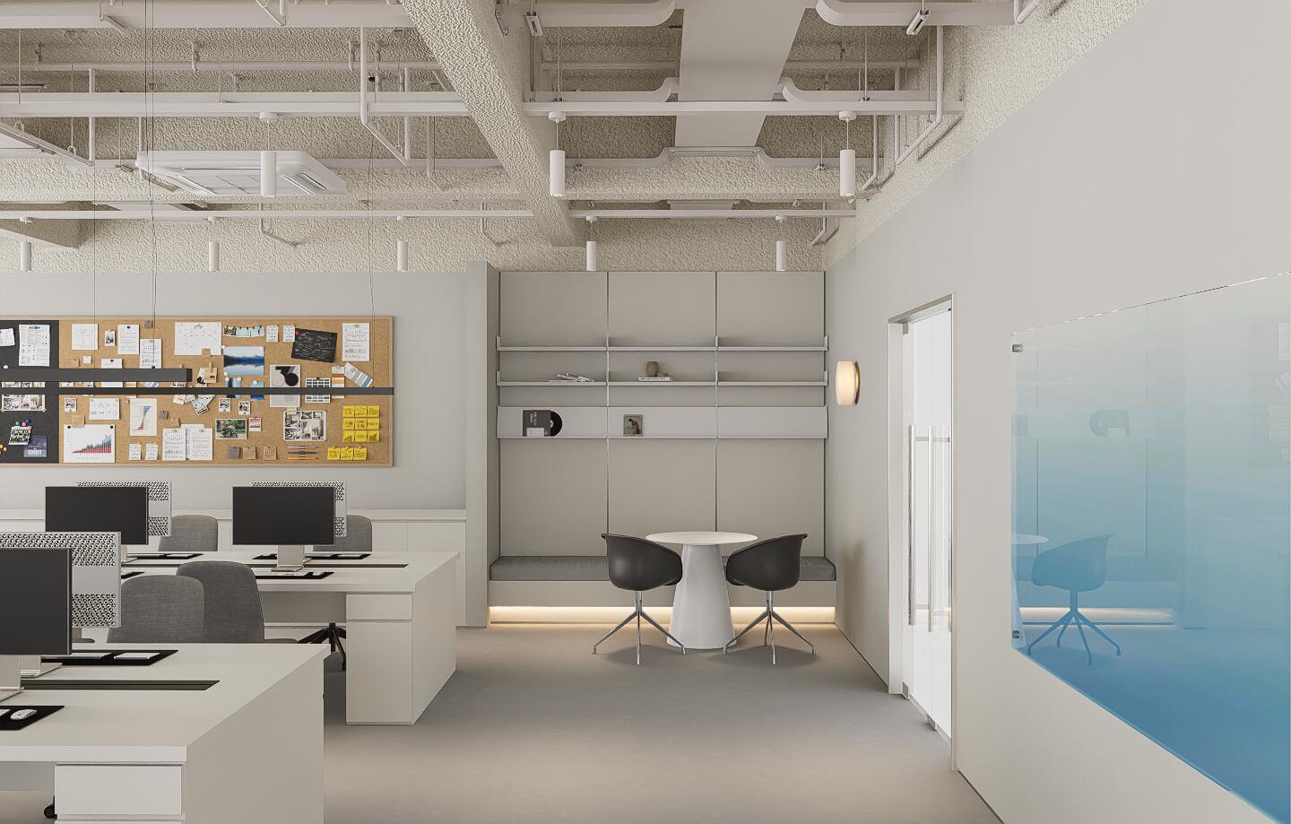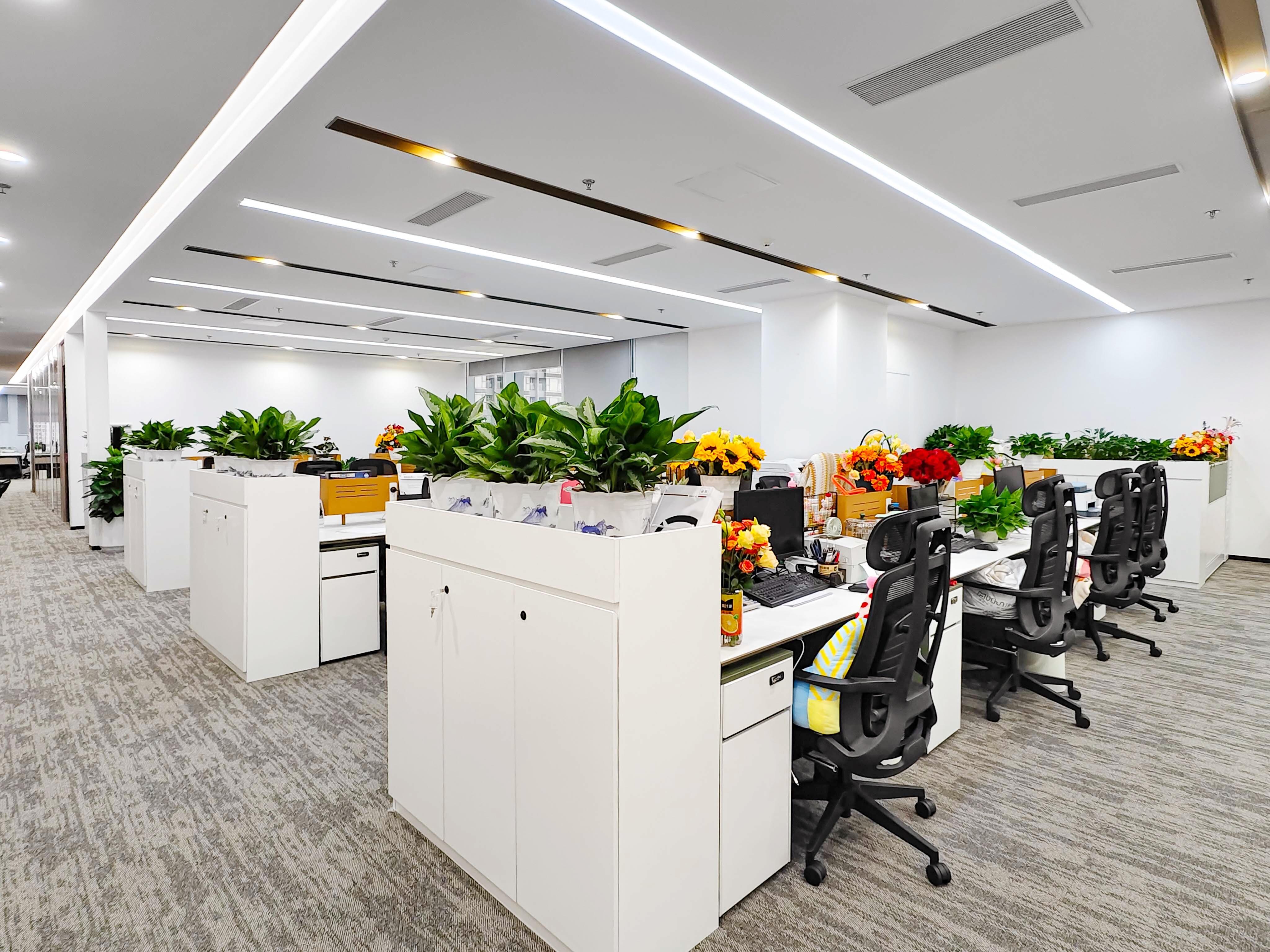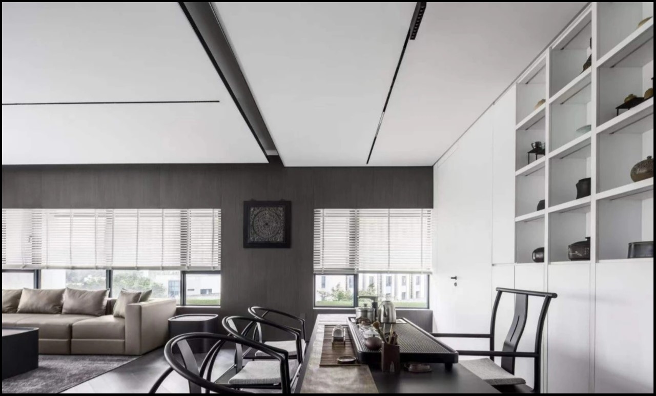 员工办公区,设计巧思注入进菱形和弧形的“变异”之中,让办公状态自由而相对独立,打破办公沟通屏障之后,办公效率有效提升。高层办公区的空间排列、道道智能化门禁系统传递出层层递进的秩序感,董事长办公室以高级灰为调性,线条在极简设计中造作,品质主材与隐射灯带的绝妙搭配透露出空间的豪奢内涵,空间更显沉稳大气。