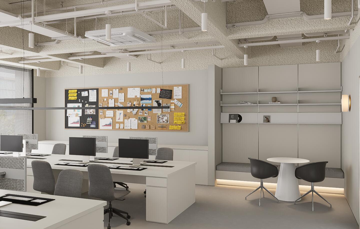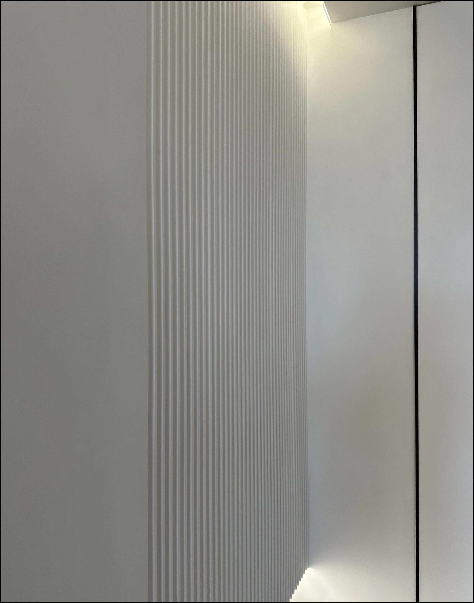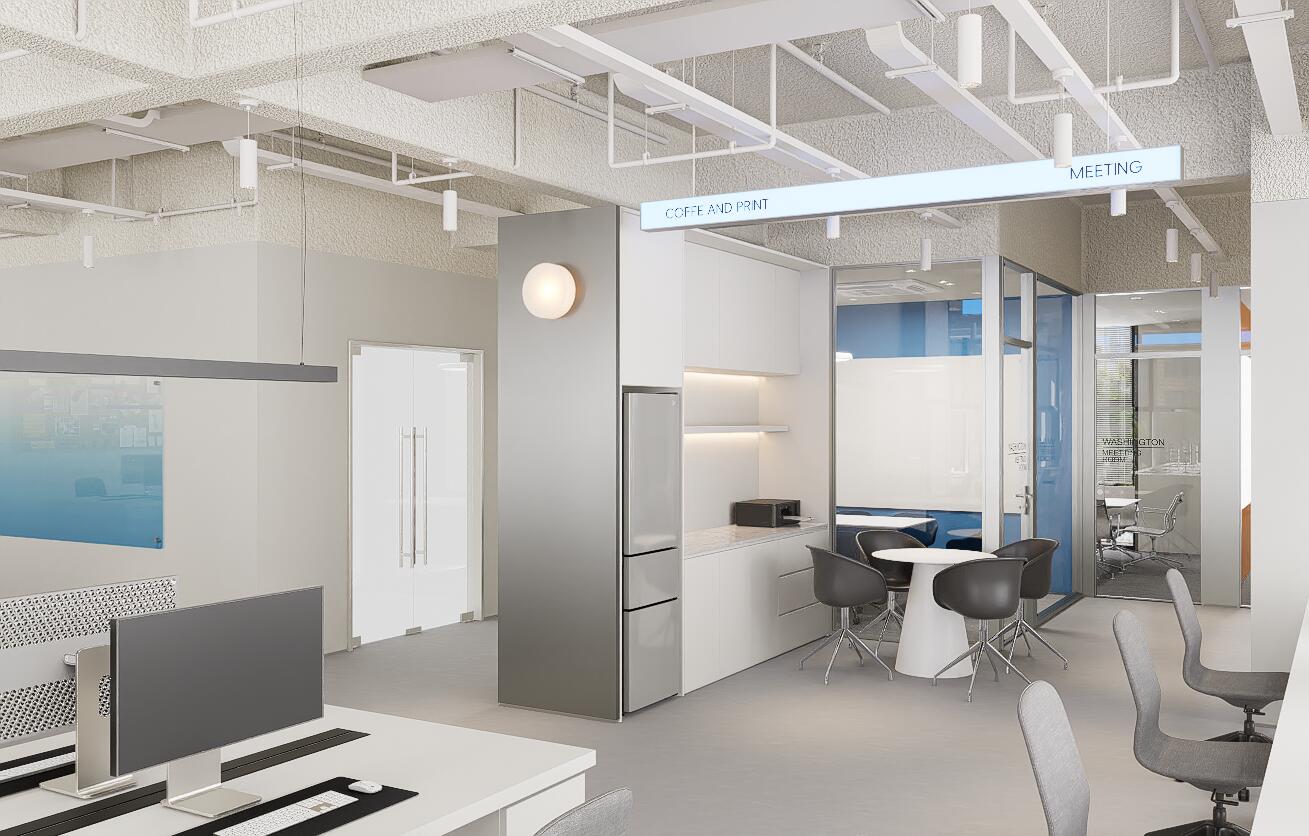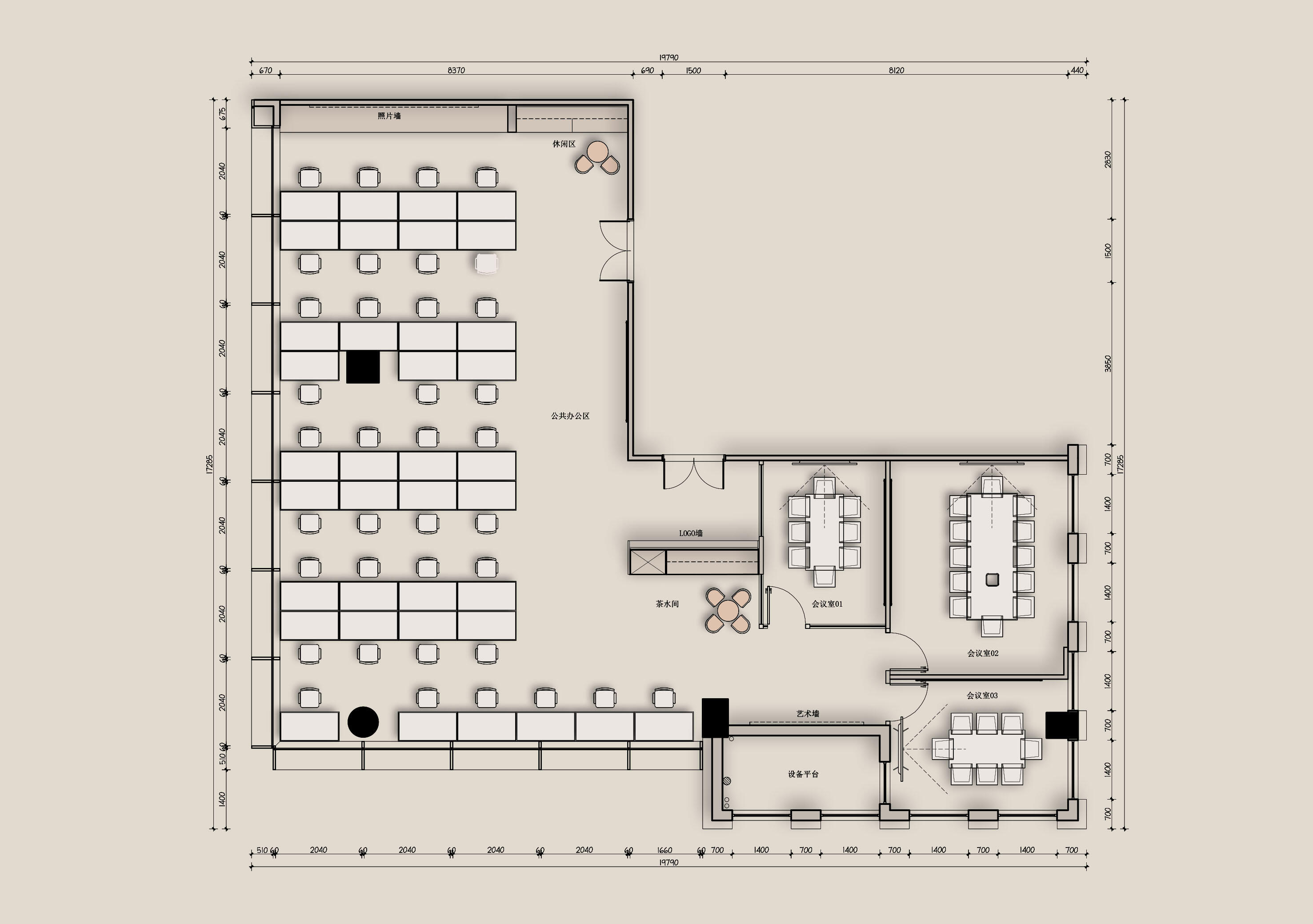 员工办公区,设计巧思注入进菱形和弧形的“变异”之中,让办公状态自由而相对独立,打破办公沟通屏障之后,办公效率有效提升。高层办公区的空间排列、道道智能化门禁系统传递出层层递进的秩序感,董事长办公室以高级灰为调性,线条在极简设计中造作,品质主材与隐射灯带的绝妙搭配透露出空间的豪奢内涵,空间更显沉稳大气。