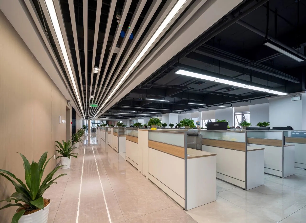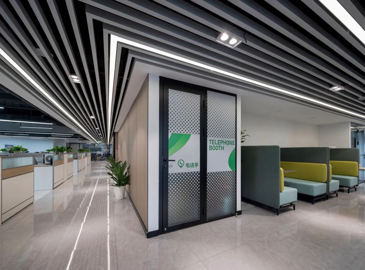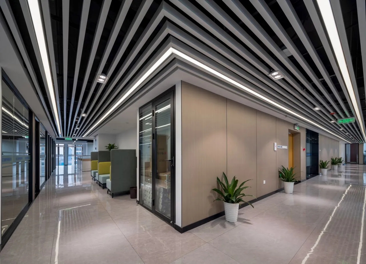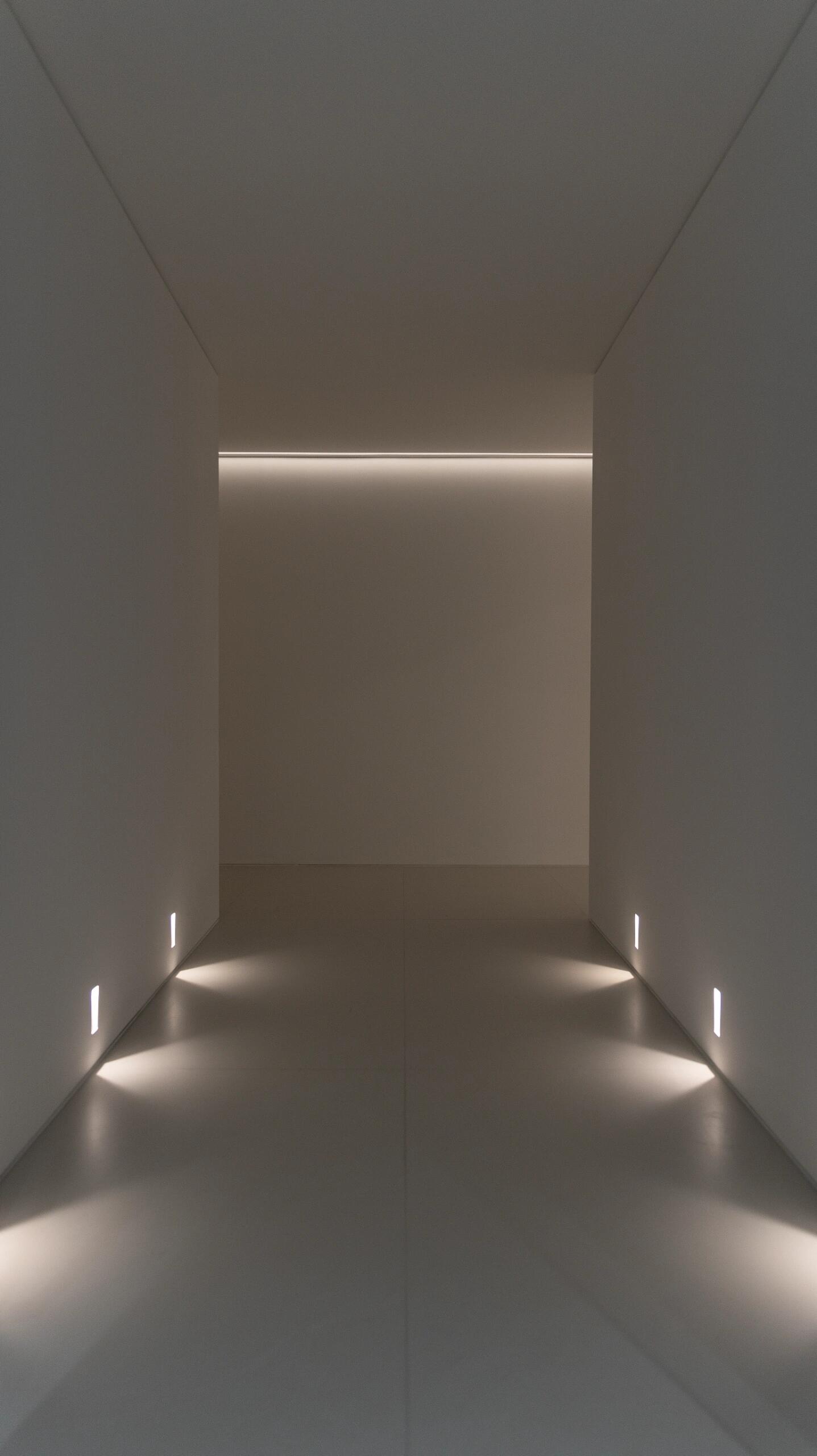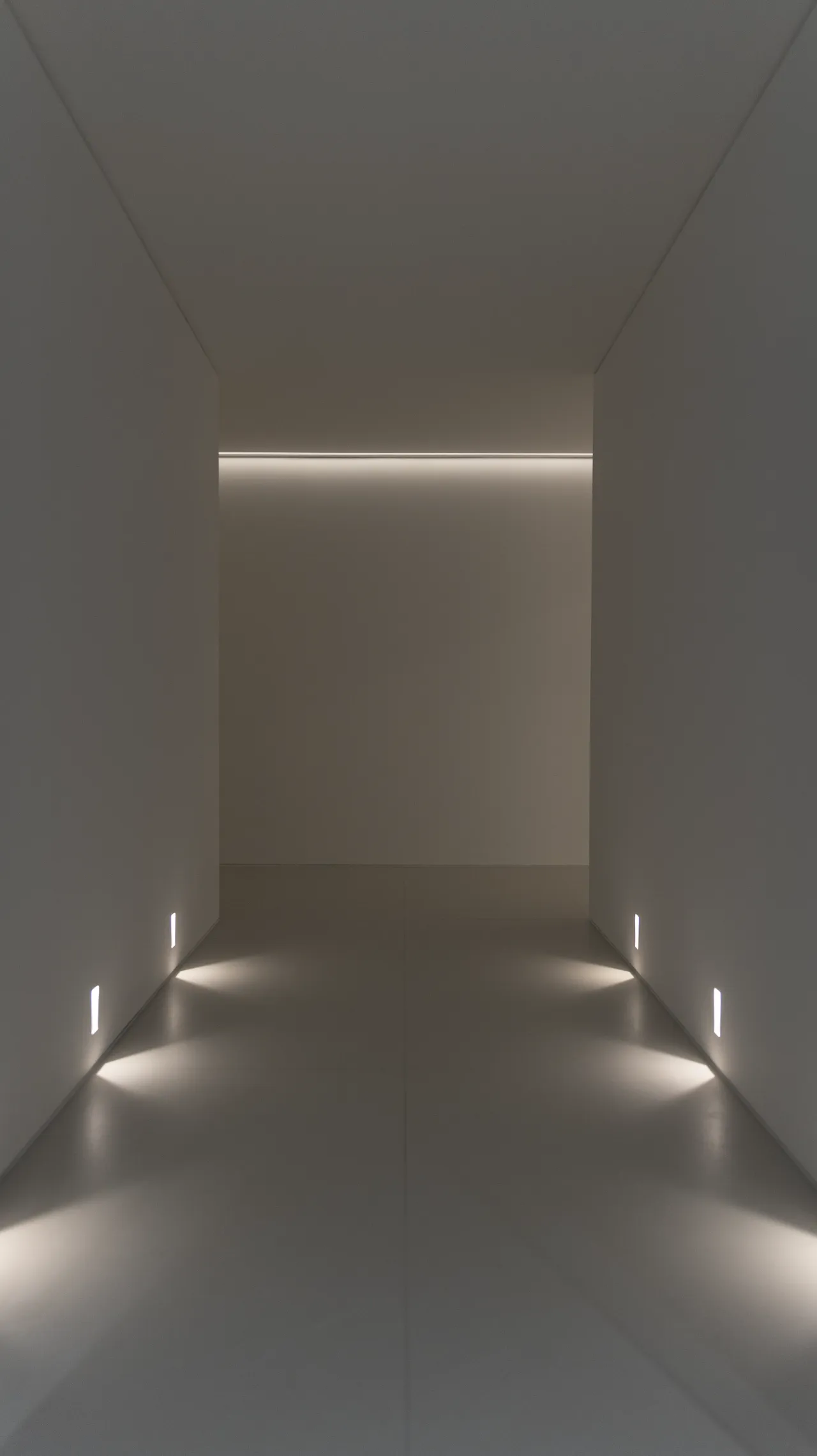 极简与细节的结合:入口设计以极简风格为主,我们在注重细节处理的同时,深入推敲了主入口的空间仪式感及动线的合理性。通过左右对称的六束光影效果,营造出空间入口的层次感与仪式感。墙面上下采用内凹工艺缝,地面瓷砖的排版也经过精心设计,这些细节都体现了公司对空间品质的严谨追求,而非简单的材料堆砌。正如设计行业常说的以人为本,我们通过合理的设计手法,即使是普通的材质,也能打造出高级感。