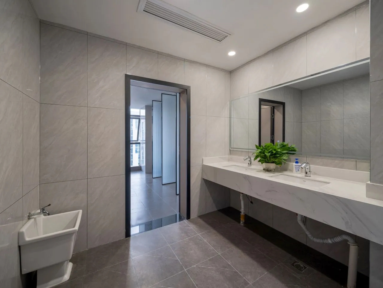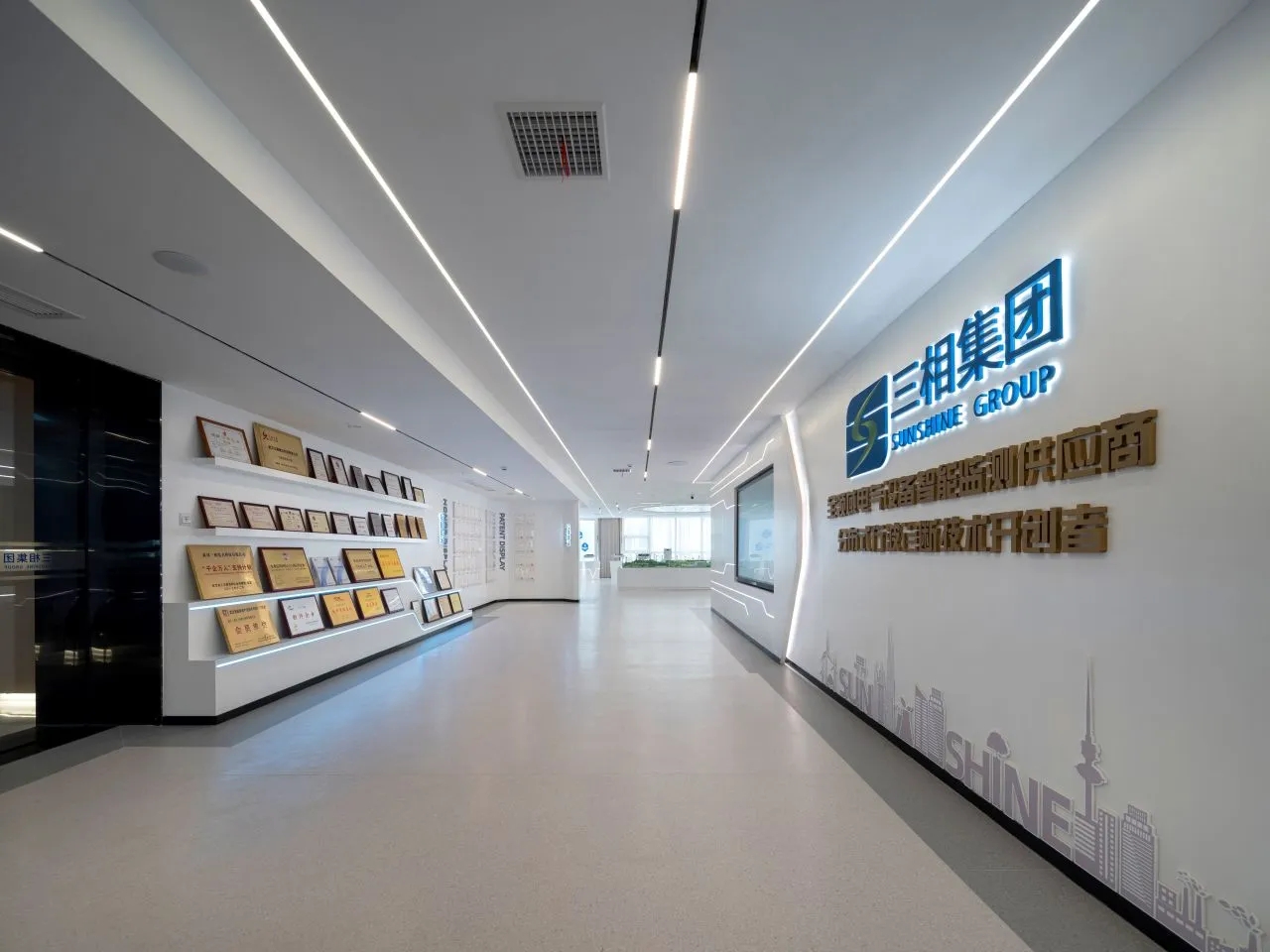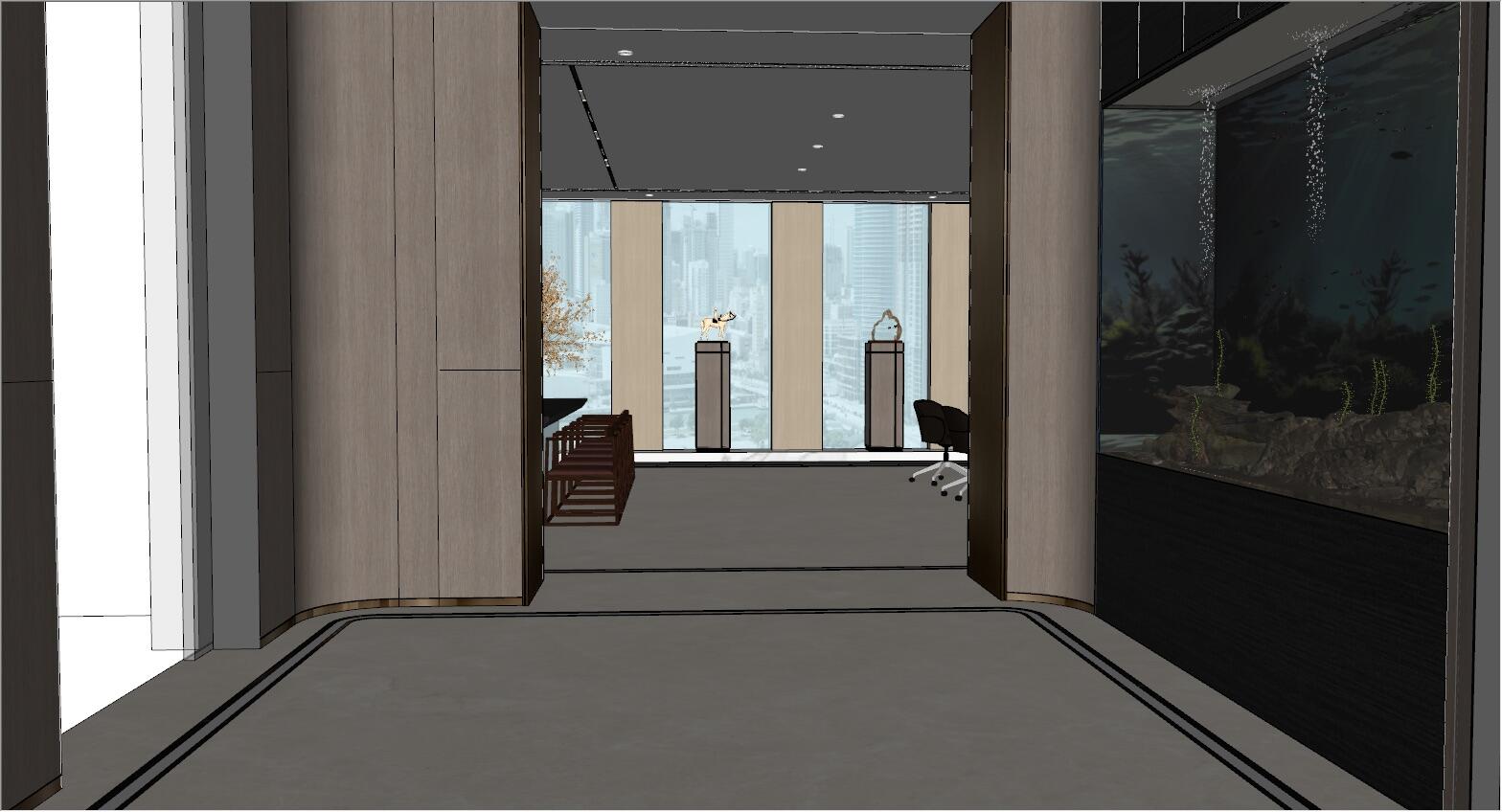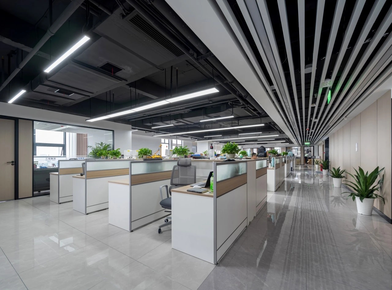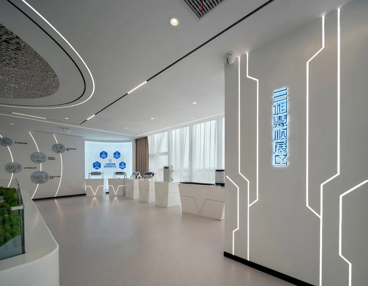 极简与细节的结合:入口设计以极简风格为主,我们在注重细节处理的同时,深入推敲了主入口的空间仪式感及动线的合理性。通过左右对称的六束光影效果,营造出空间入口的层次感与仪式感。墙面上下采用内凹工艺缝,地面瓷砖的排版也经过精心设计,这些细节都体现了公司对空间品质的严谨追求,而非简单的材料堆砌。正如设计行业常说的以人为本,我们通过合理的设计手法,即使是普通的材质,也能打造出高级感。